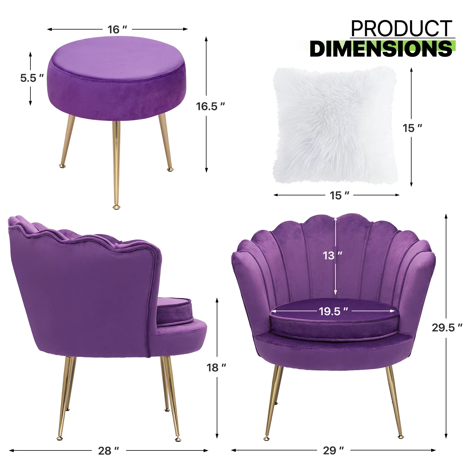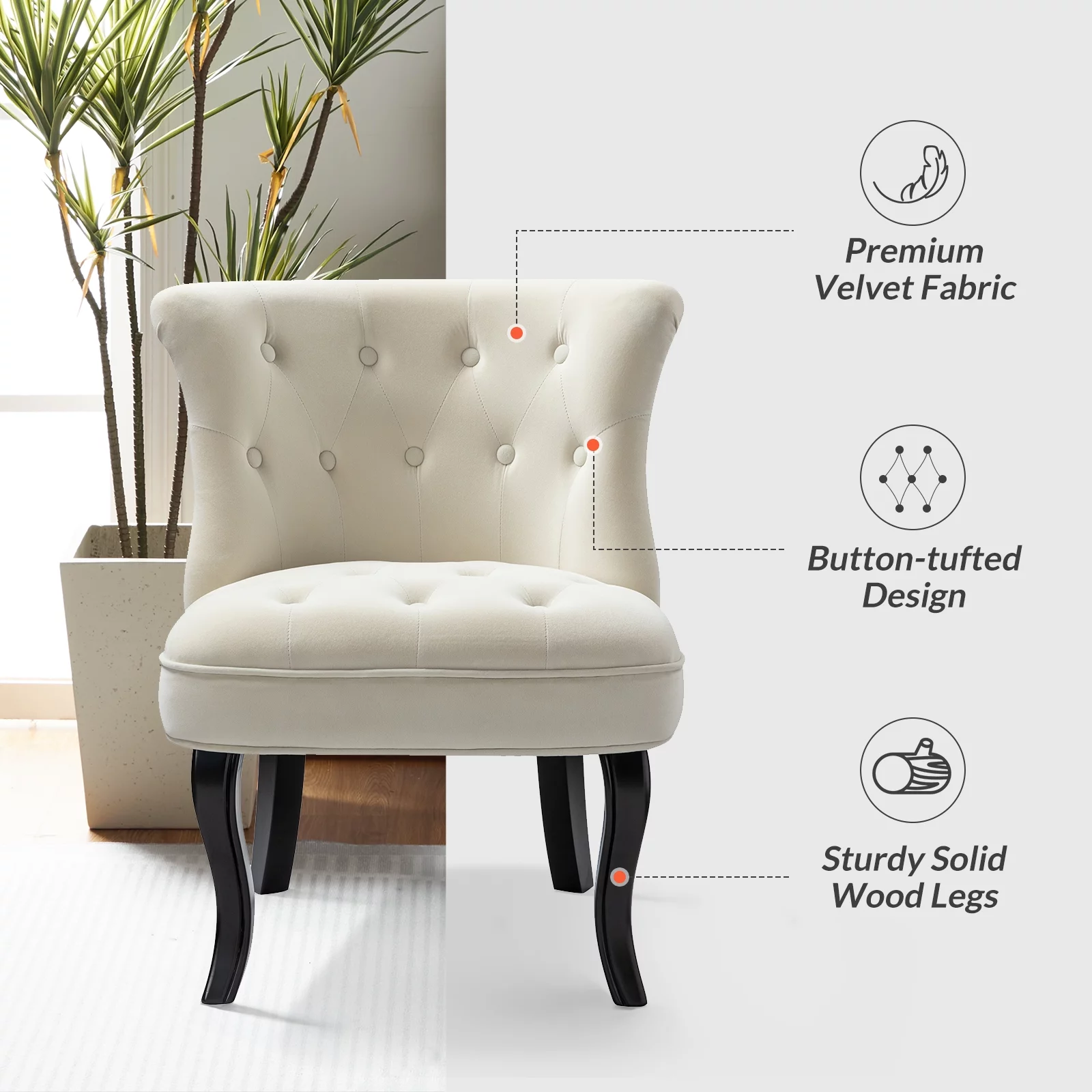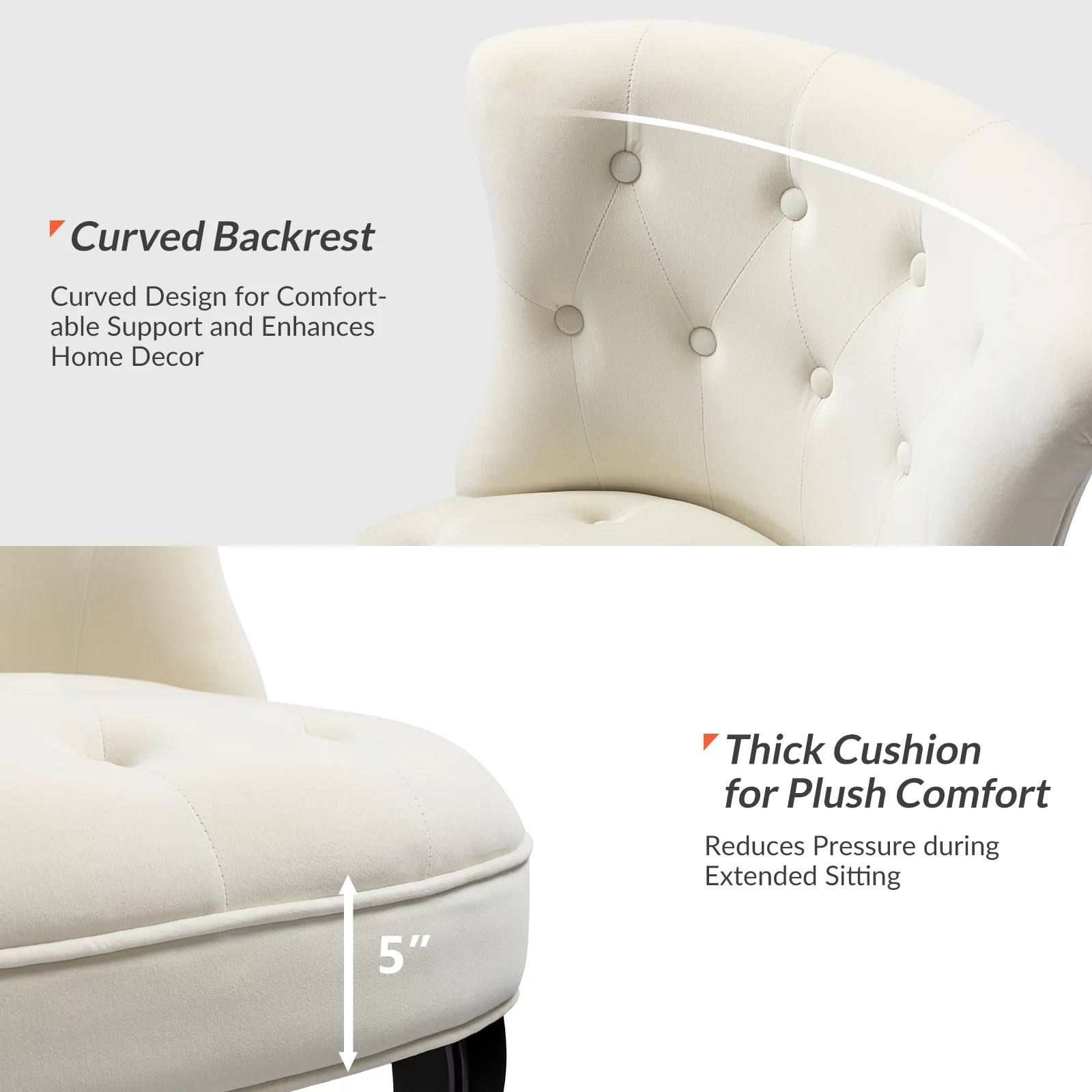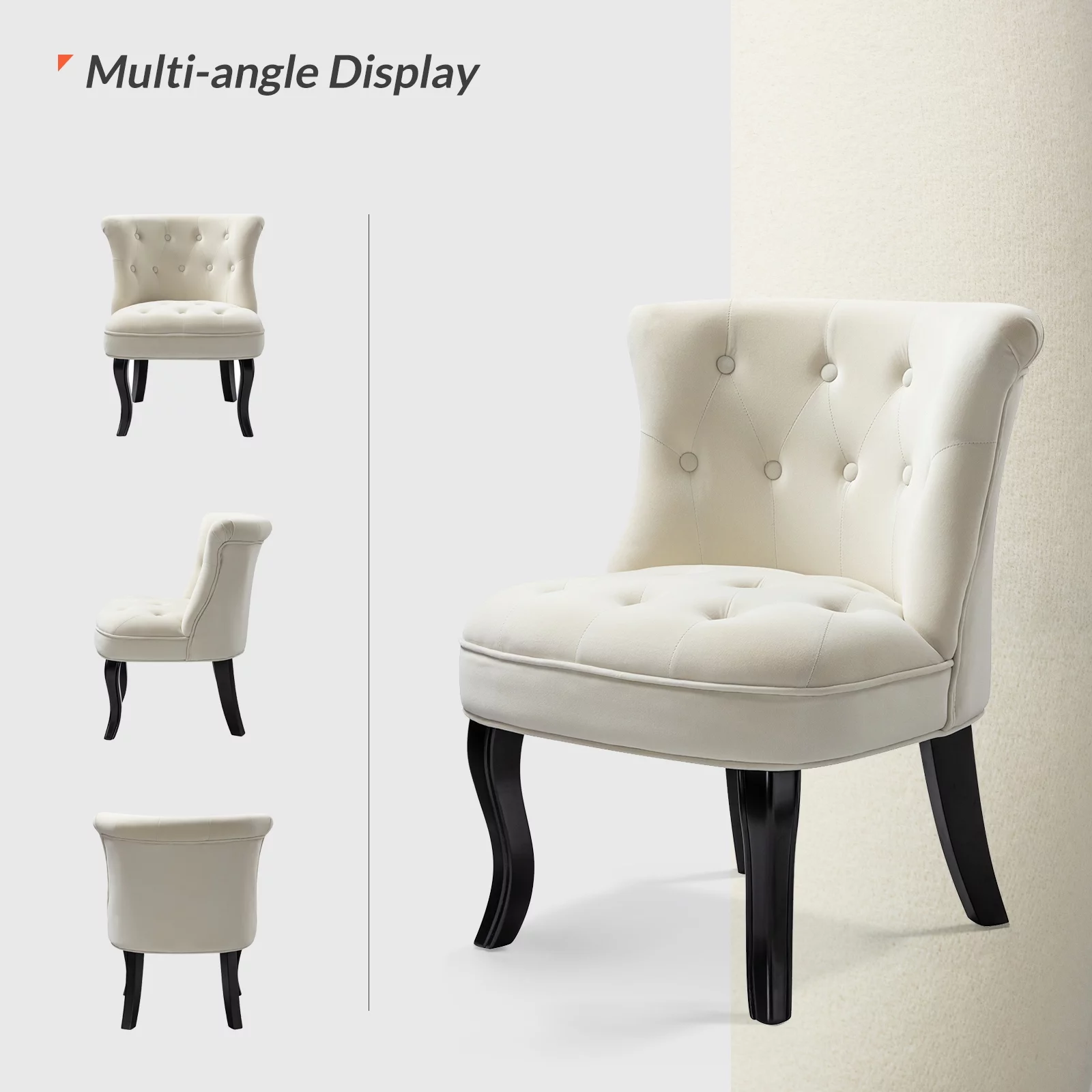 Modern Velvet Armless Accent Chairs Upholstered Button Single Sofa Set of 2 Wooden Legs Home Bedroom,Ivory