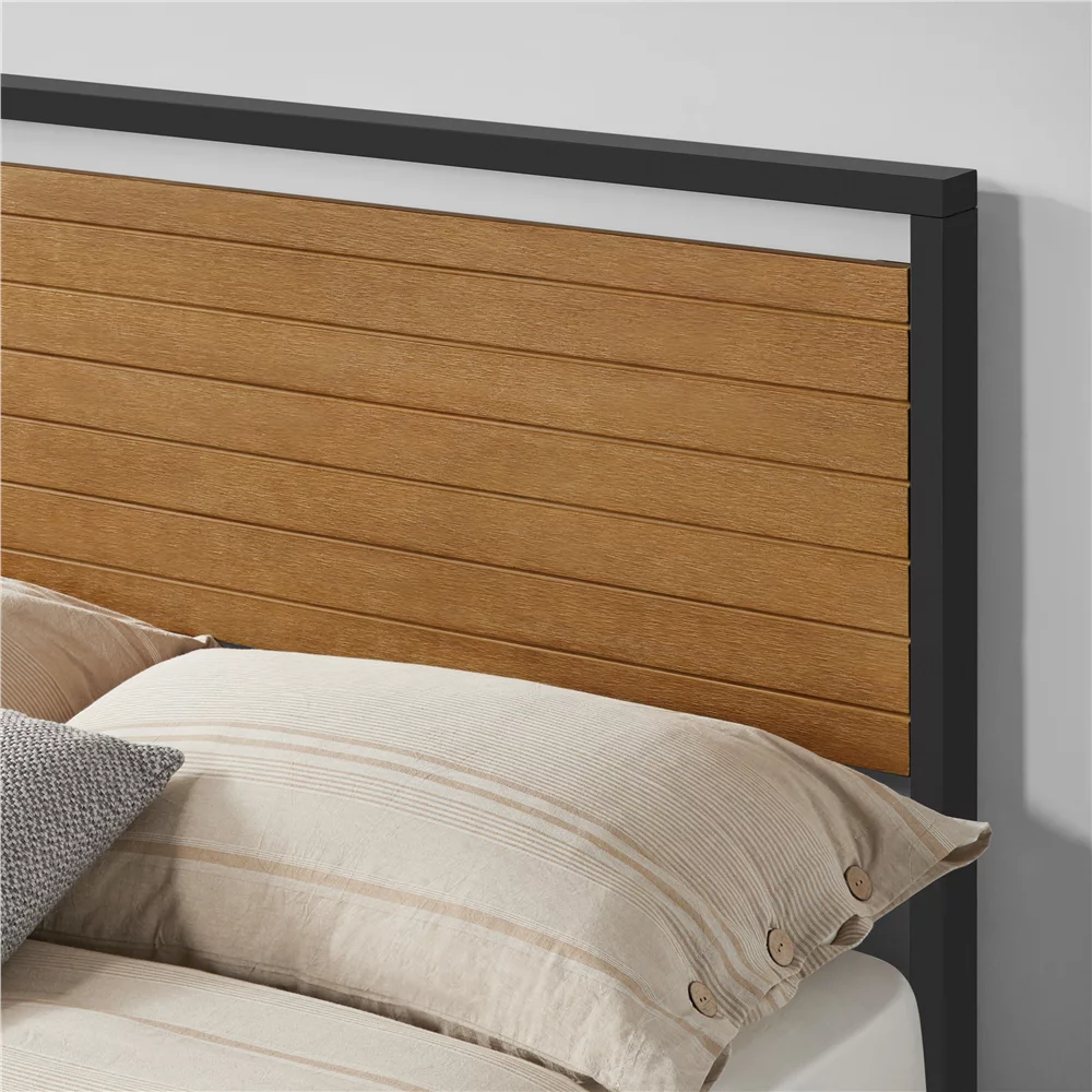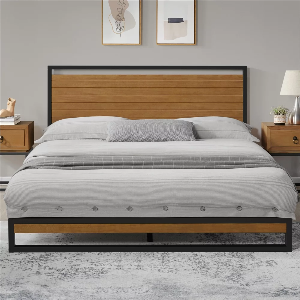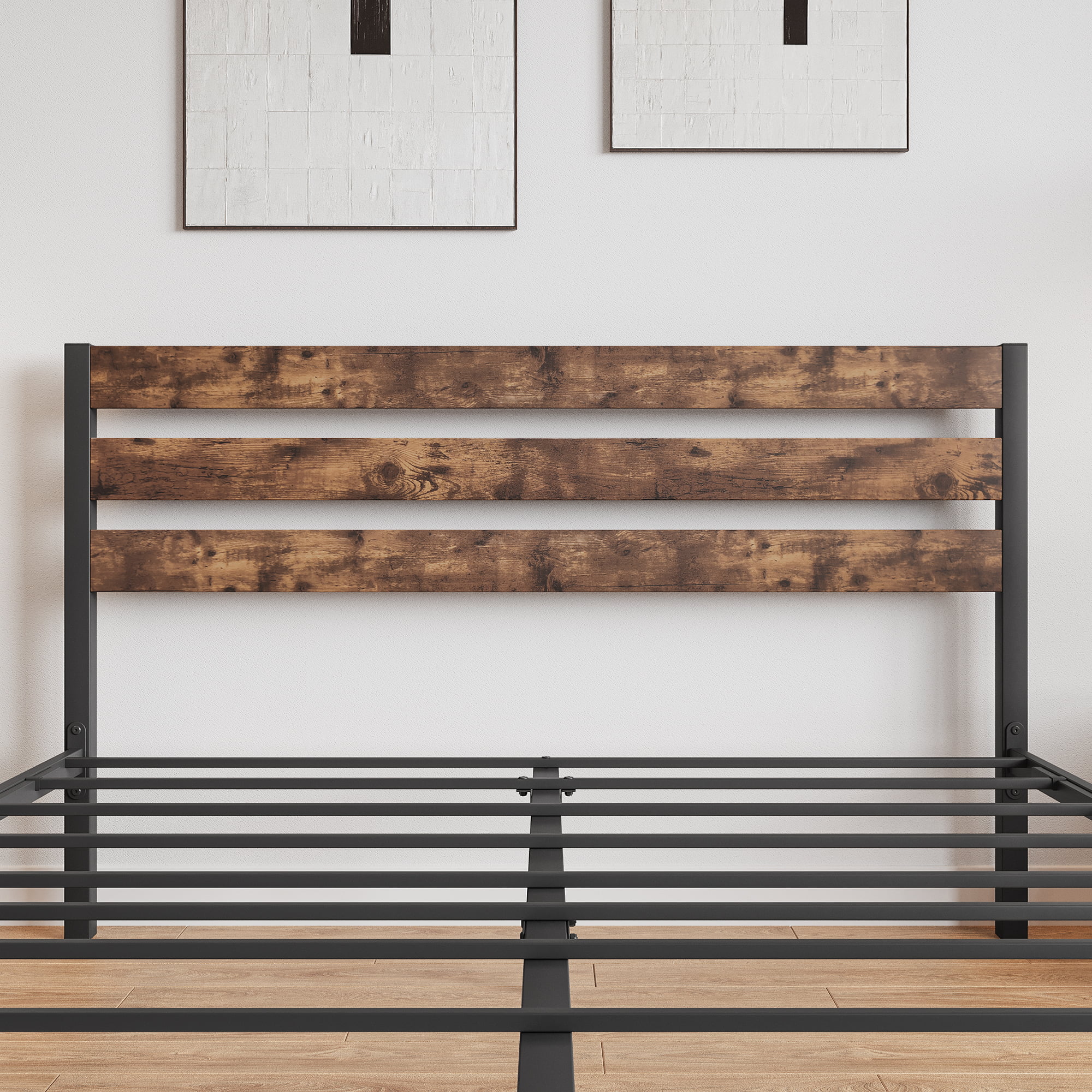 Yaheetech Modern Platform Bed Frame with Wood Headboard and Slats, Queen Size, Chestnut Brown