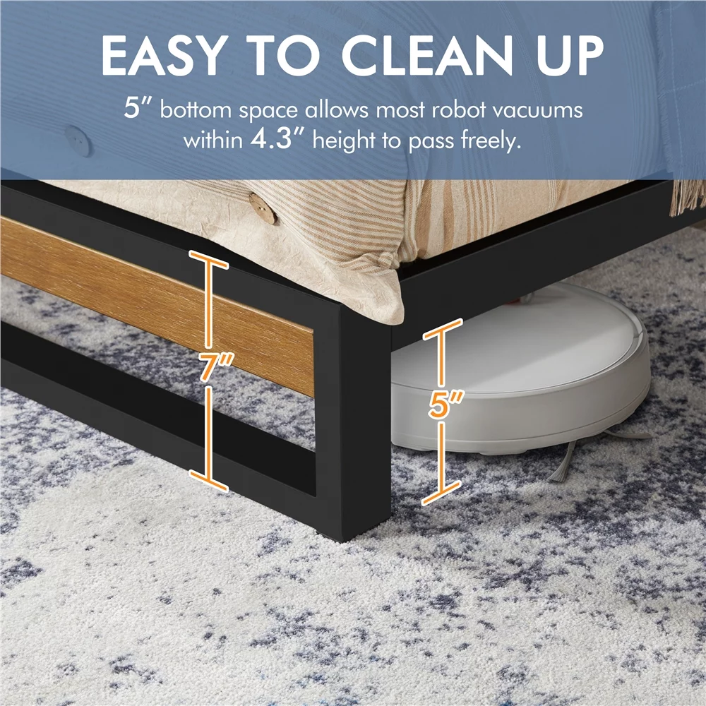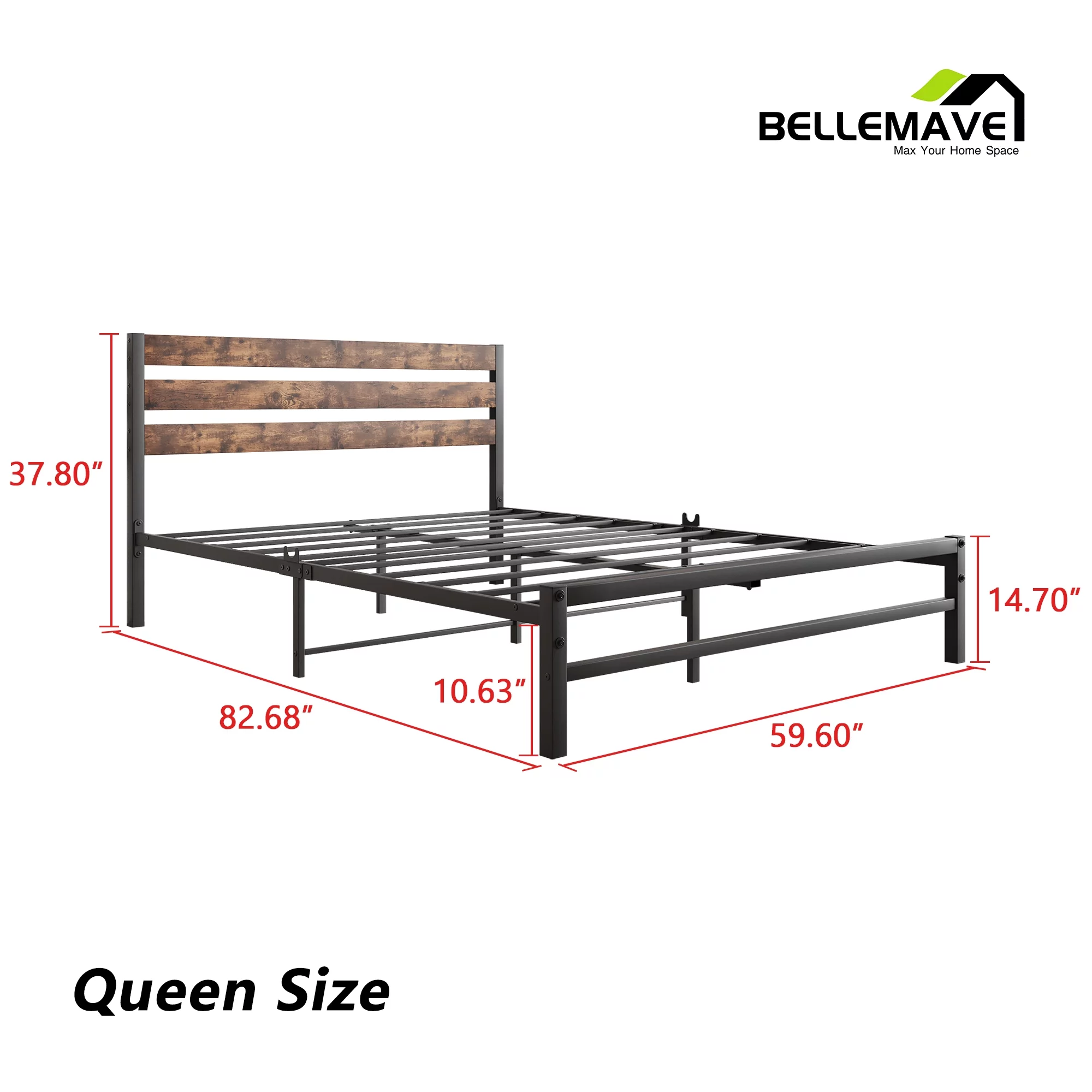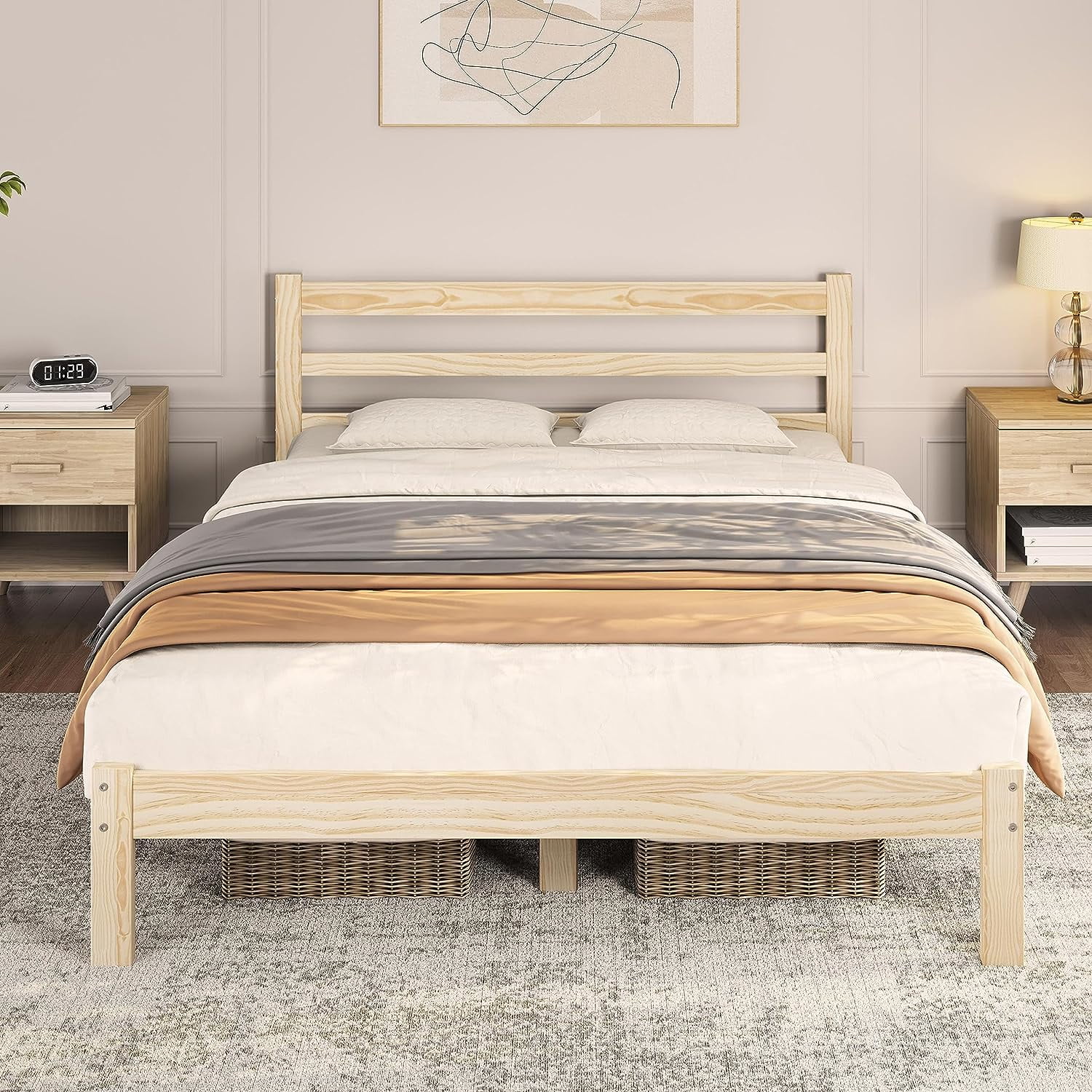 Yaheetech Modern Platform Bed Frame with Wood Headboard and Slats, Queen Size, Chestnut Brown