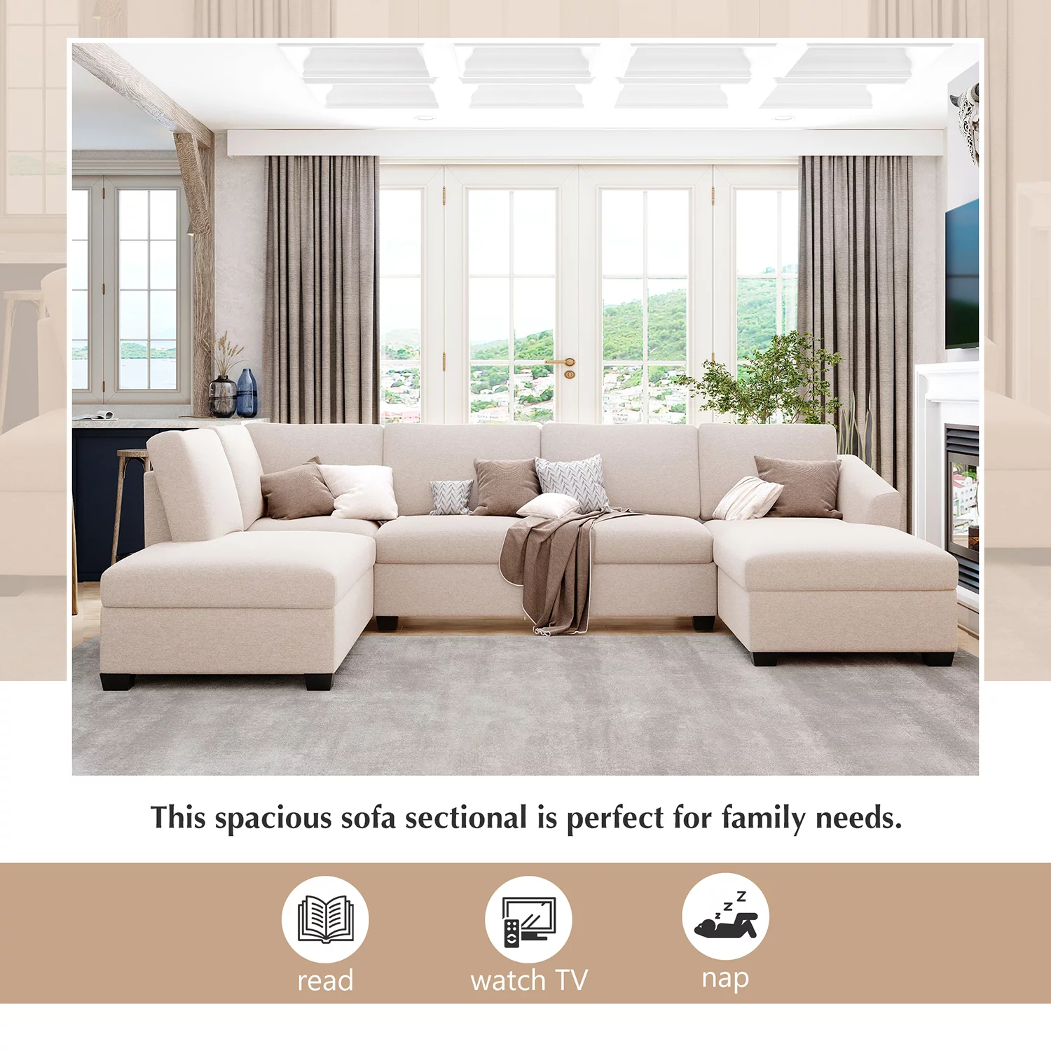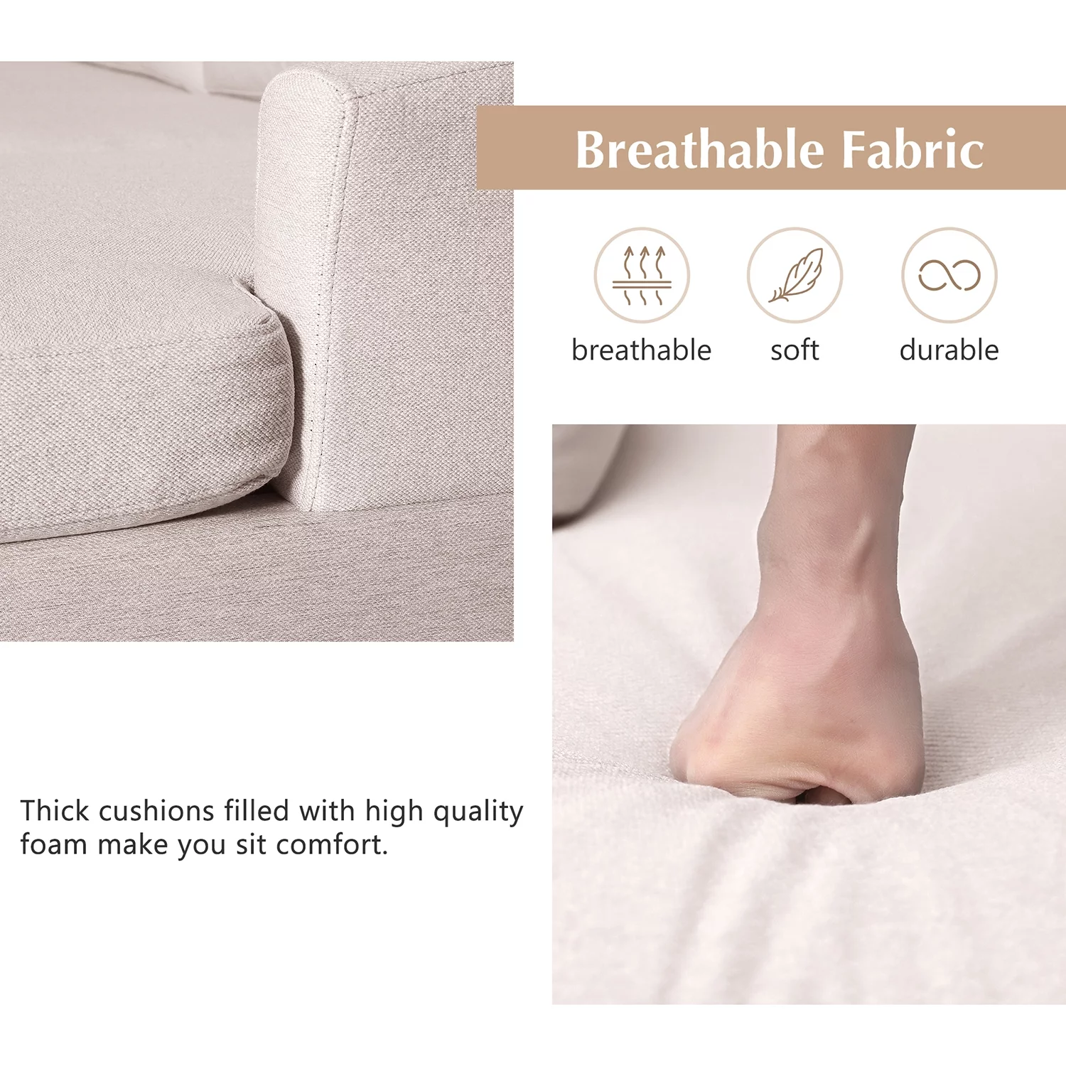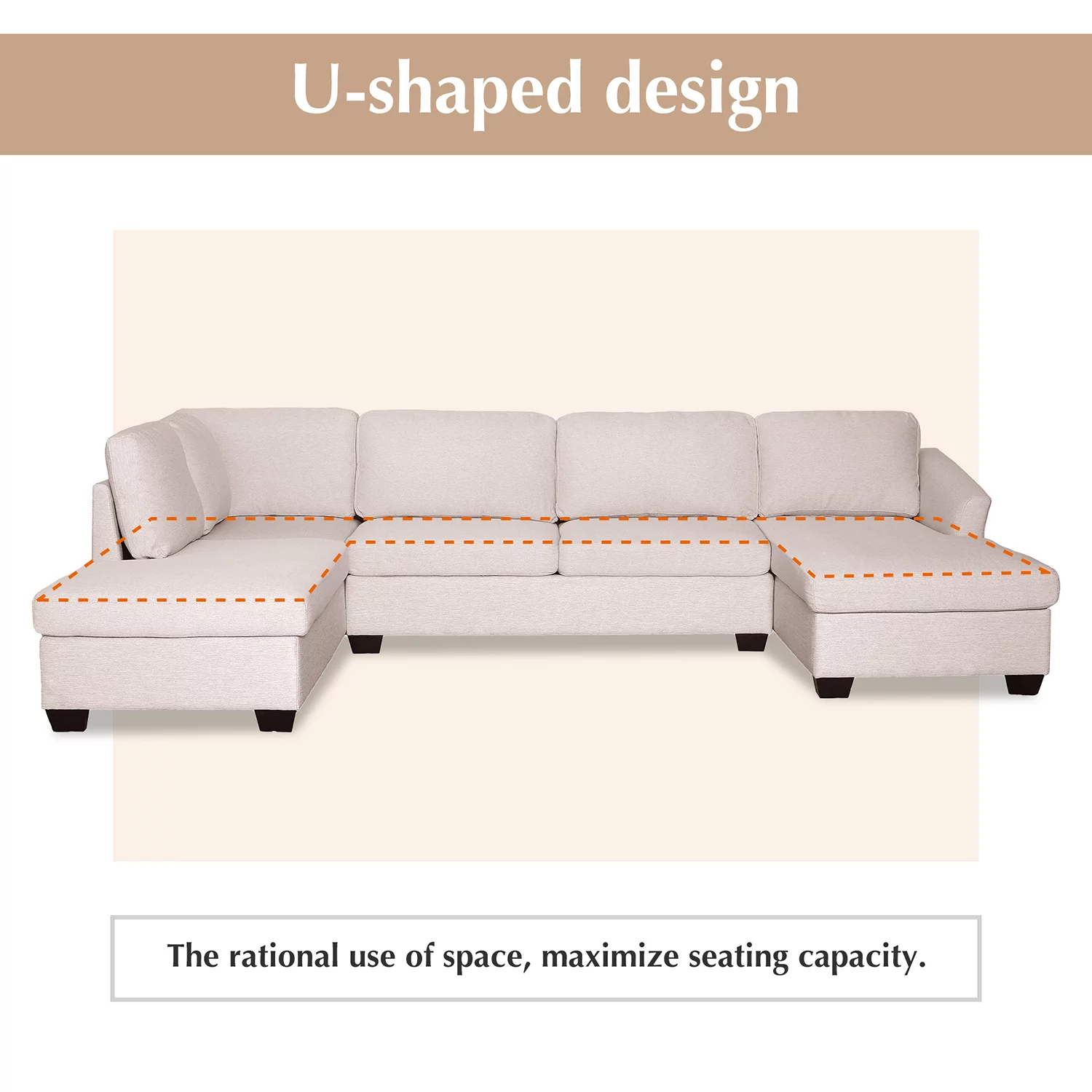 Churanty 117" U Shape Modern Sectional Sofa Set Large Size Linen Modular Sectional with Chaise Lounge for Living Room,Beige