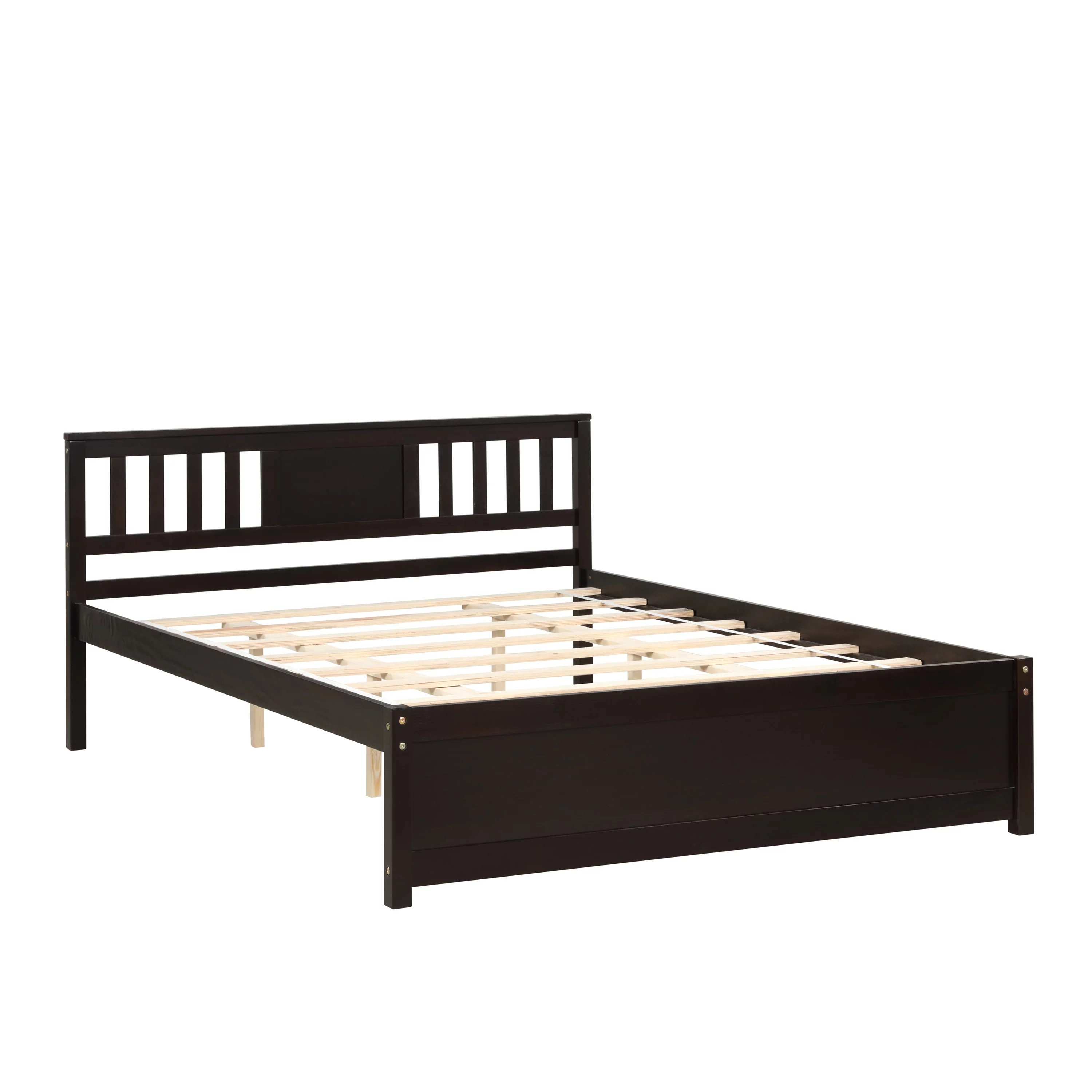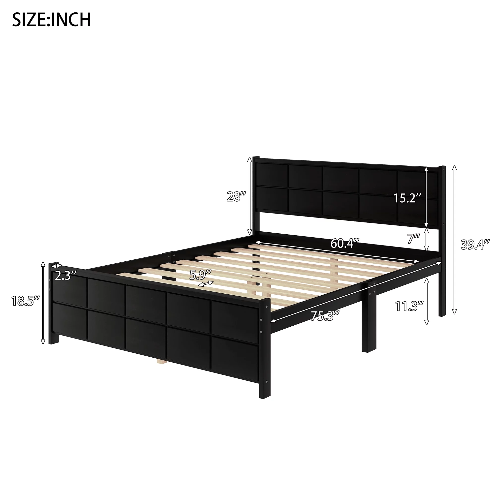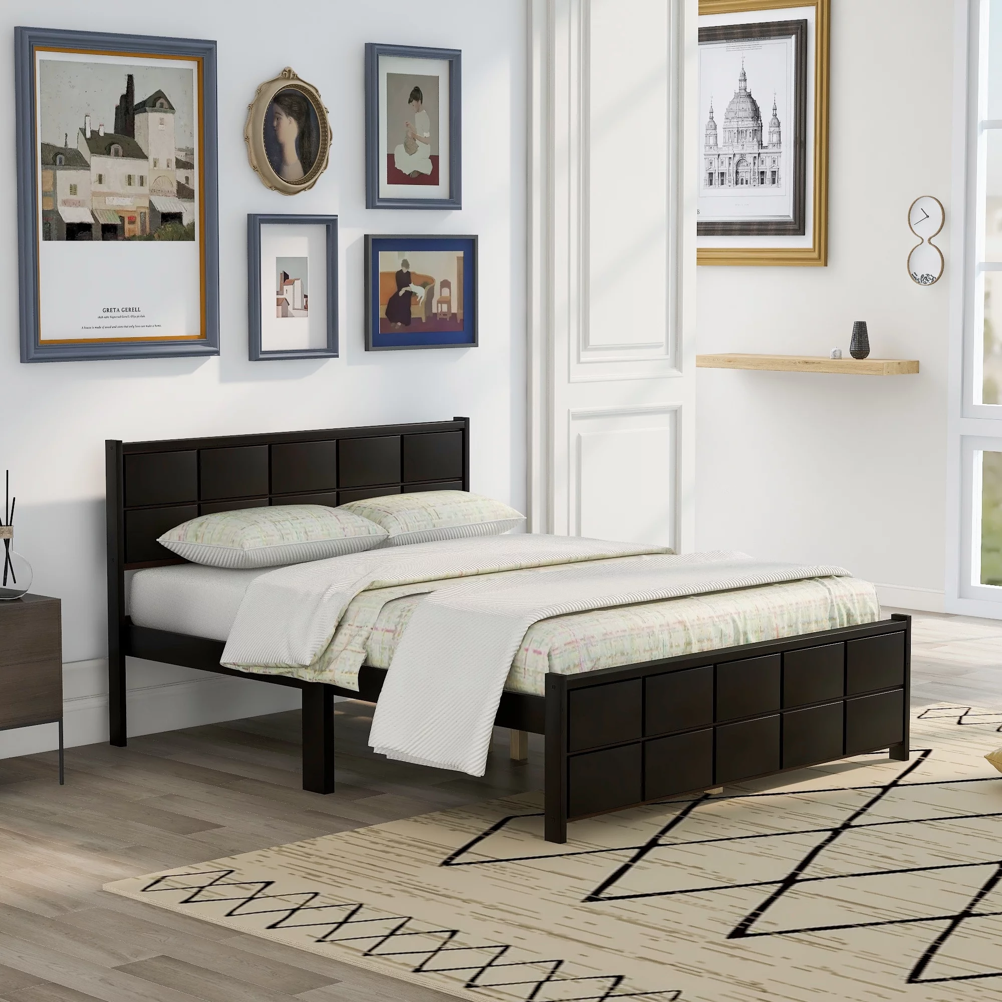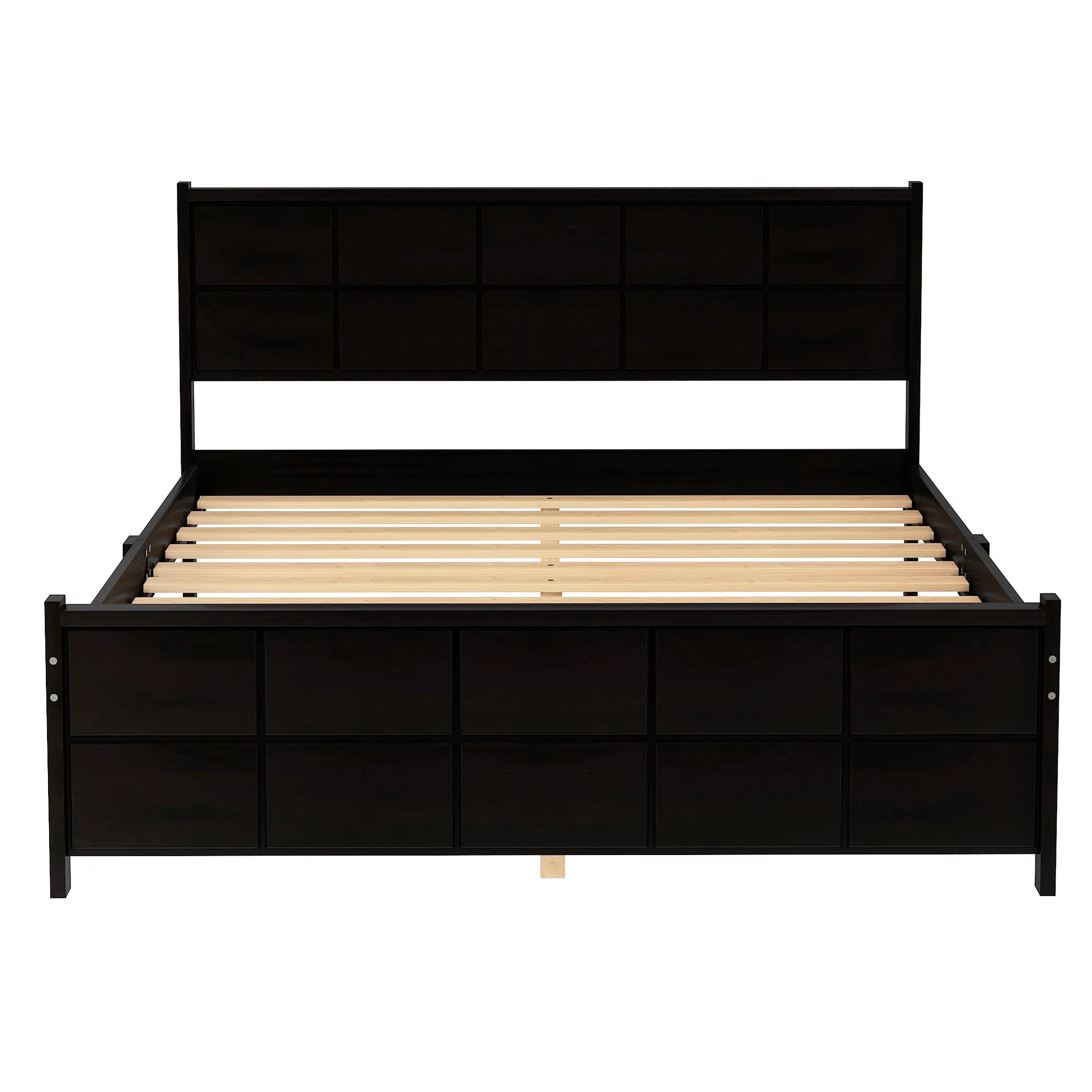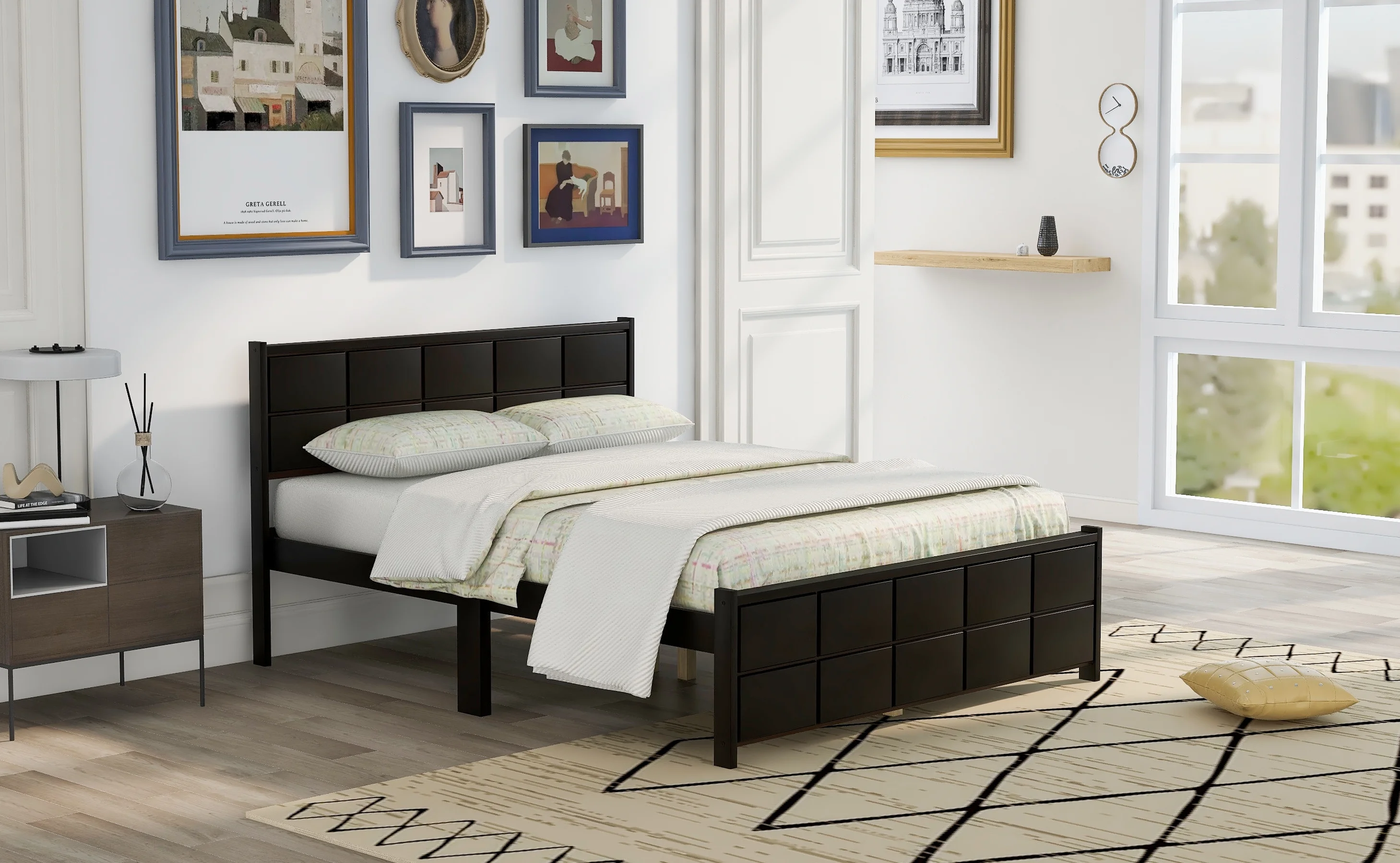 Euroco Queen Platform Bed, Wood Frame with Headboard and Footboard for Kids, Espresso