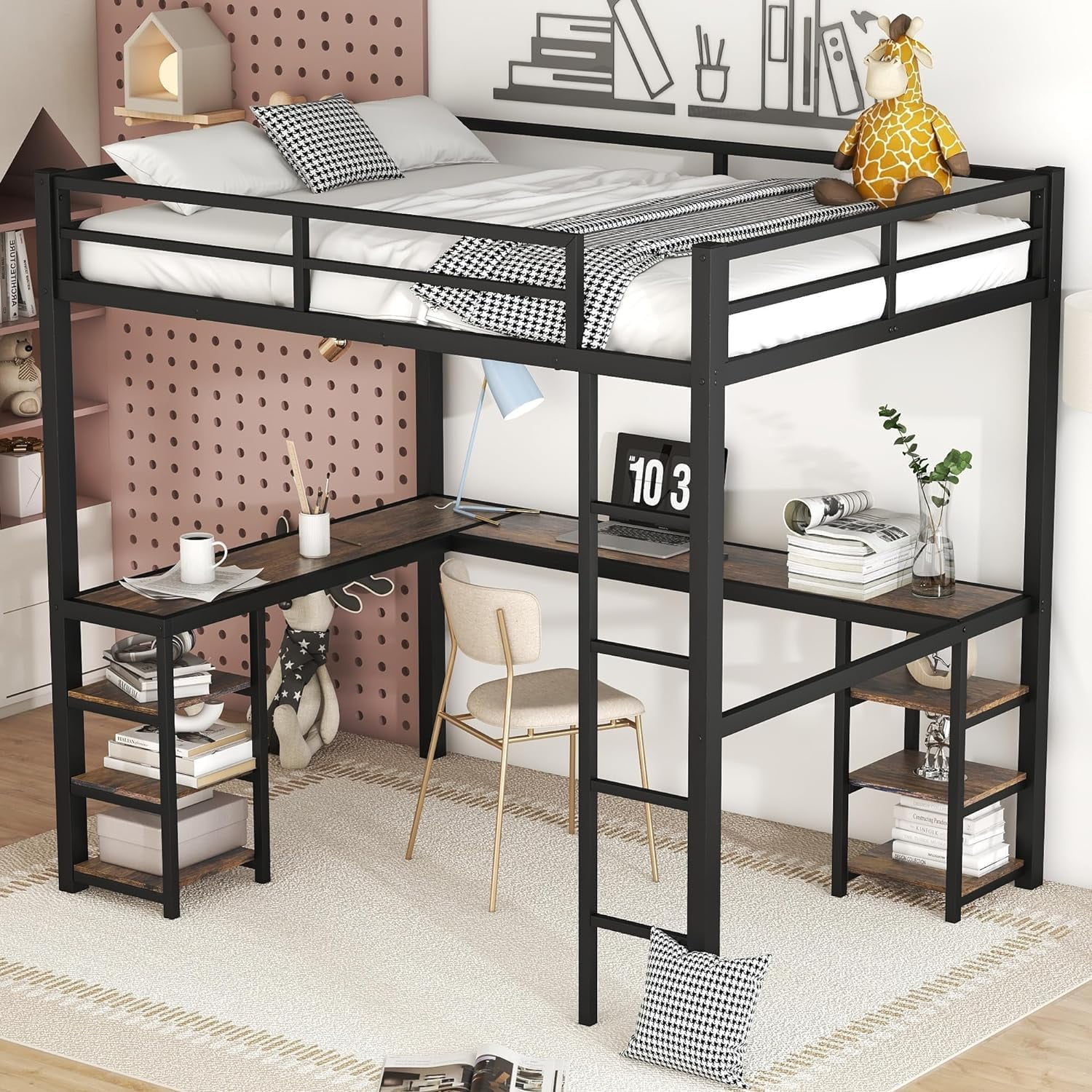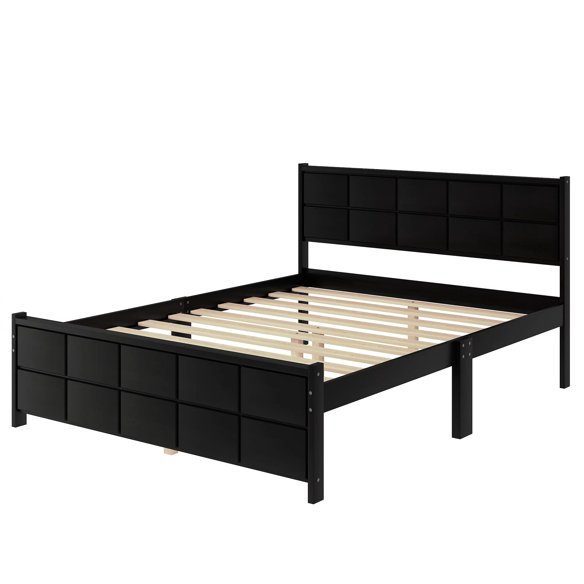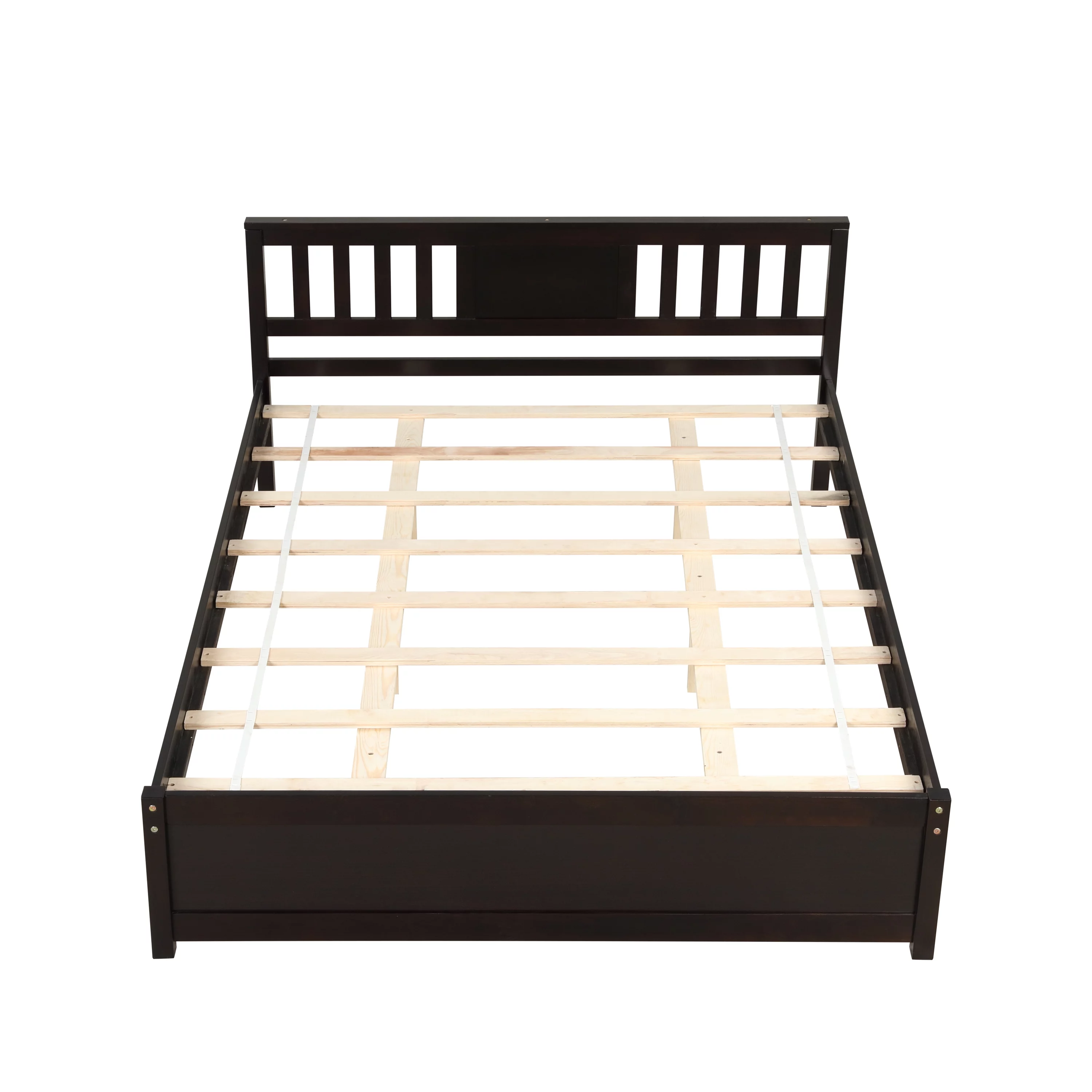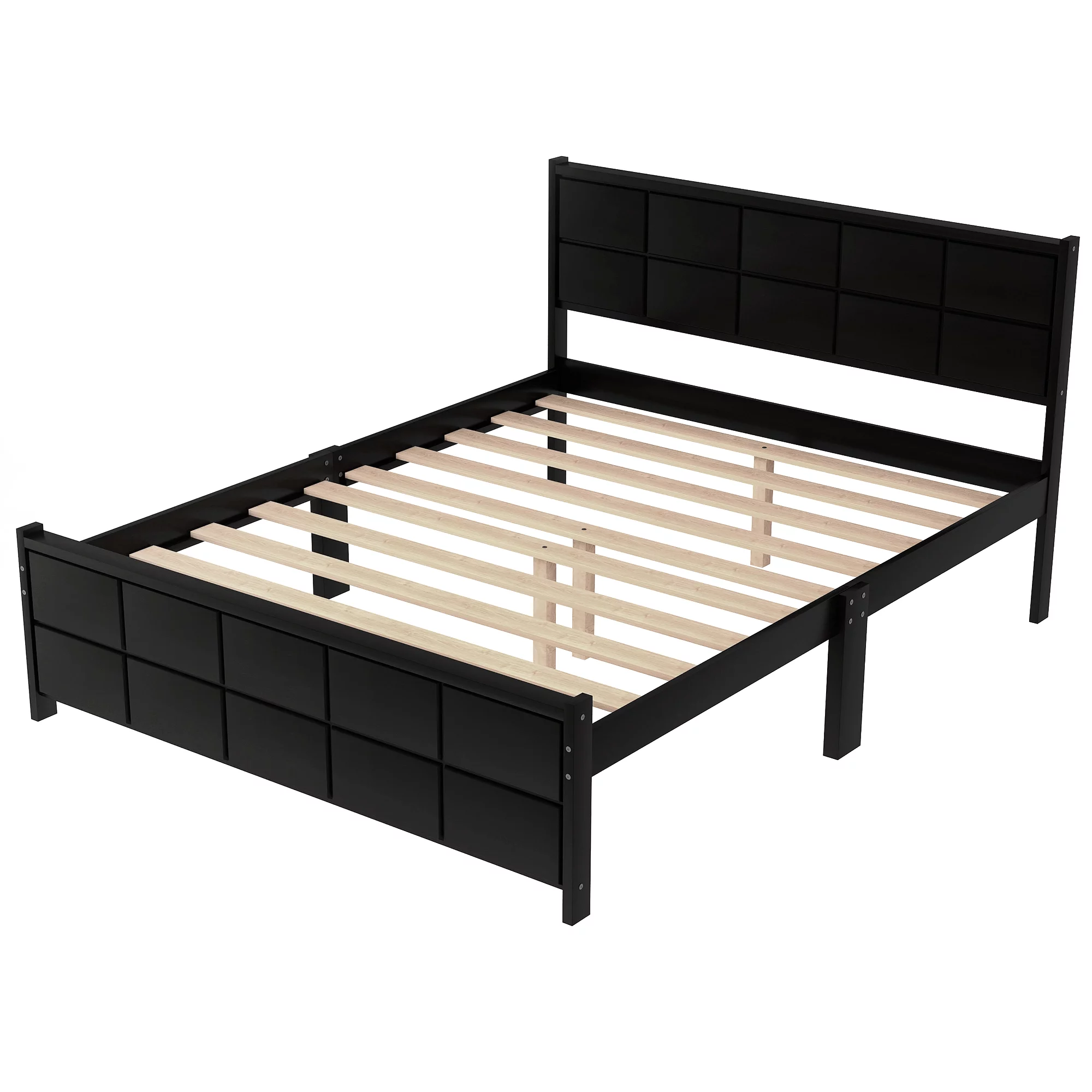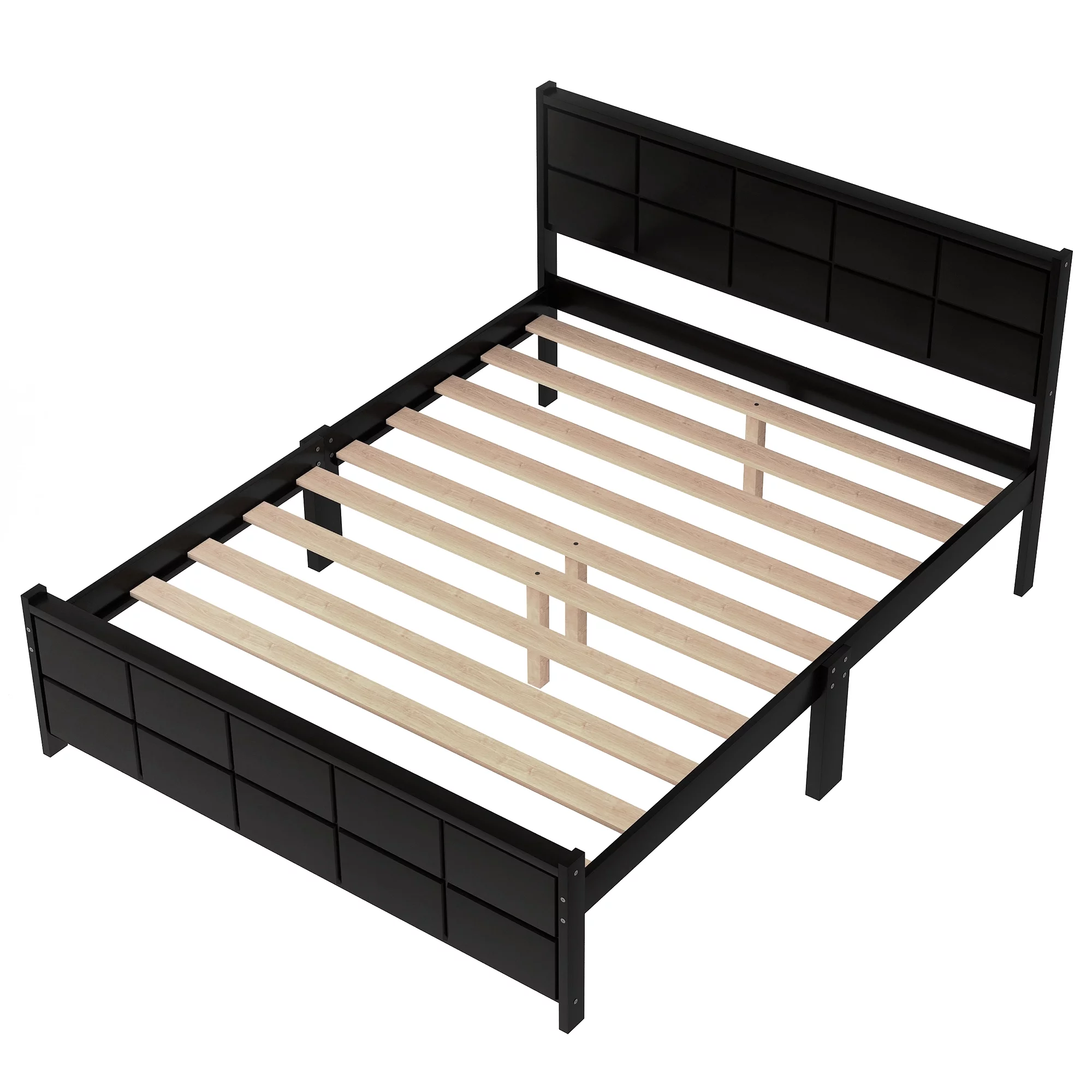 Euroco Queen Platform Bed, Wood Frame with Headboard and Footboard for Kids, Espresso
