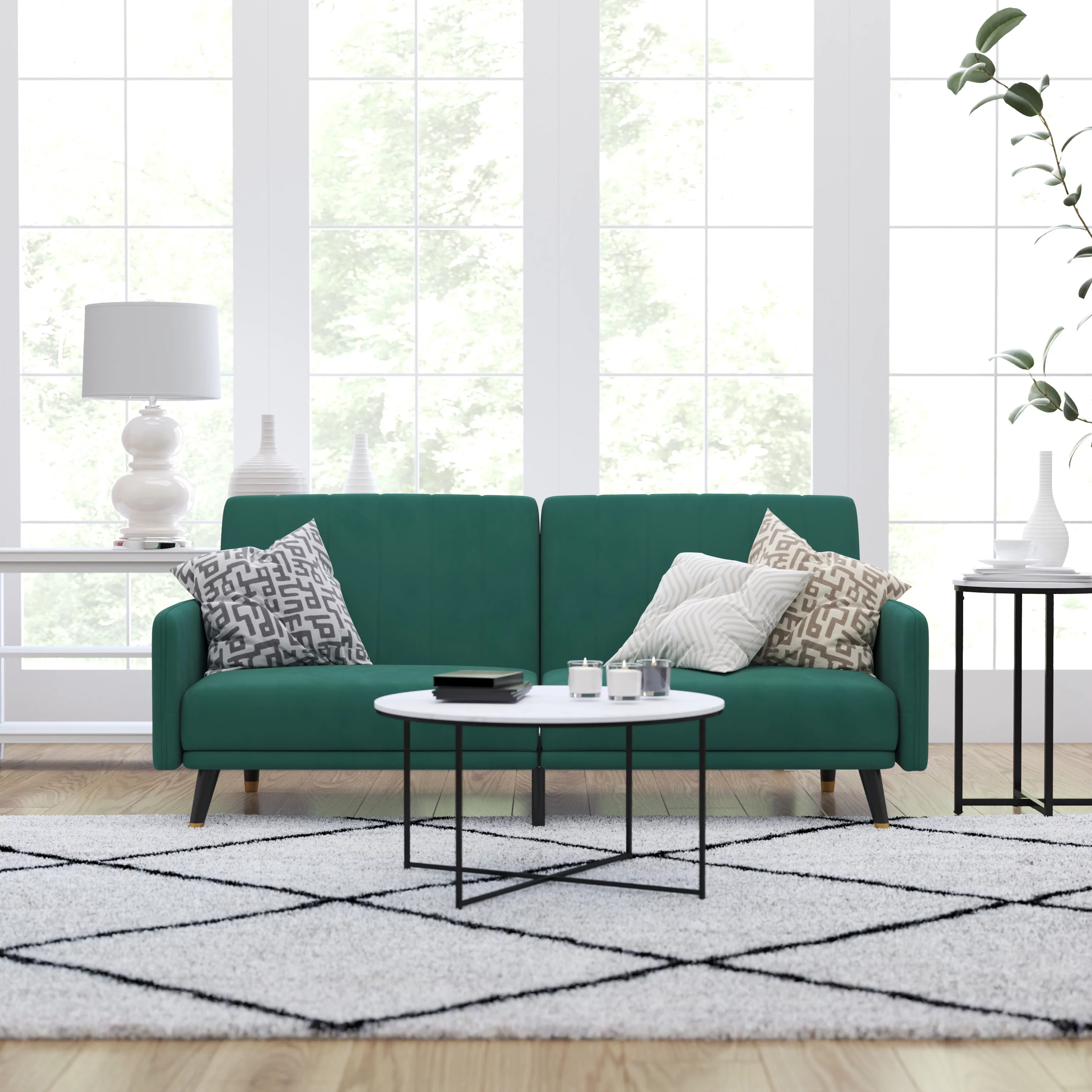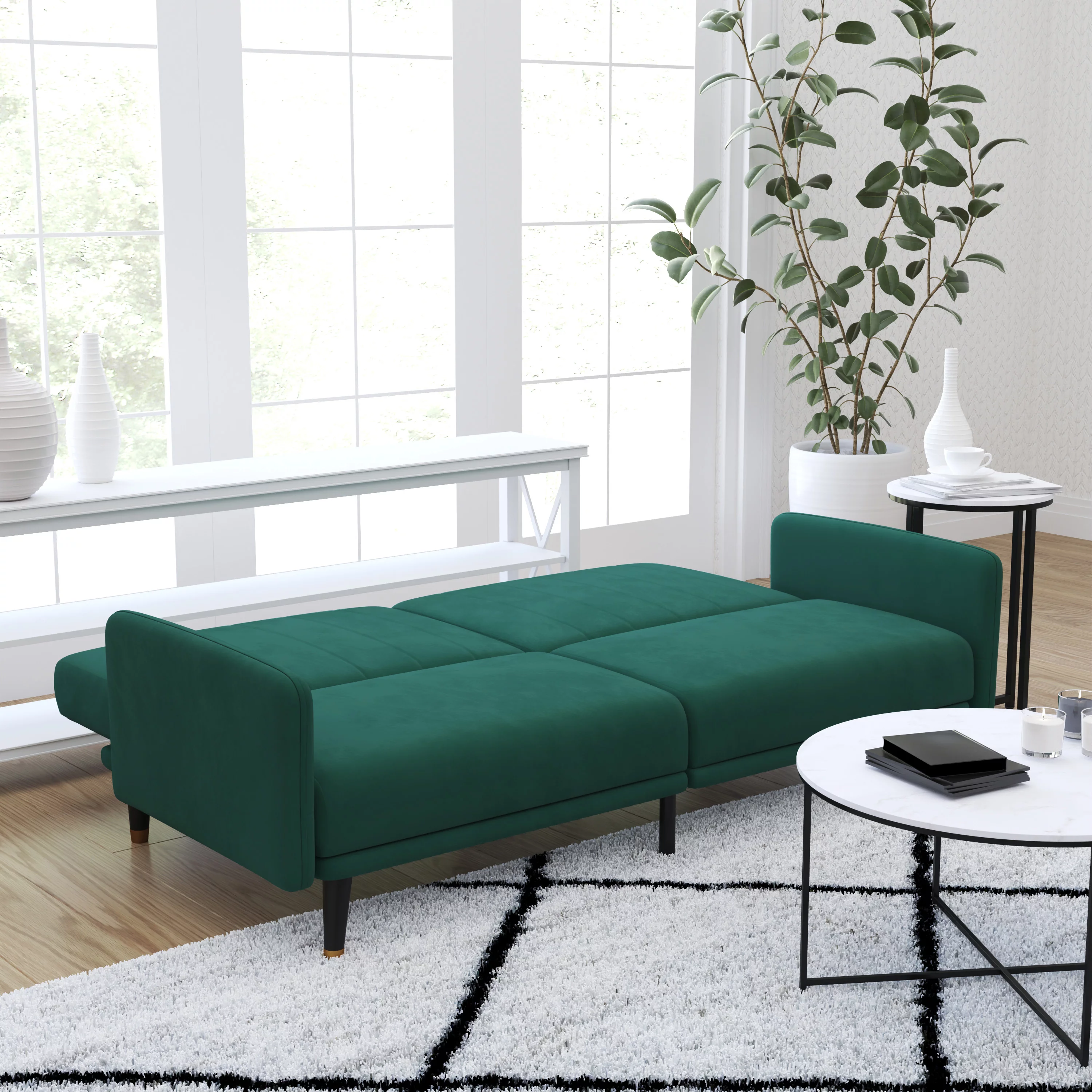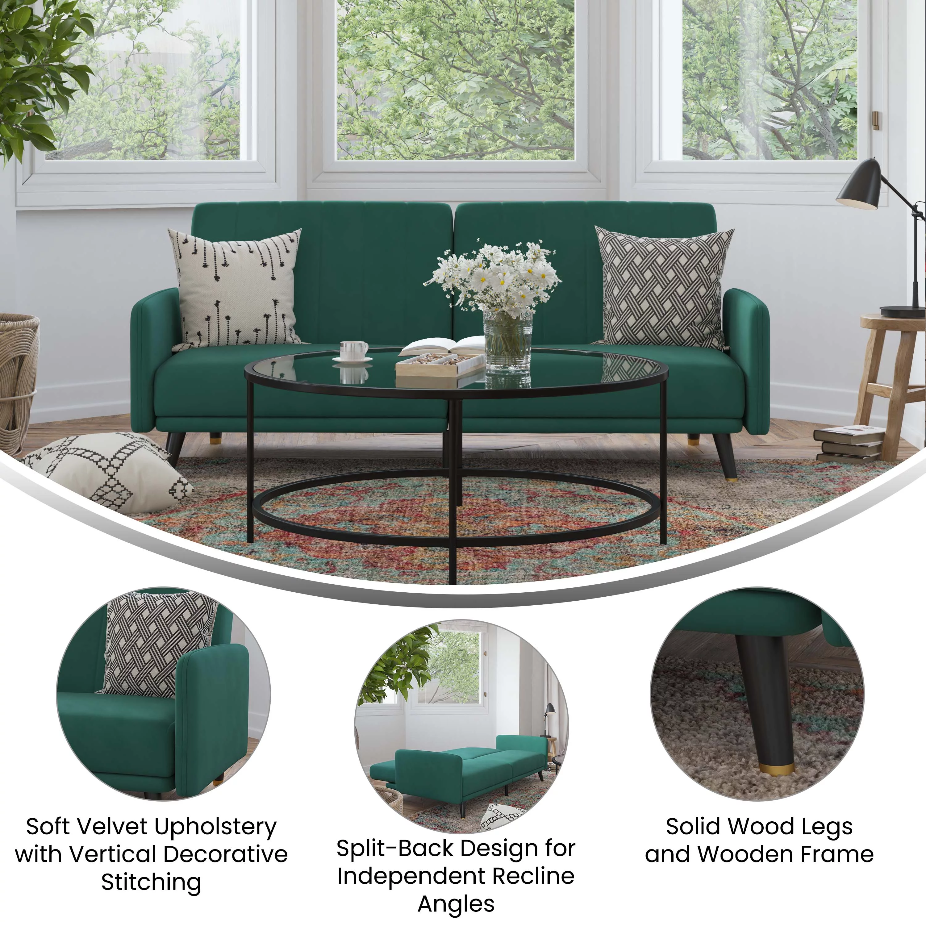 Merrick Lane Mid Century Modern Split-Back Sofa Futon with 3 Recline Positions In Elegant Emerald Velvet Upholstery