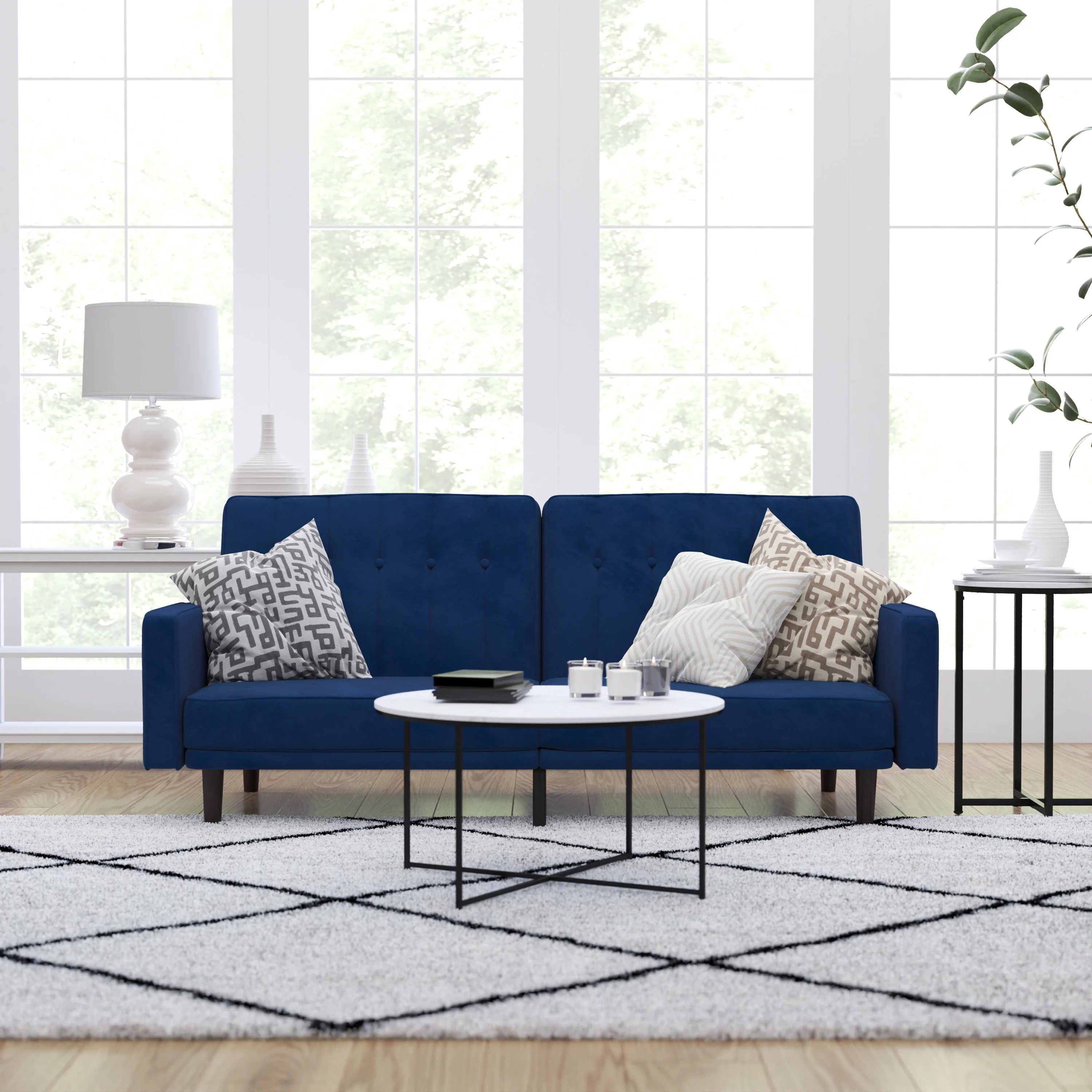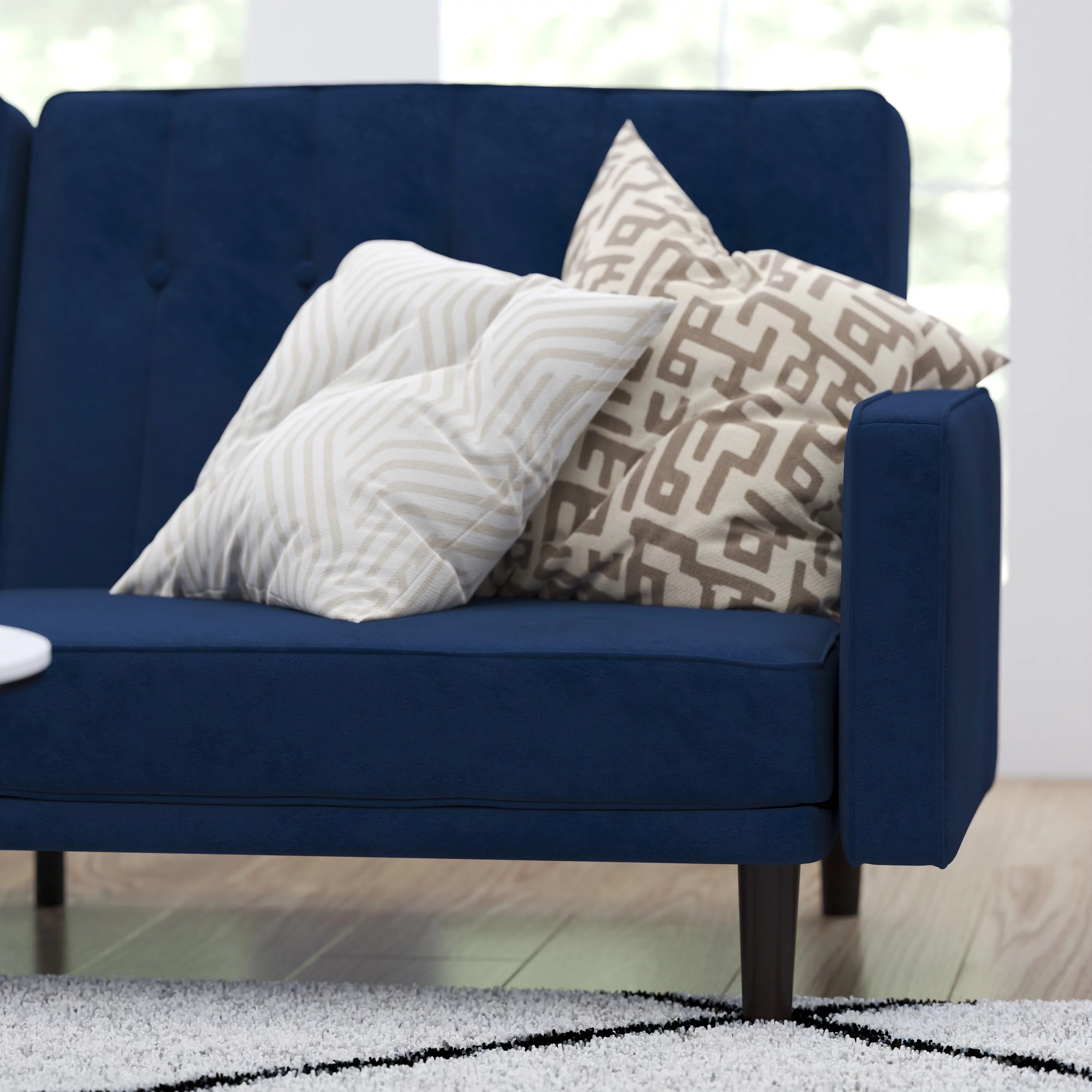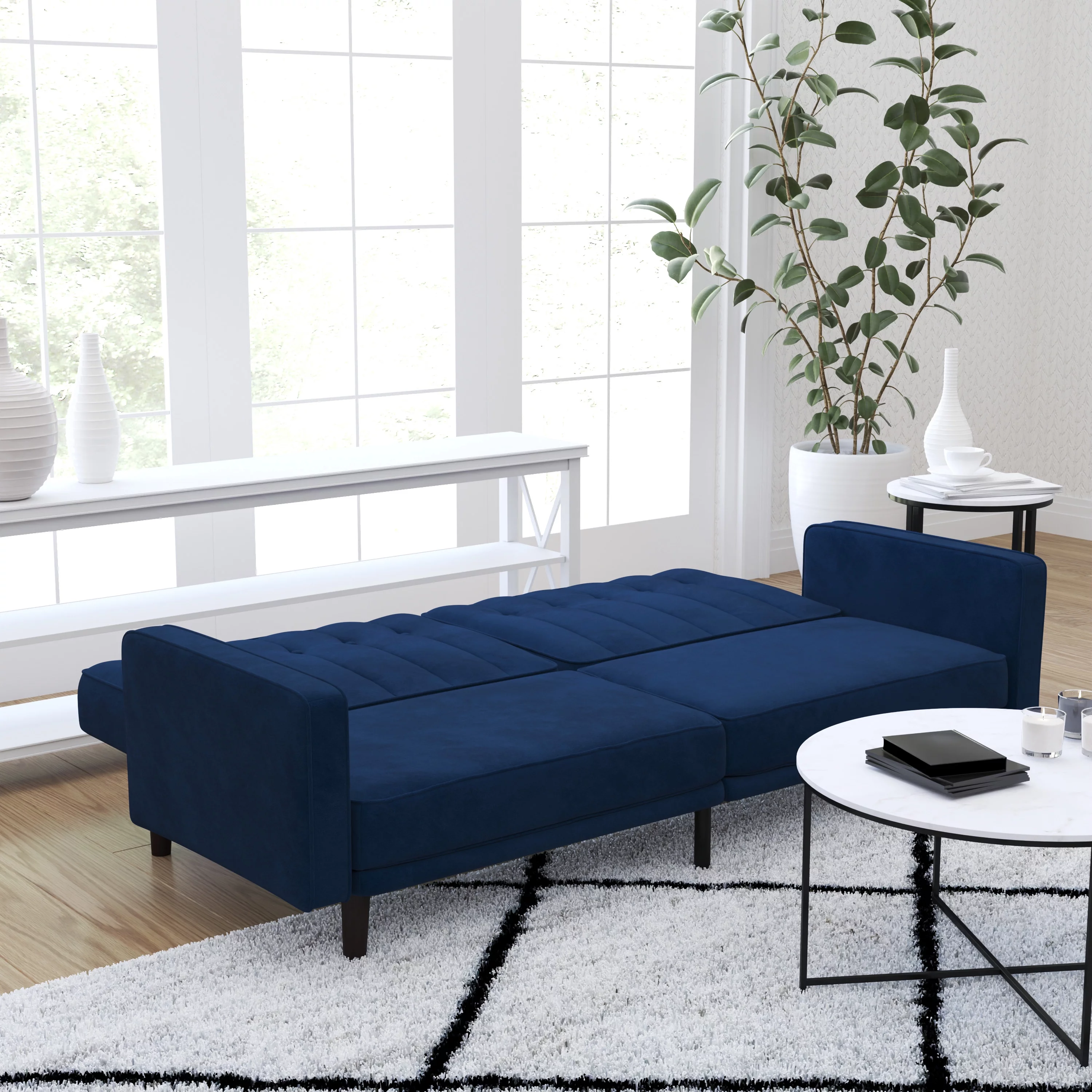 Merrick Lane Mid Century Modern Split-Back Sofa Futon with 3 Recline Positions In Elegant Navy Velvet Upholstery