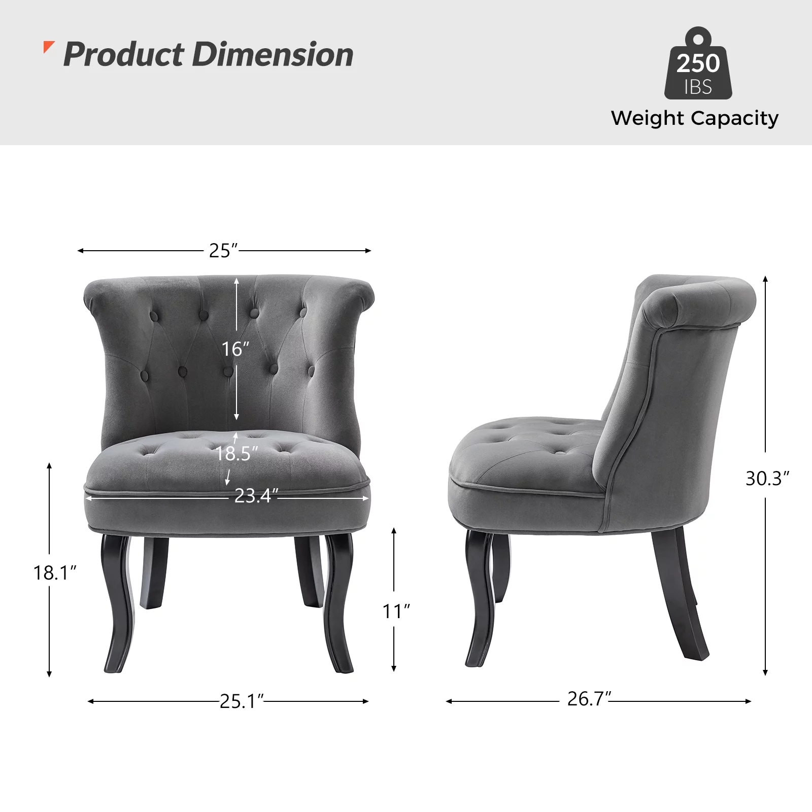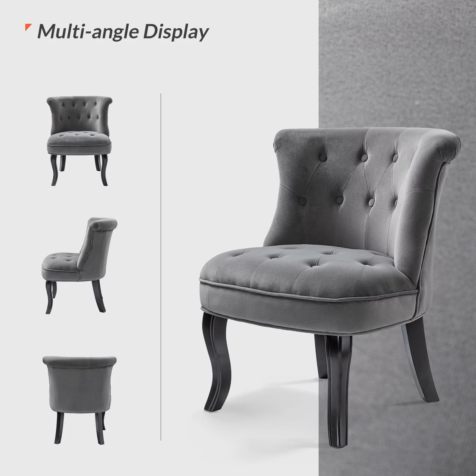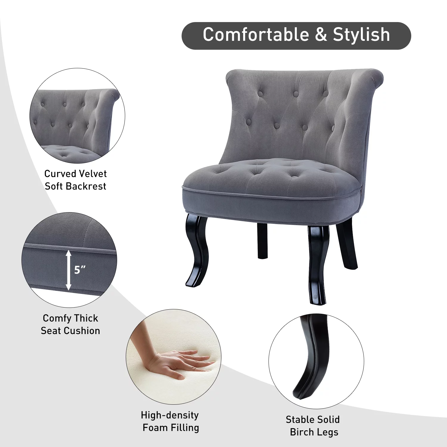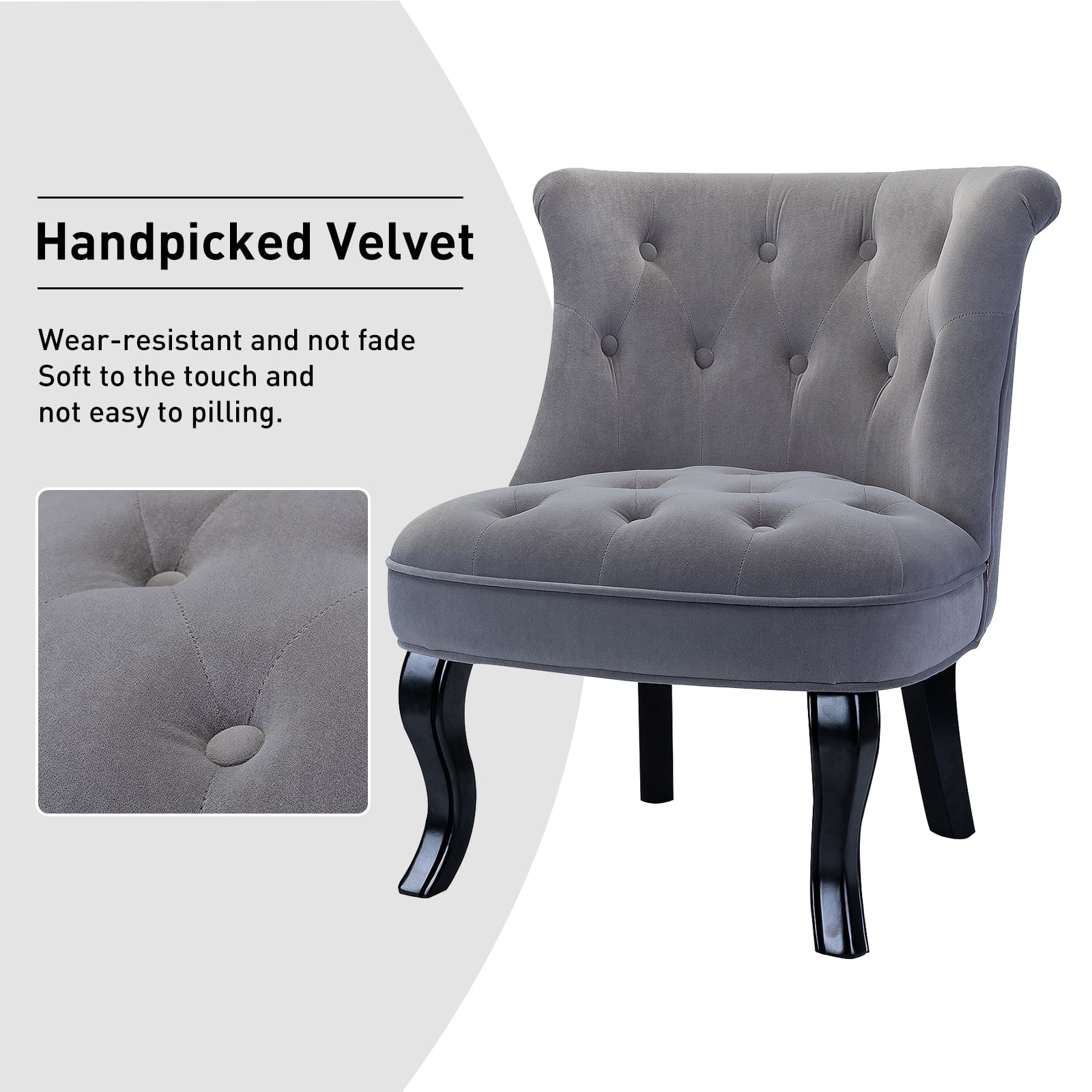 Modern Velvet Armless Accent Chairs,Upholstered Button Single Sofa Set of 2 Wooden Legs Home Bedroom,Grey