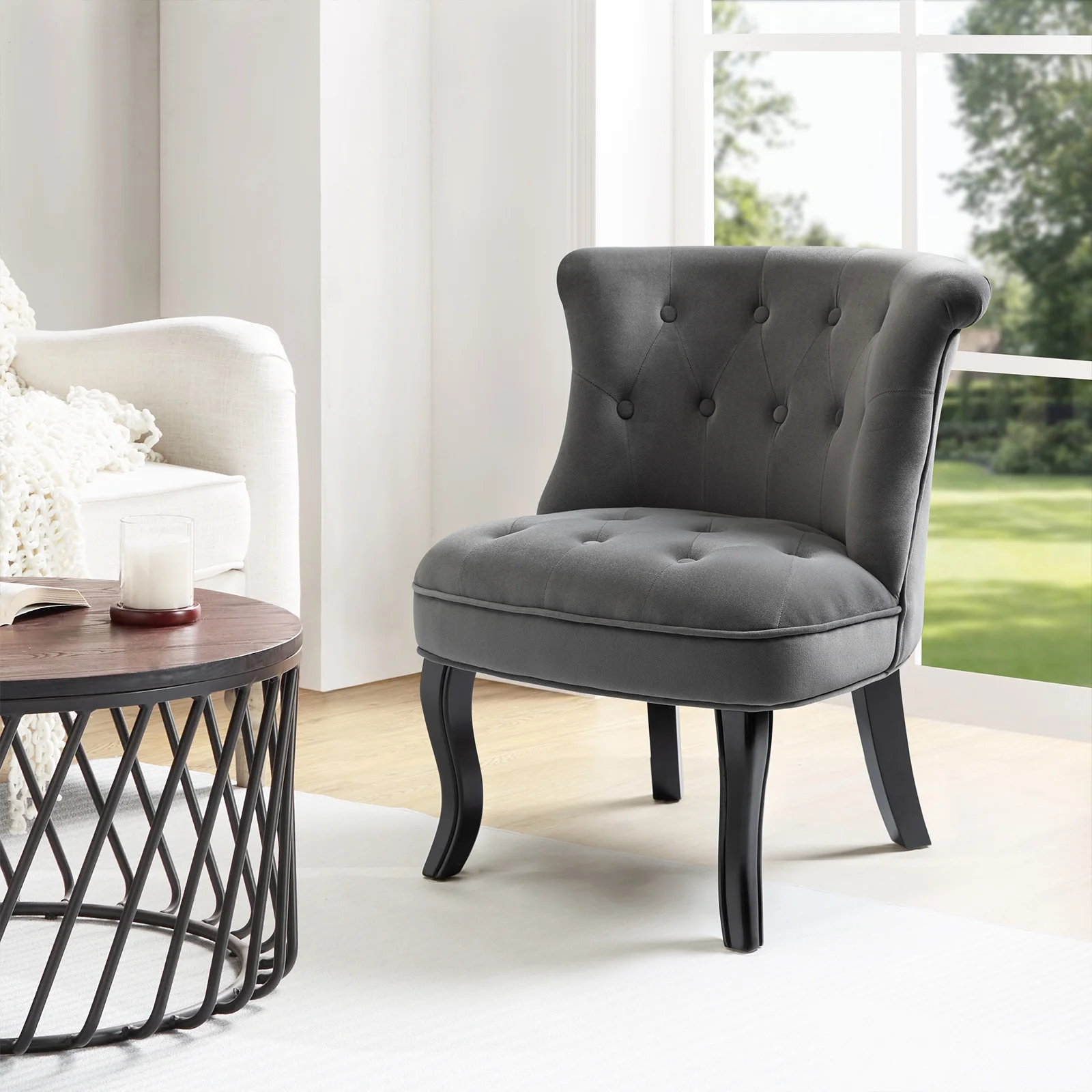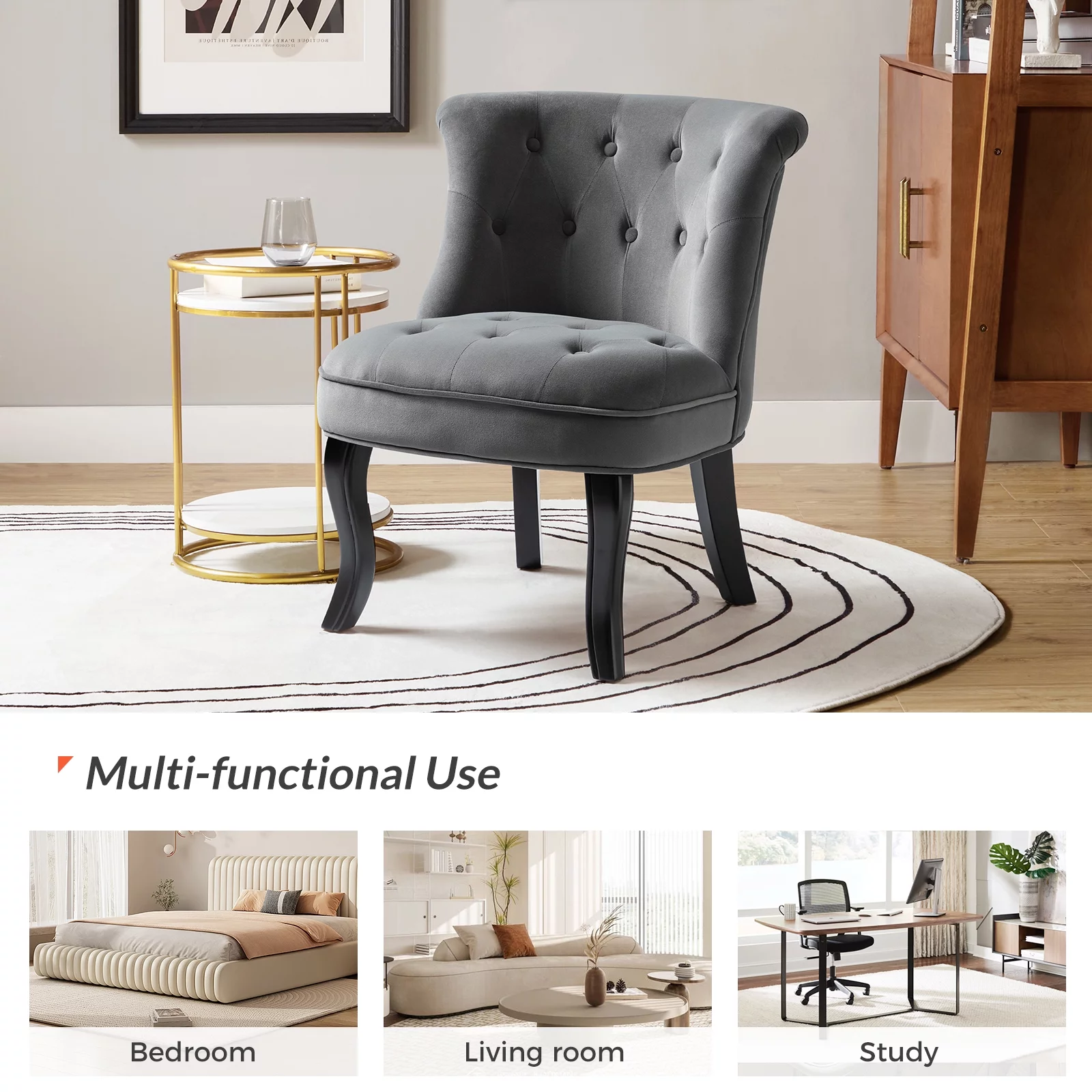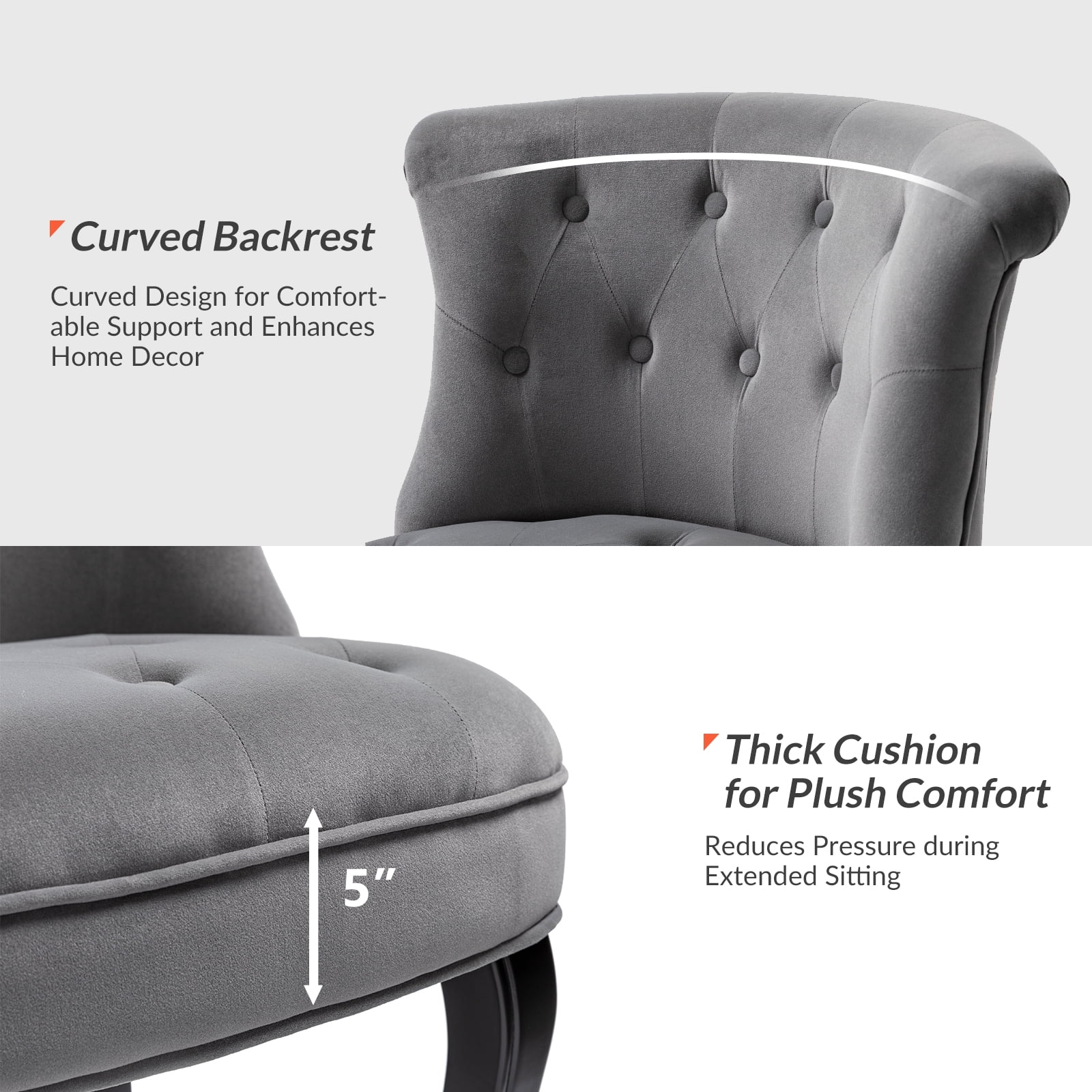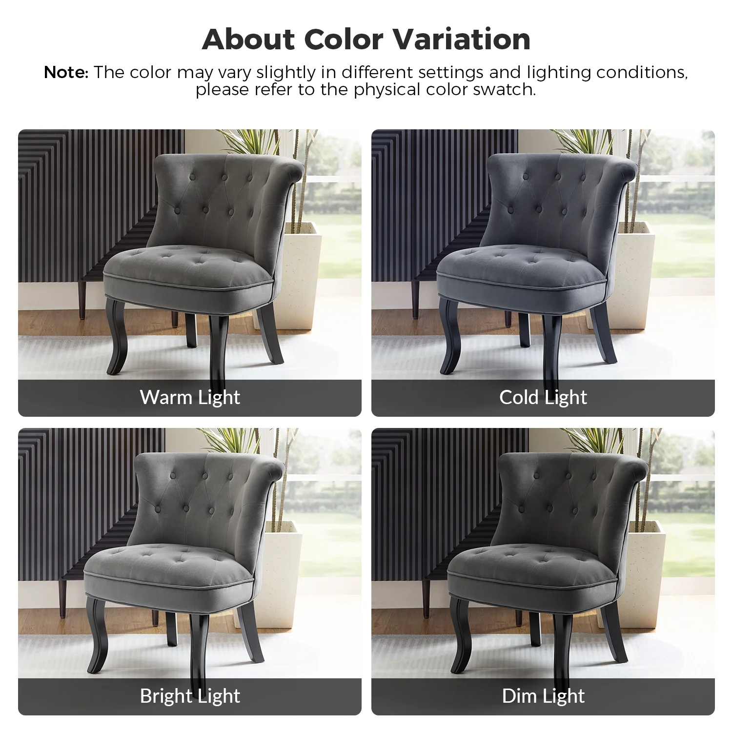 Modern Velvet Armless Accent Chairs,Upholstered Button Single Sofa Set of 2 Wooden Legs Home Bedroom,Grey