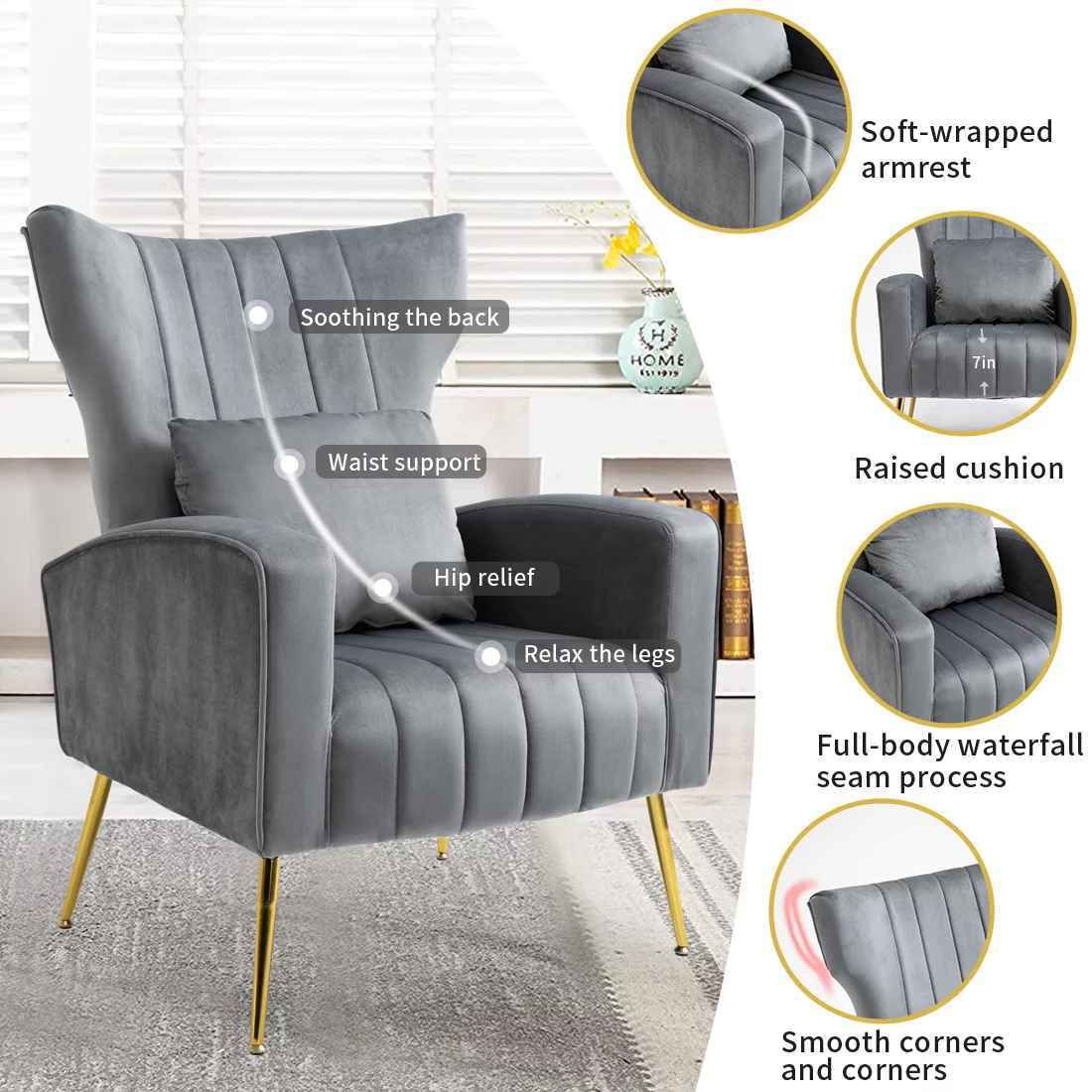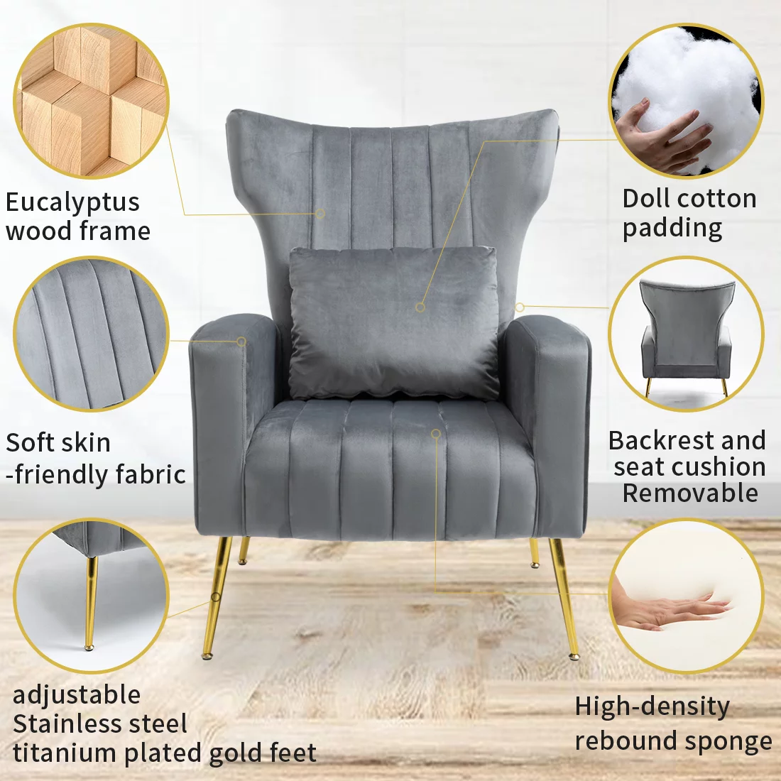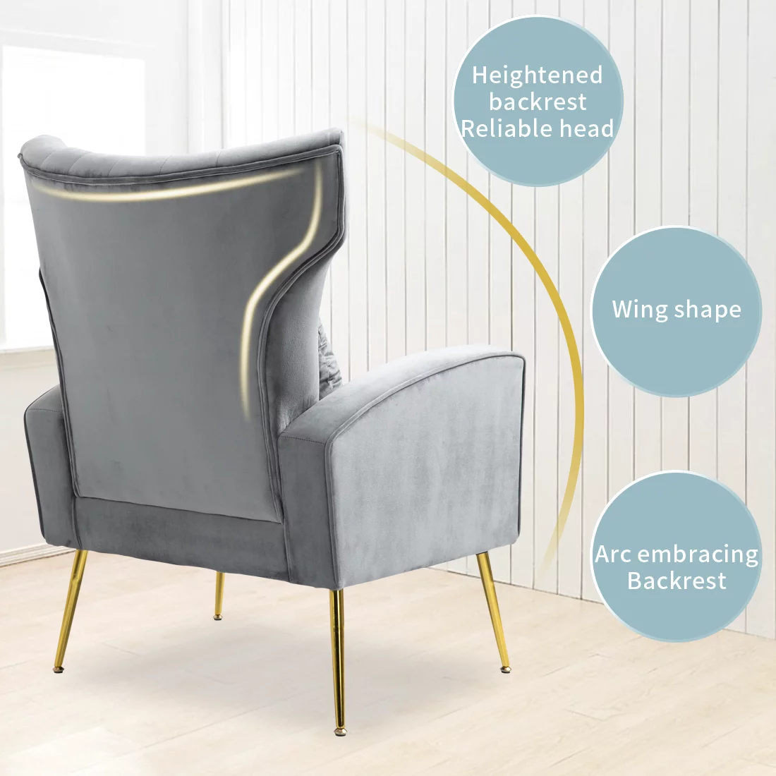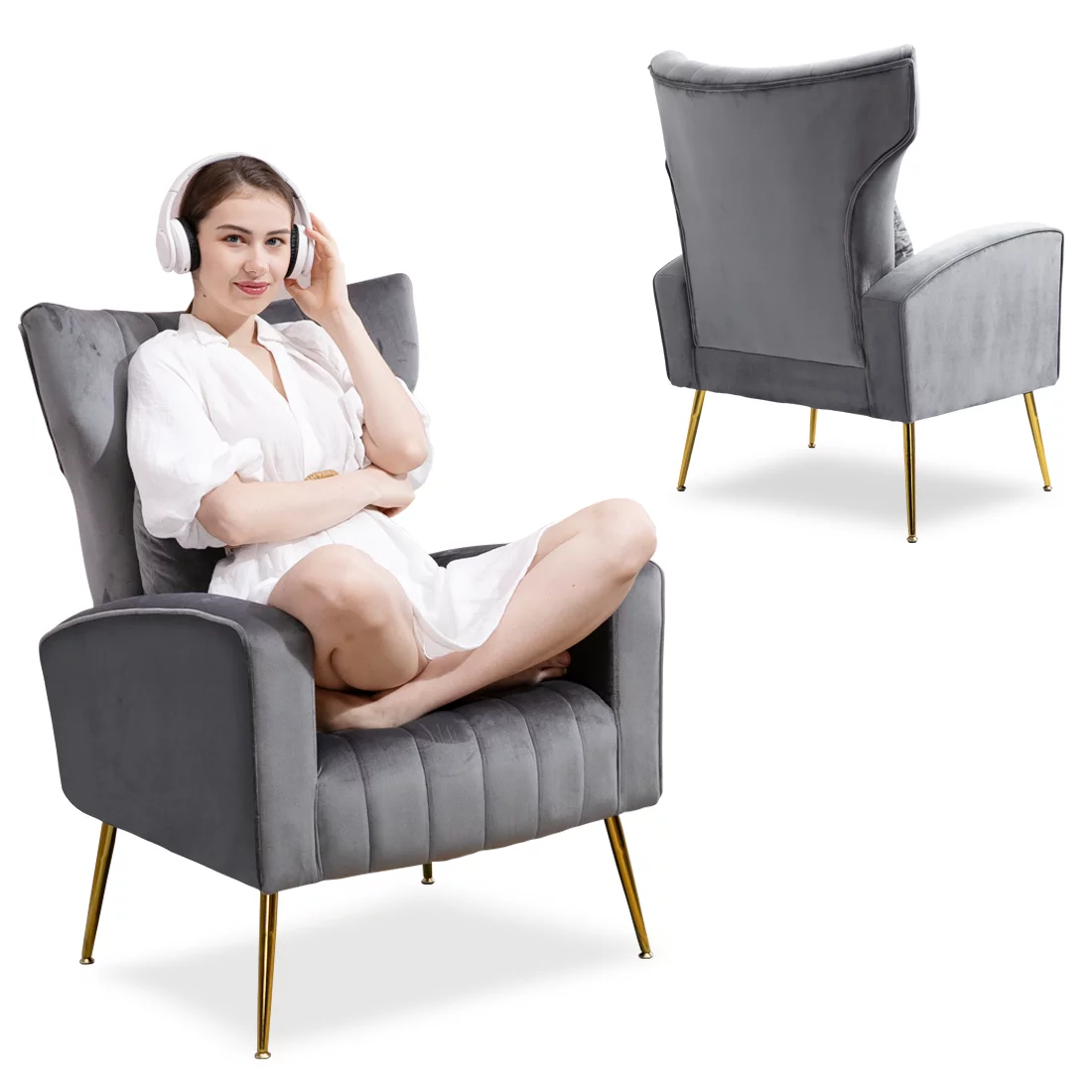 Modern Velvet Armless Accent Chairs,Upholstered Button Single Sofa Set of 2 Wooden Legs Home Bedroom,Grey