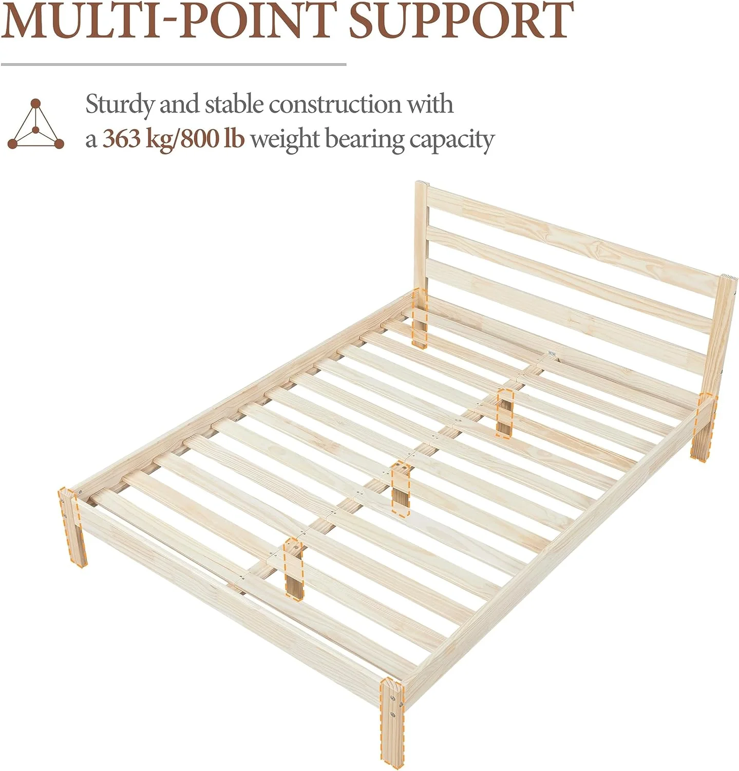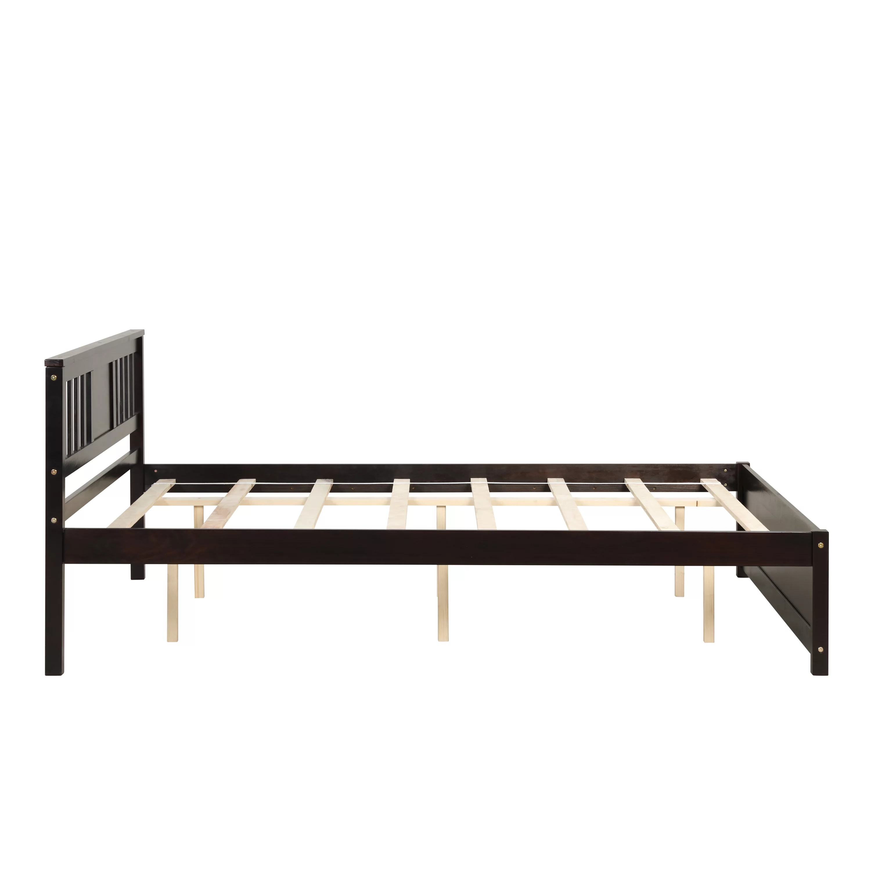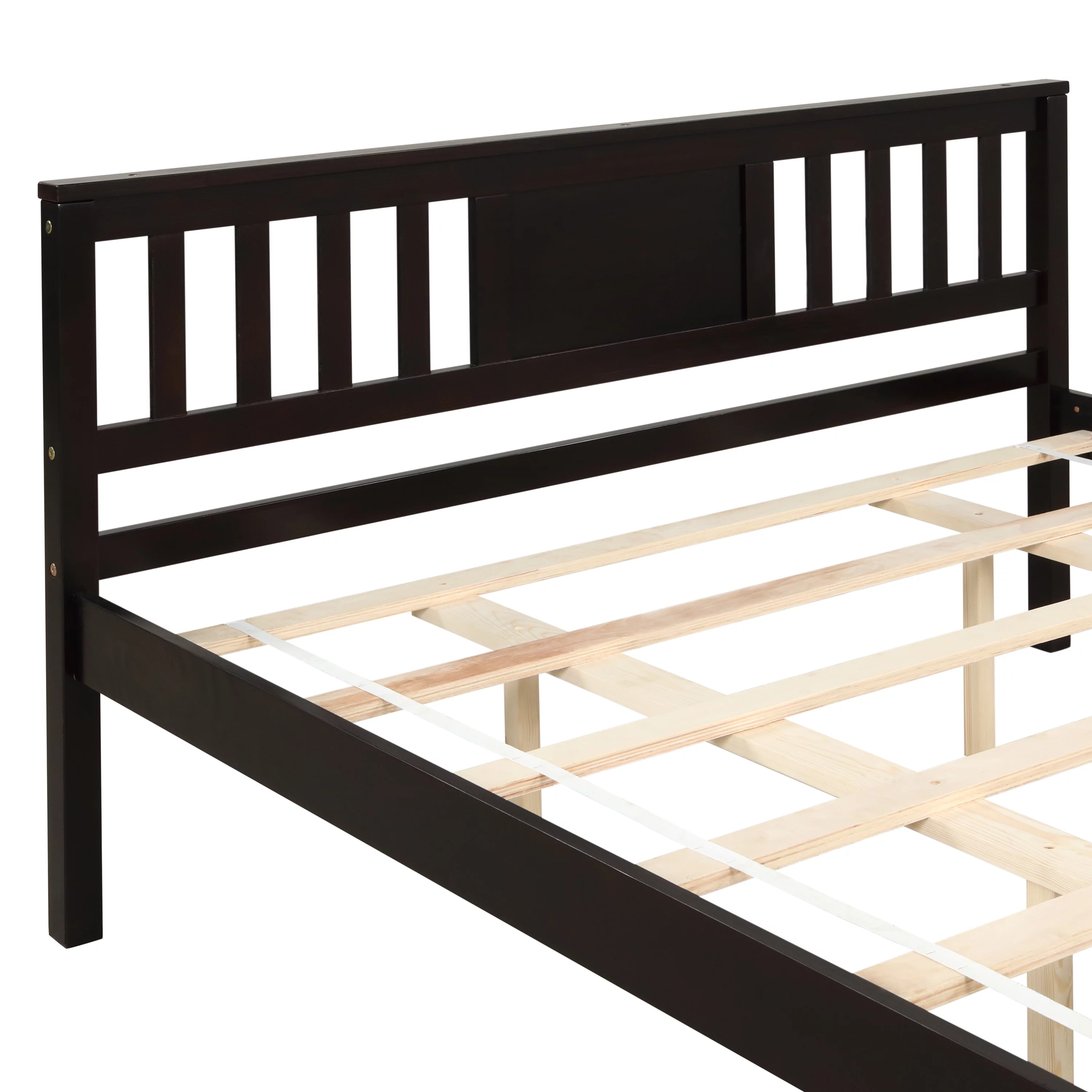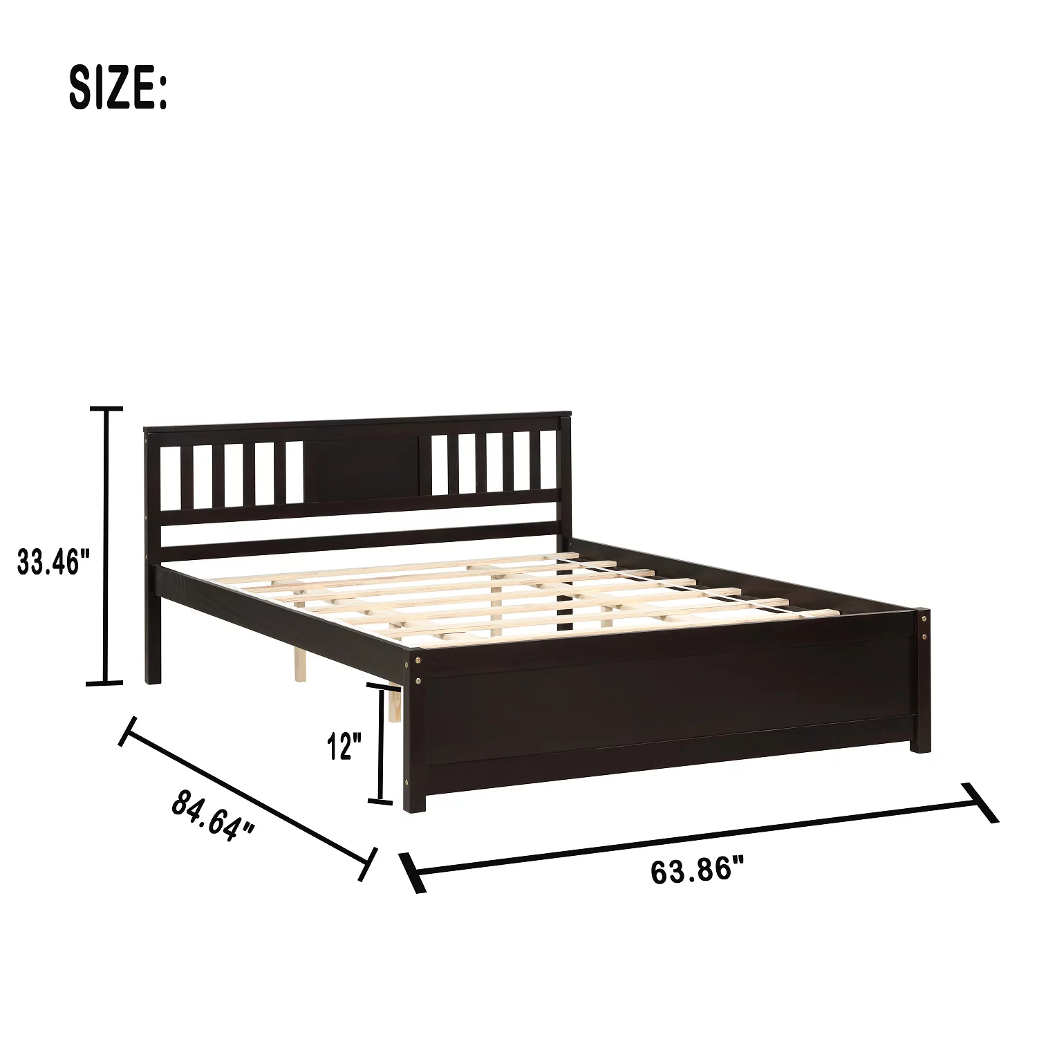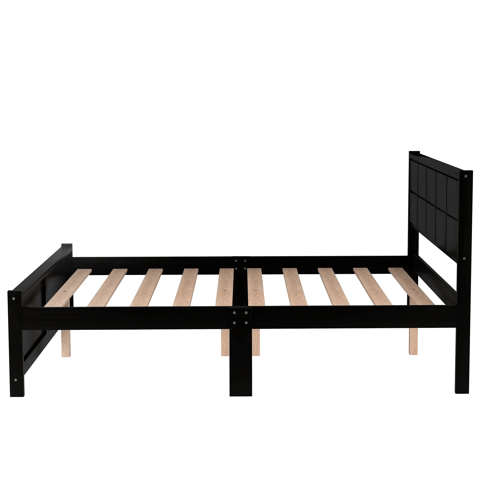 Queen Size Wood Platform Bed Frame with Headboard and Strong Wooden Slats, No Box Spring Needed, Easy Assembly, Espresso
