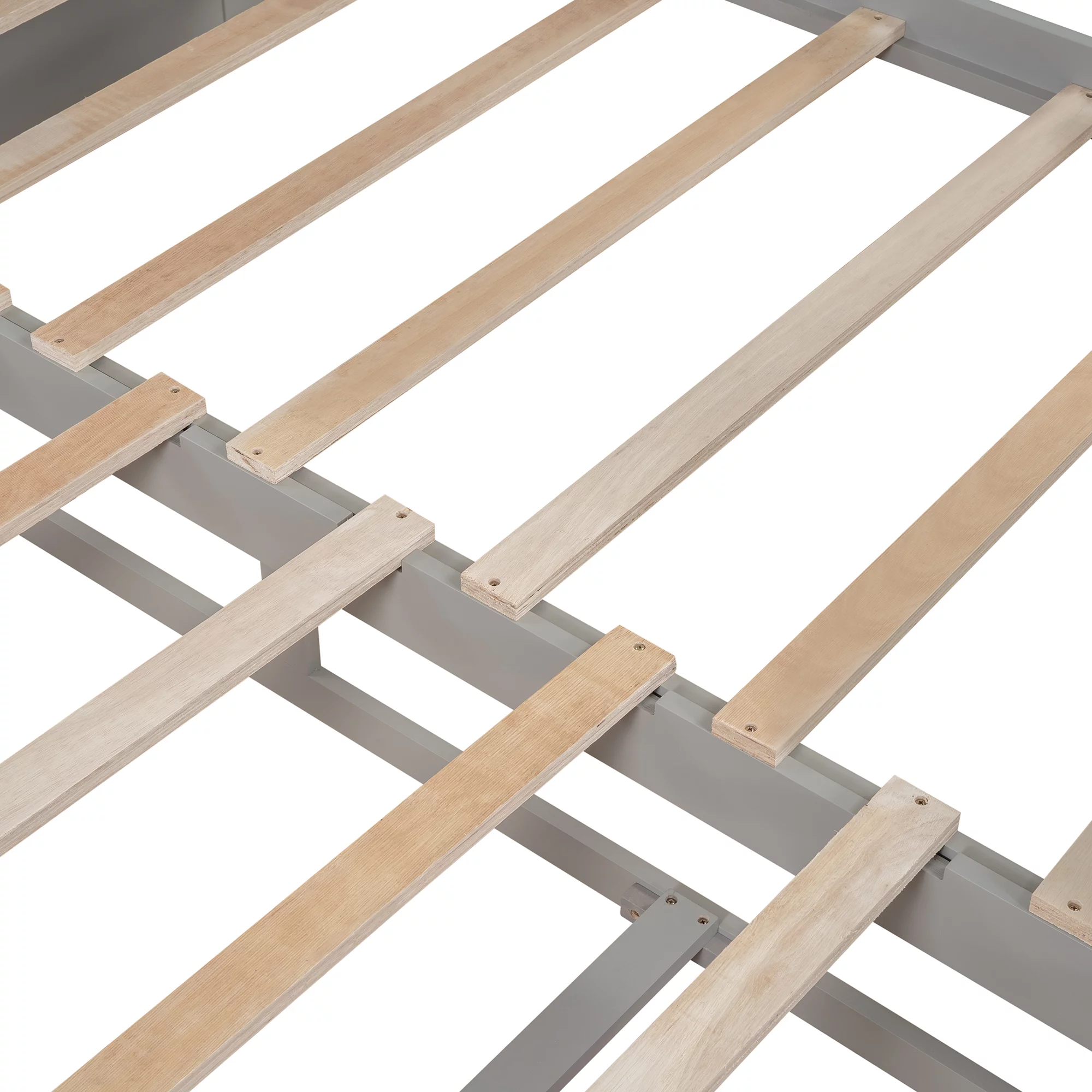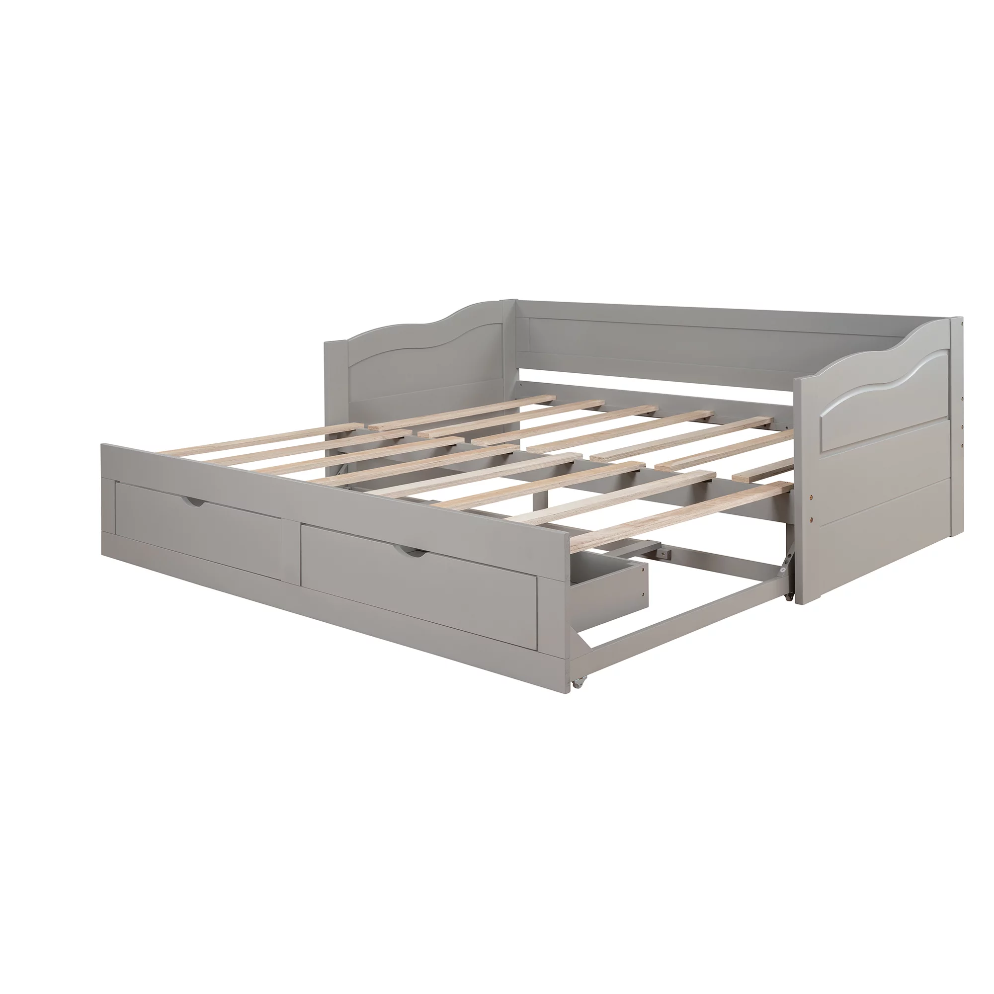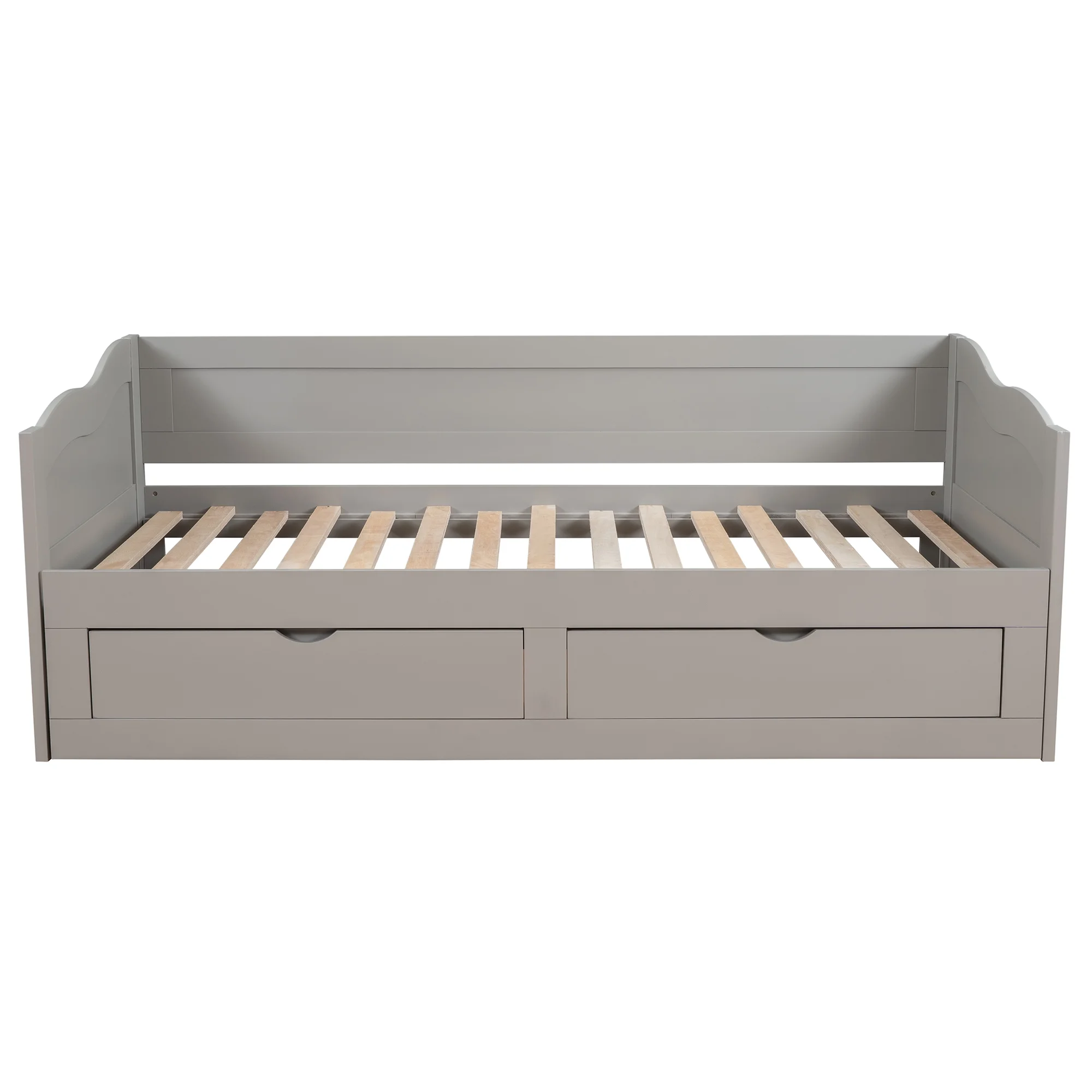 Gray Wooden Daybed with Trundle Bed, Extendable Design and Two Storage Drawers
