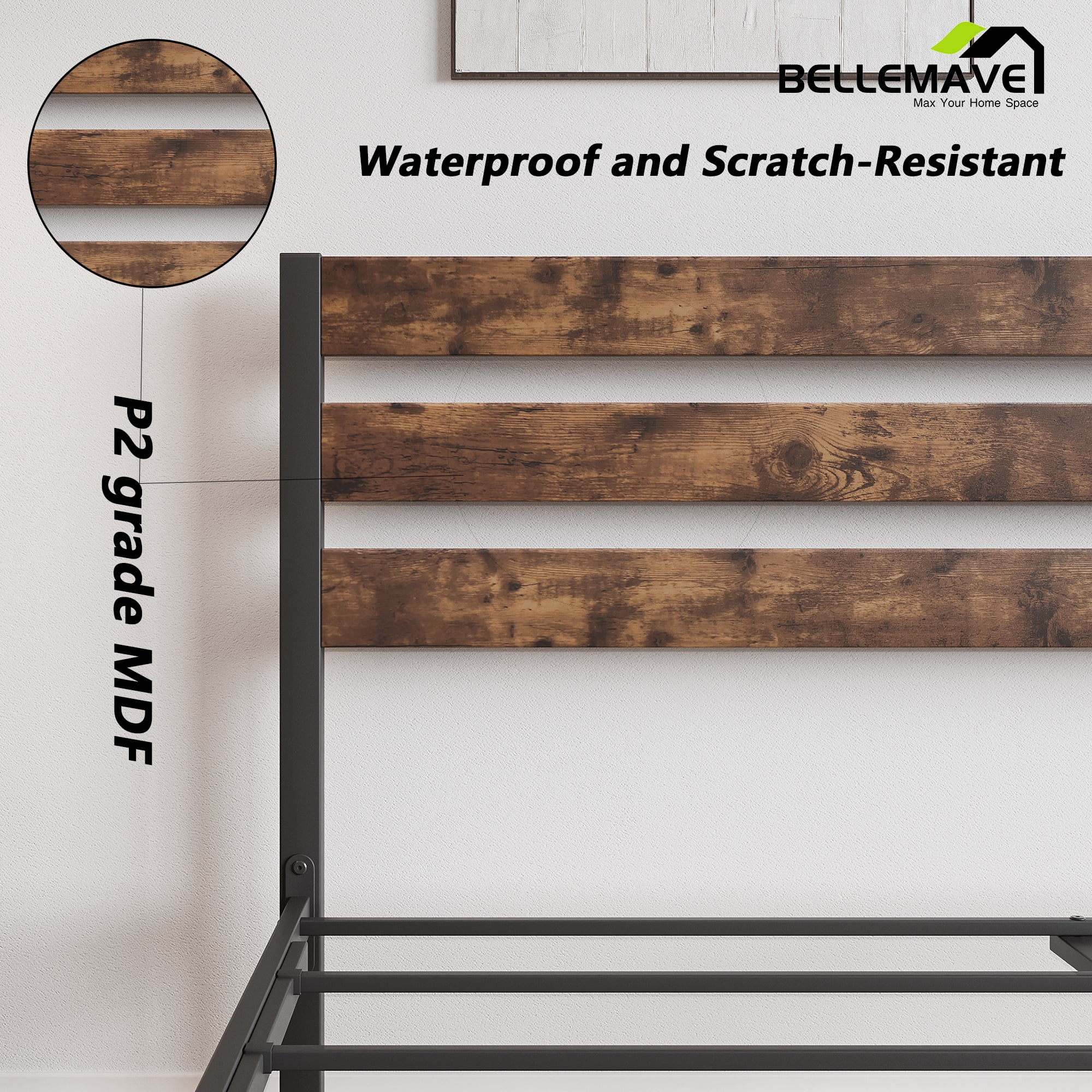 Queen Bed Frames, Wood Platform Bed with Headboard and Slat Support for Boys, Girls, No Box Spring Needed, Espresso