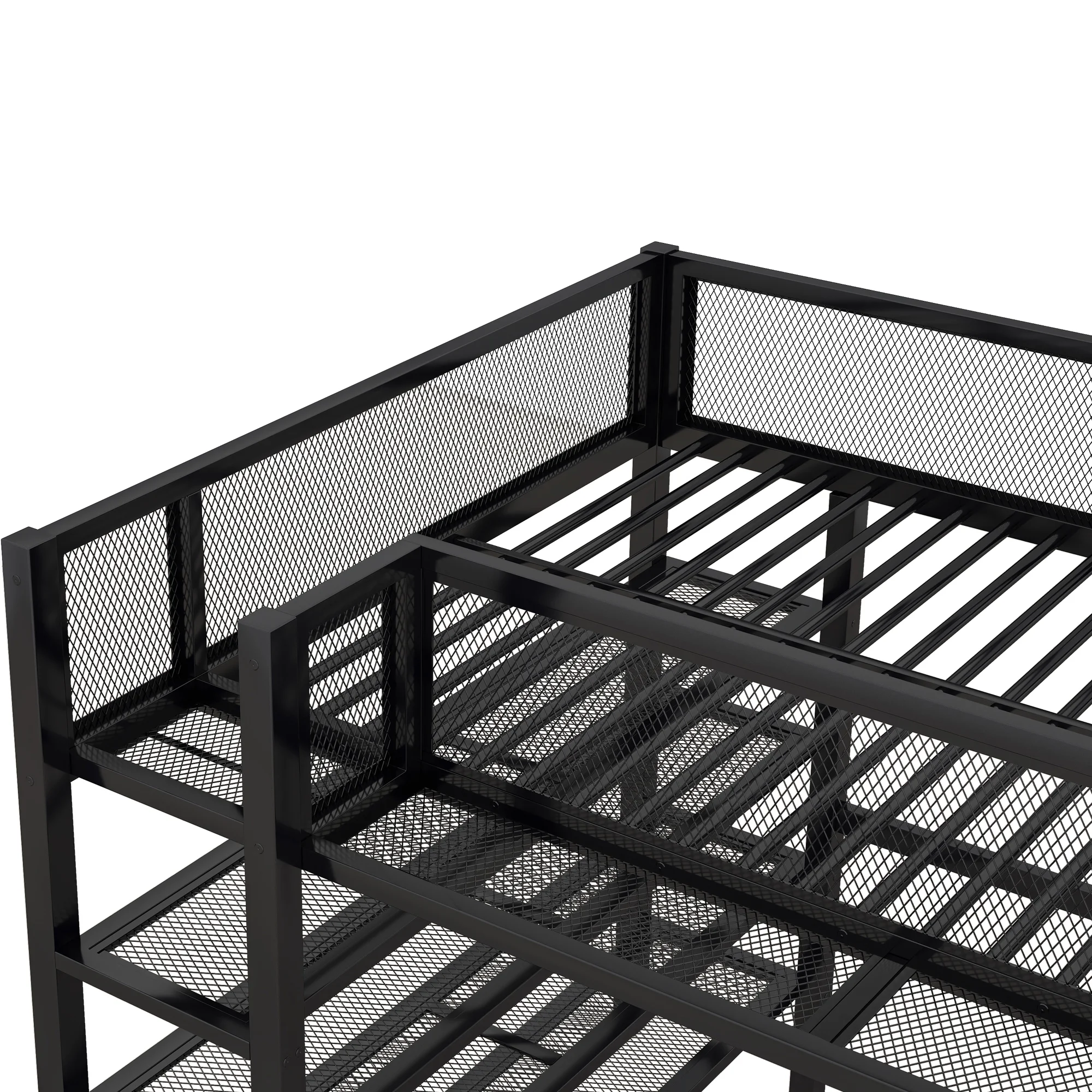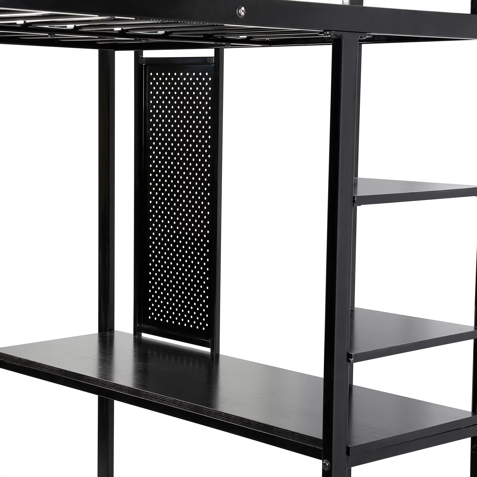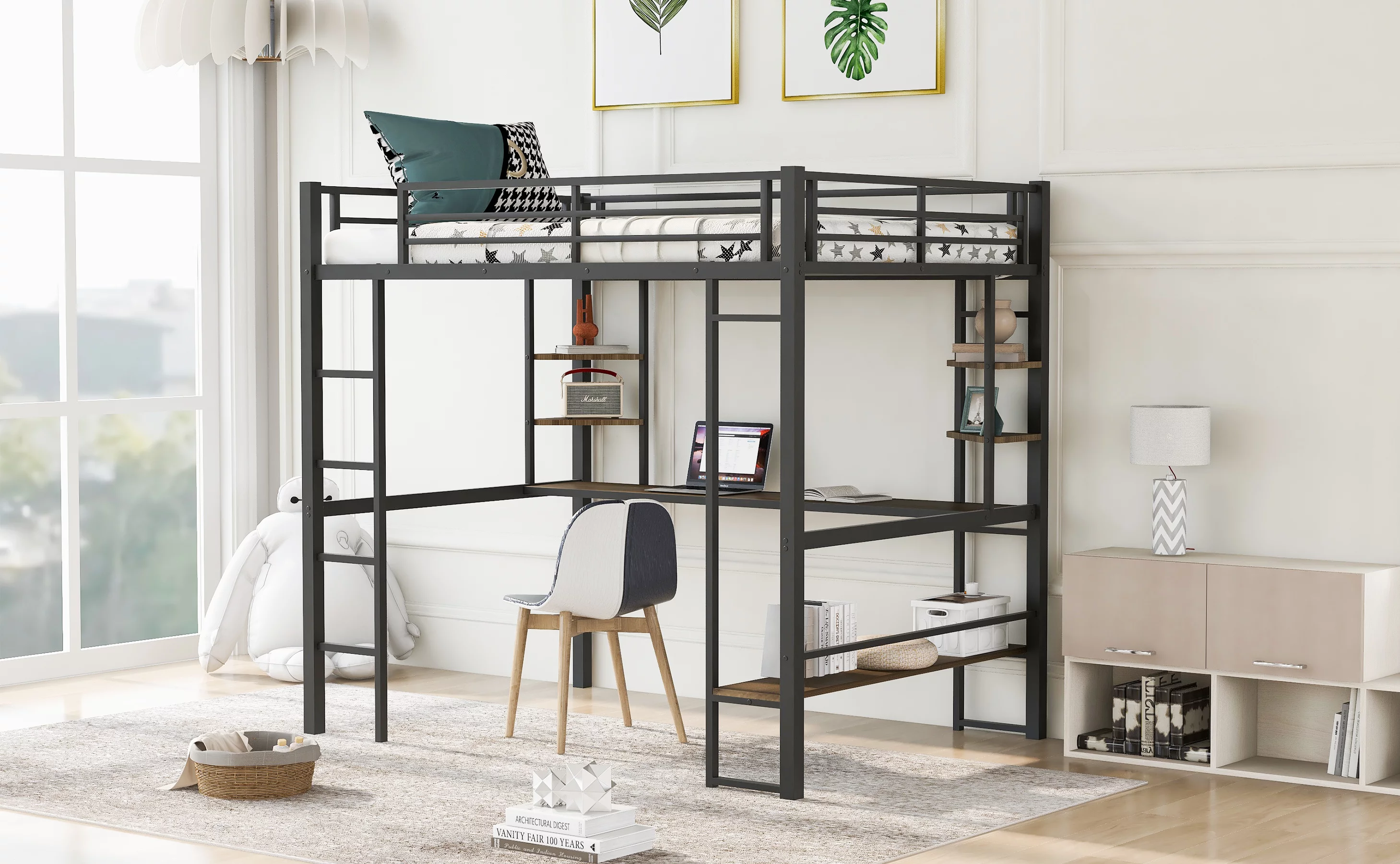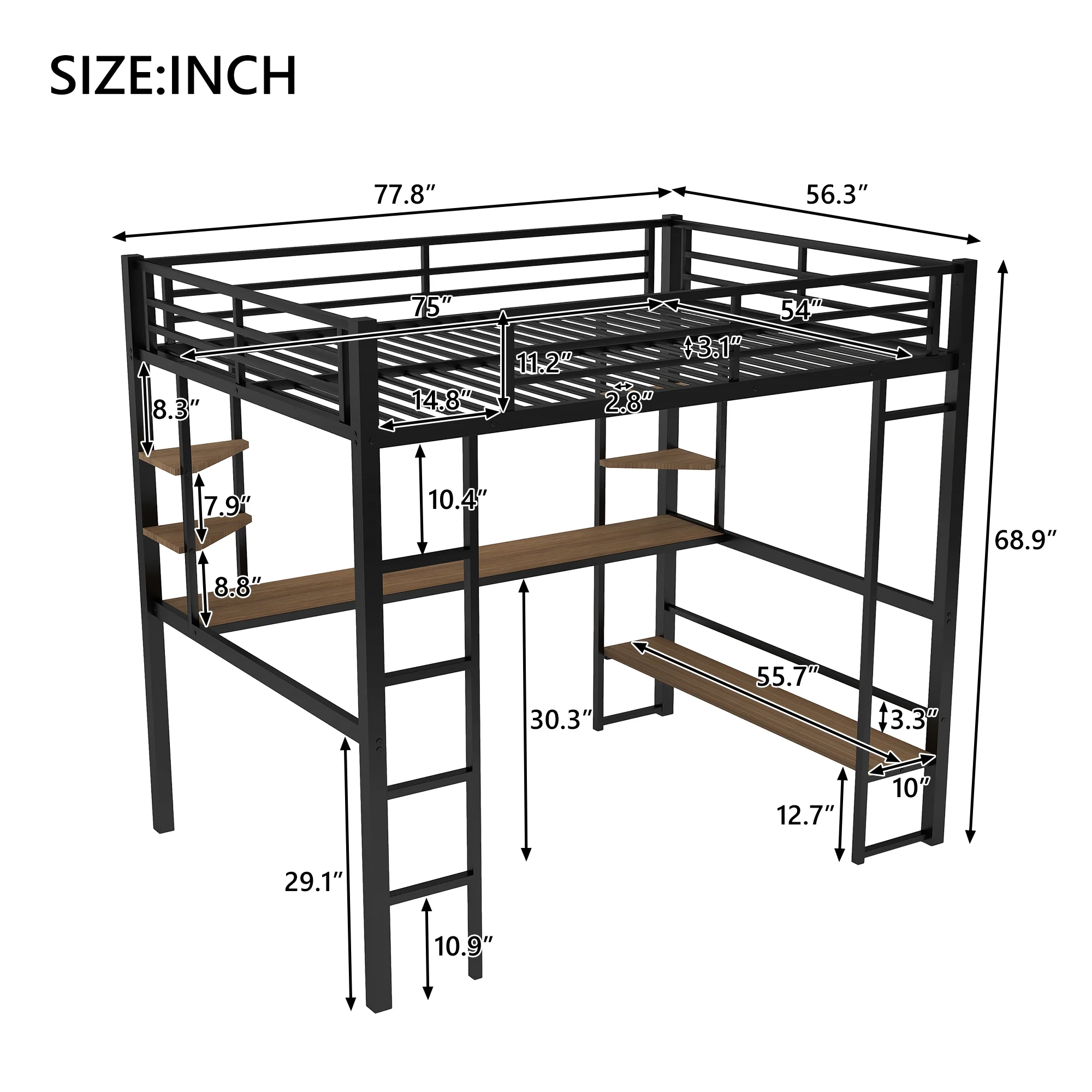 CRO Decor Full Size Loft Metal&MDF Bed with Long Desk and Shelves (Black)