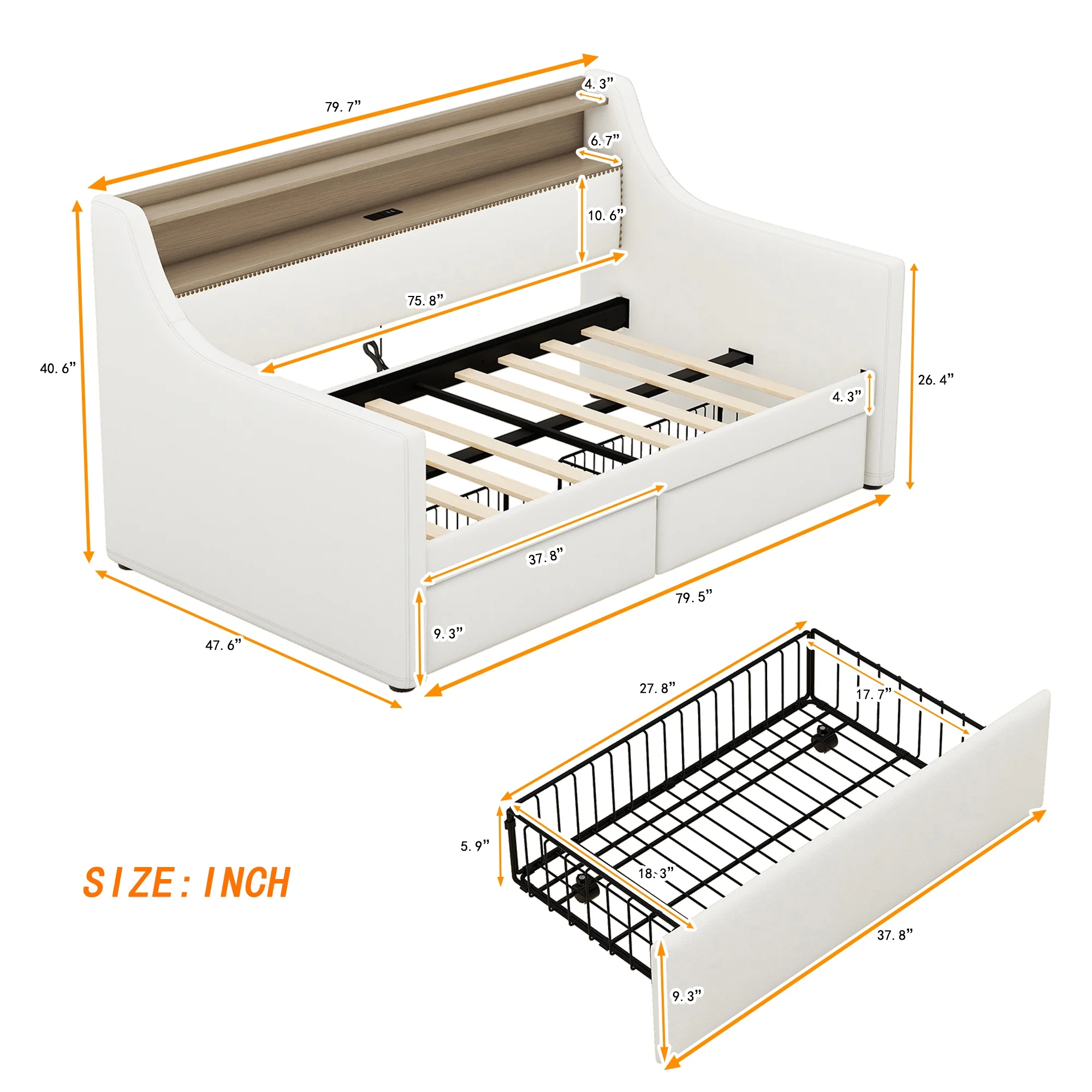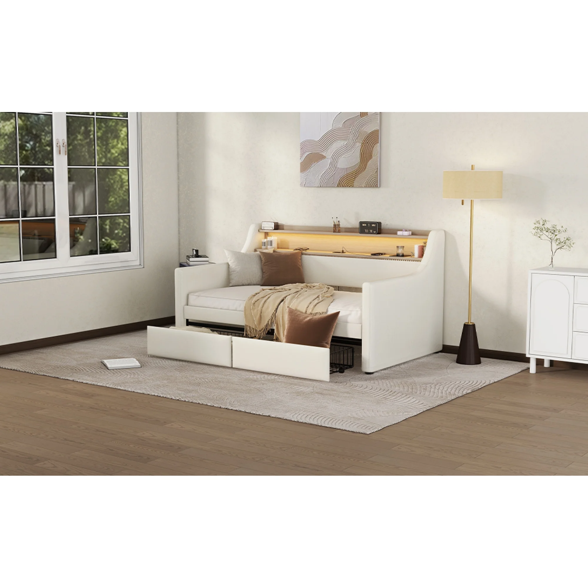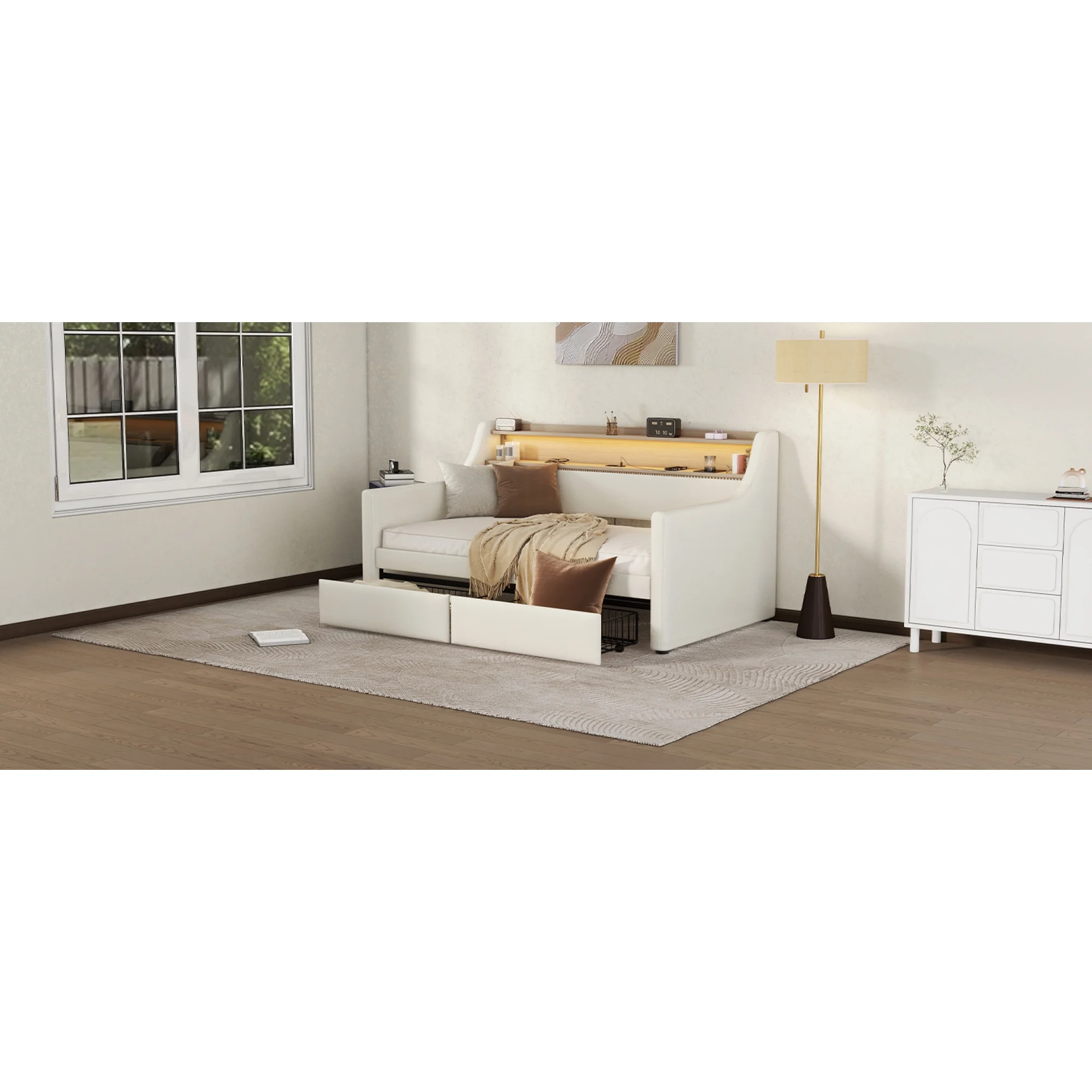 White Twin Daybed with Storage Drawers, Charging Station & LED Lights - Arriving Dec 14th