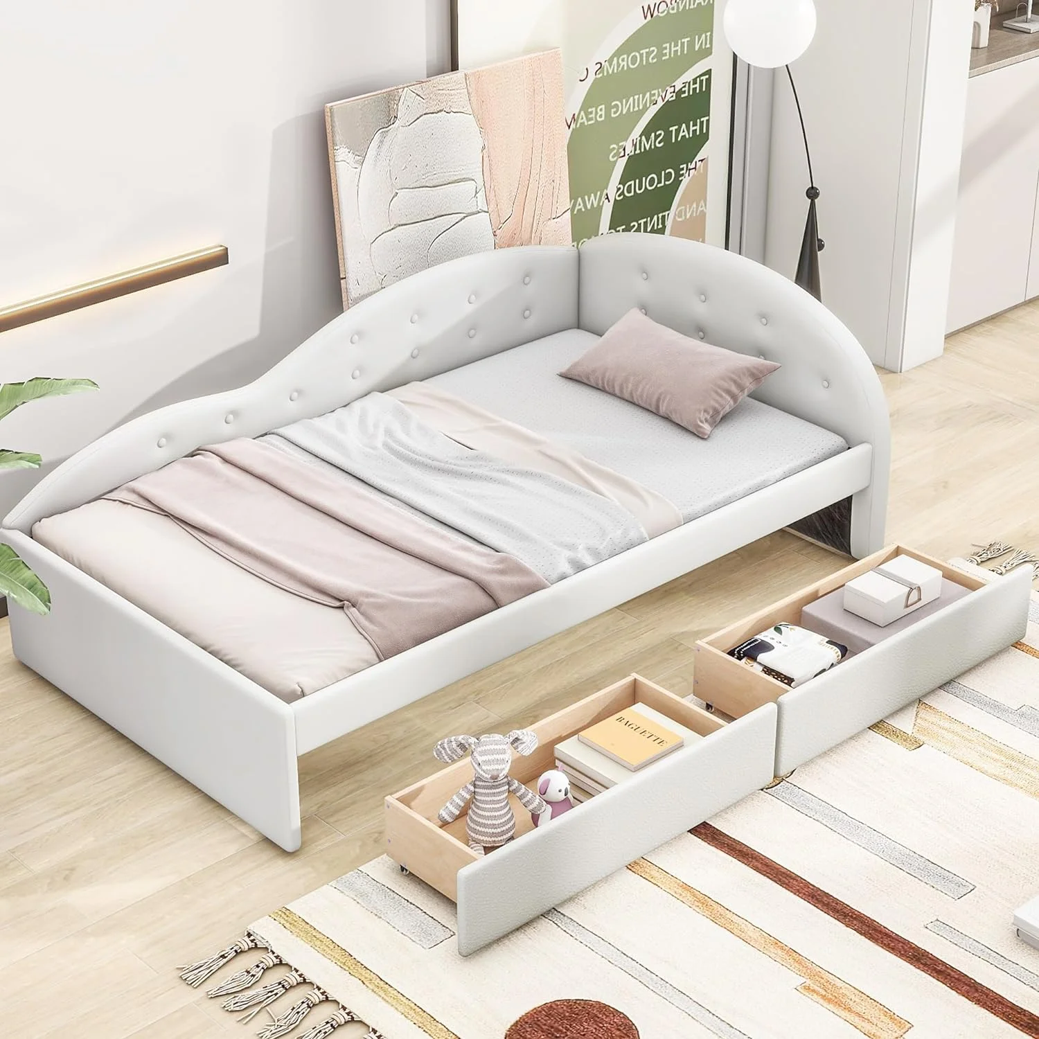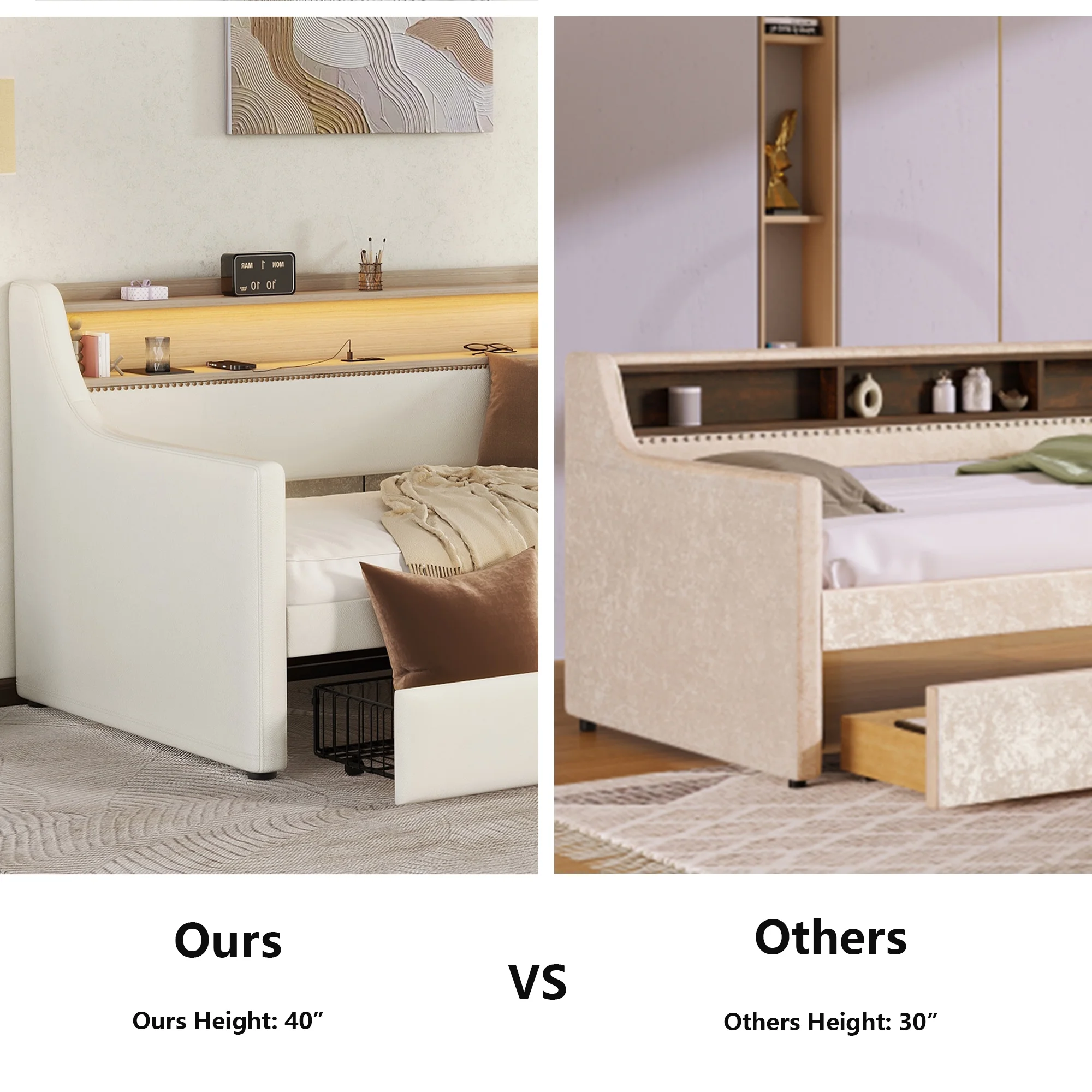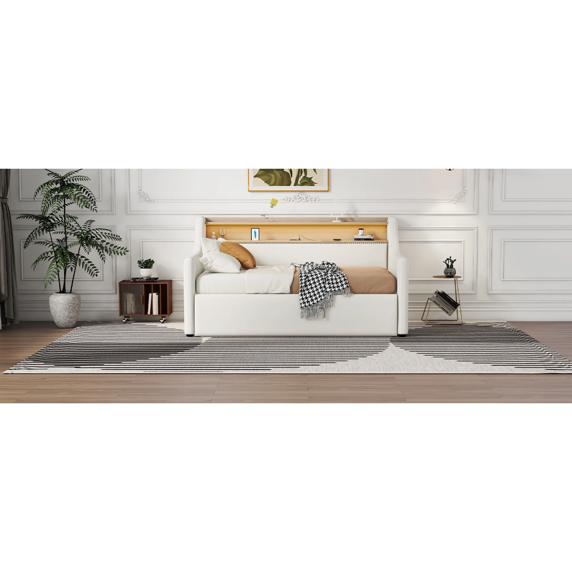 White Twin Daybed with Storage Drawers, Charging Station & LED Lights - Arriving Dec 14th
