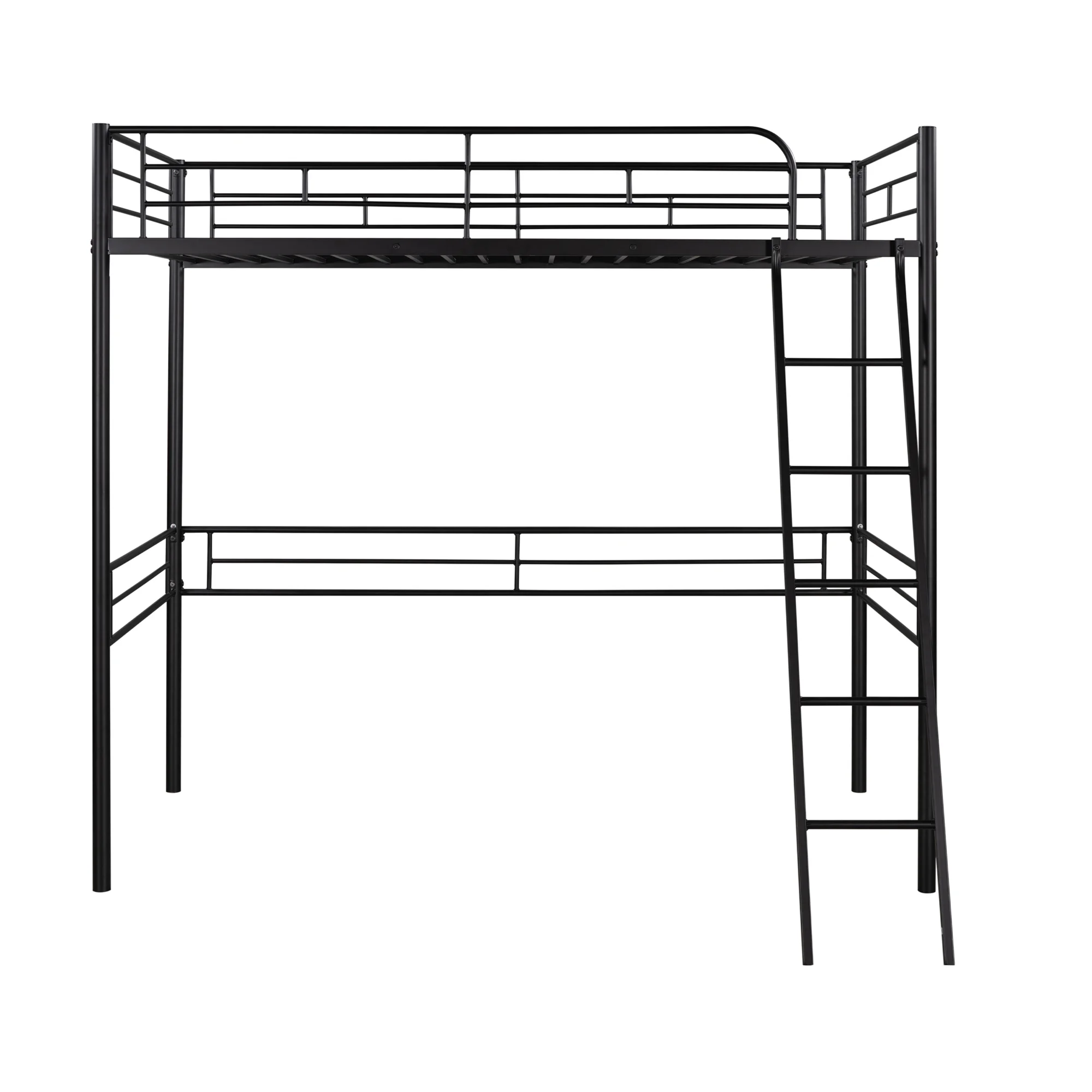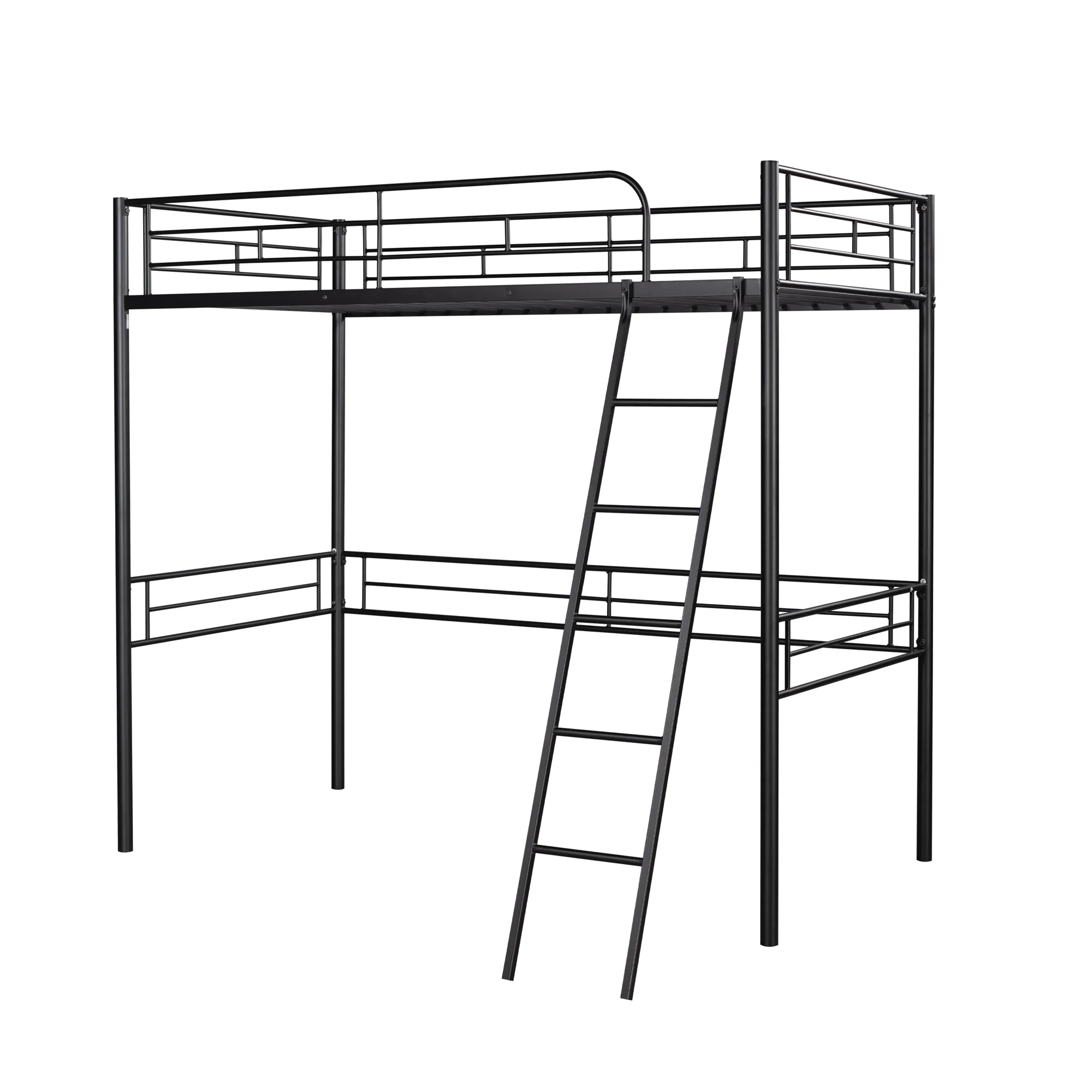 Gewnee Metal Full Size Loft Bed with Ladder and Guardrail for Kids, Black