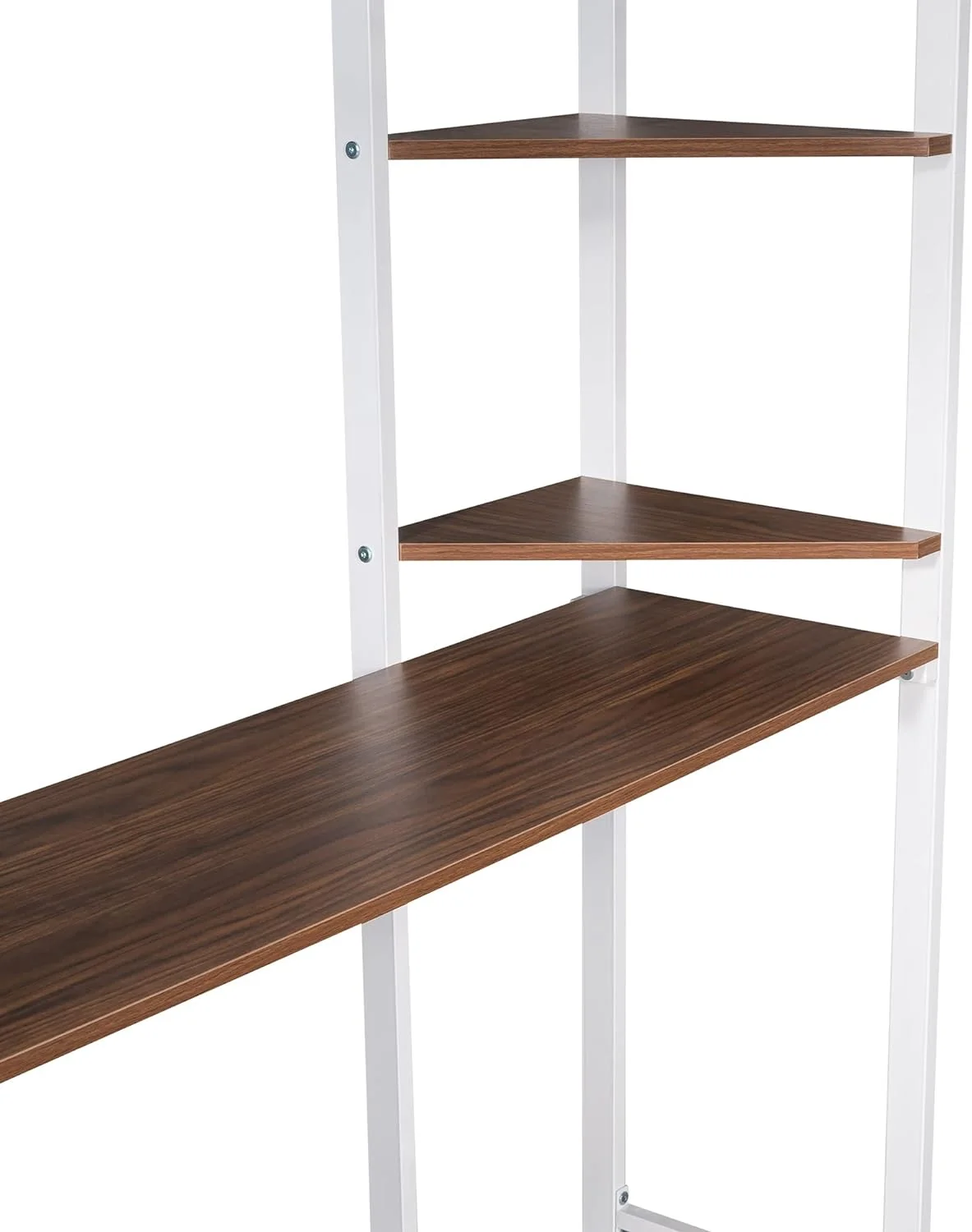 CoSoTower Full Size Metal Loft Bed With 2 Shelves And One Desk, White