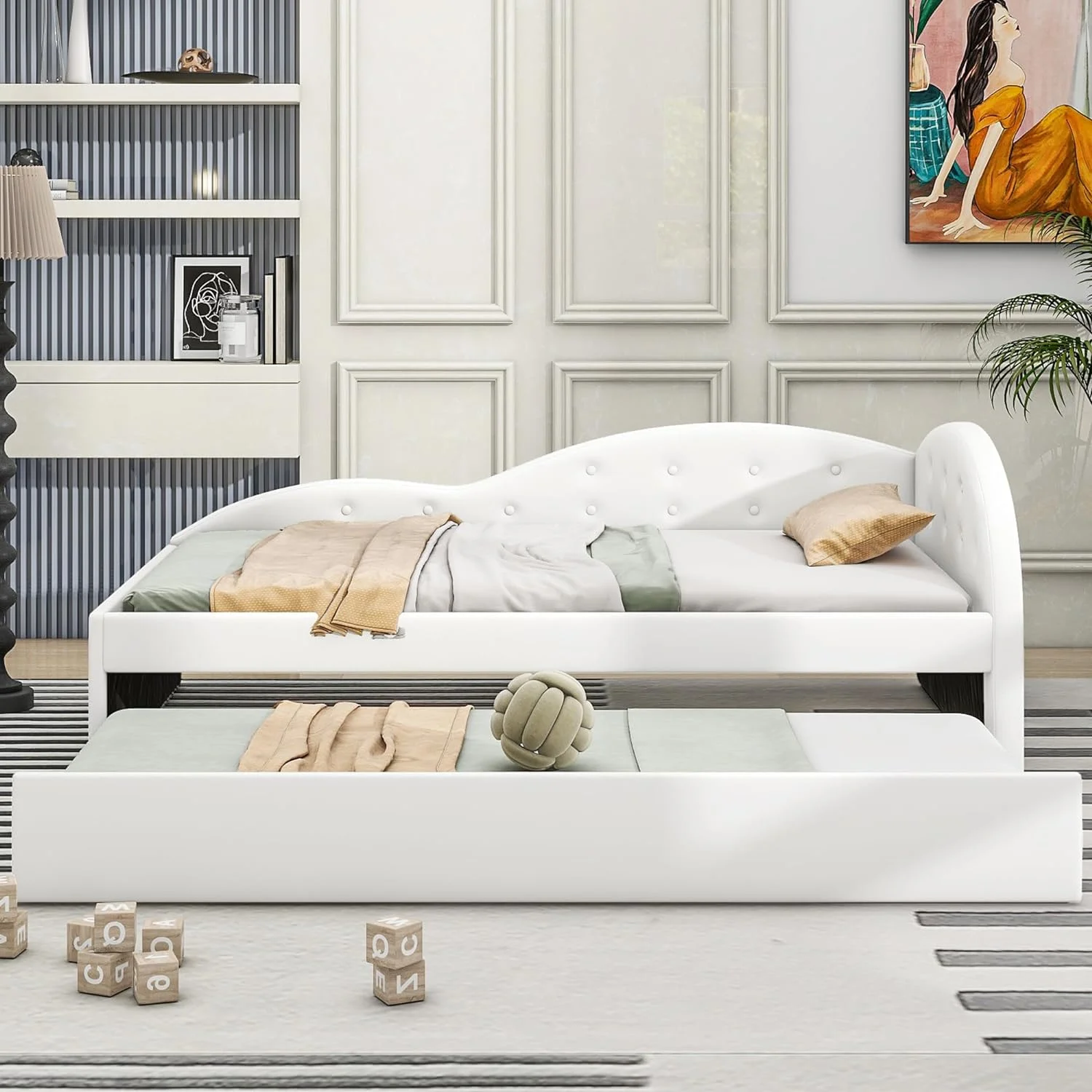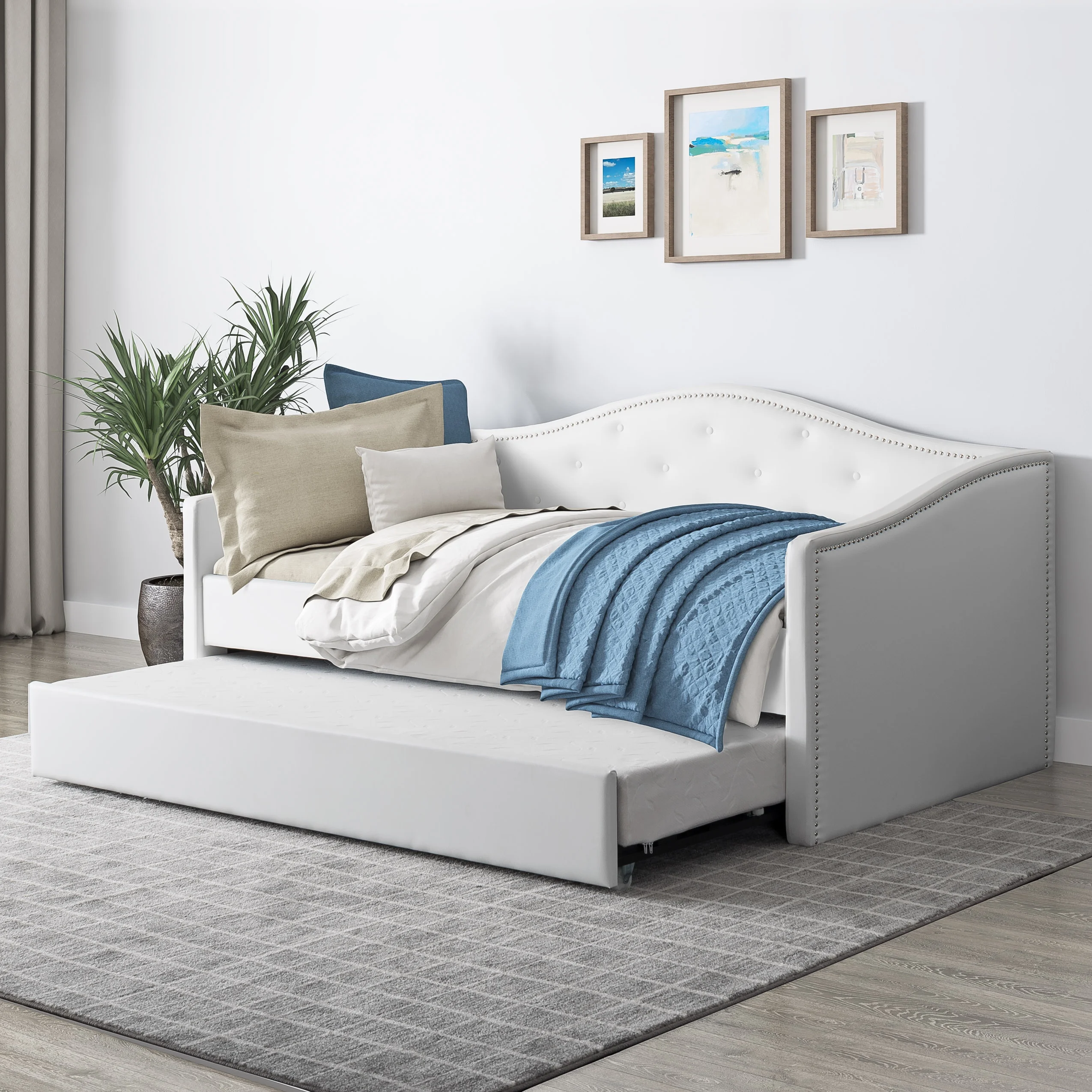CorLiving Fairfield Tufted Leatherette Day Bed with Trundle, Twin/Single