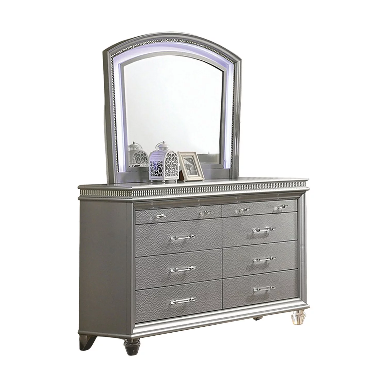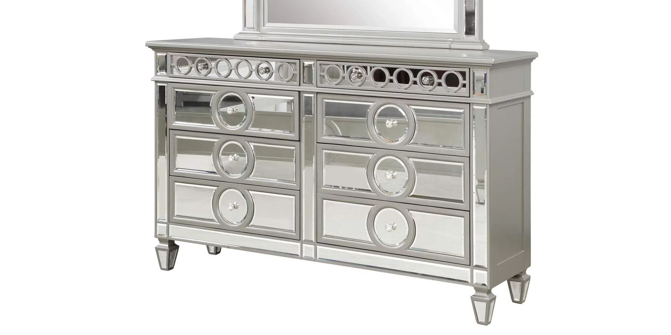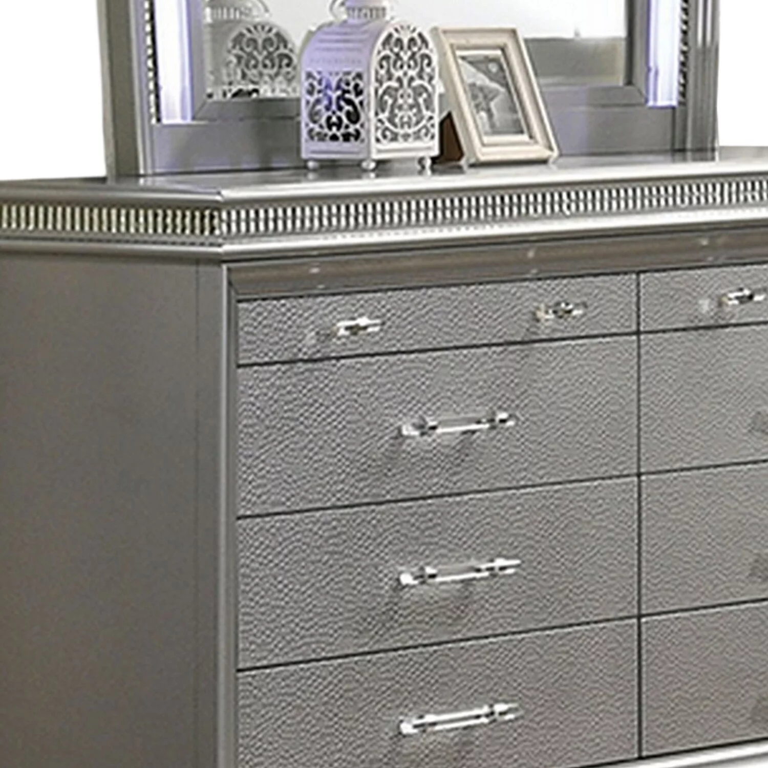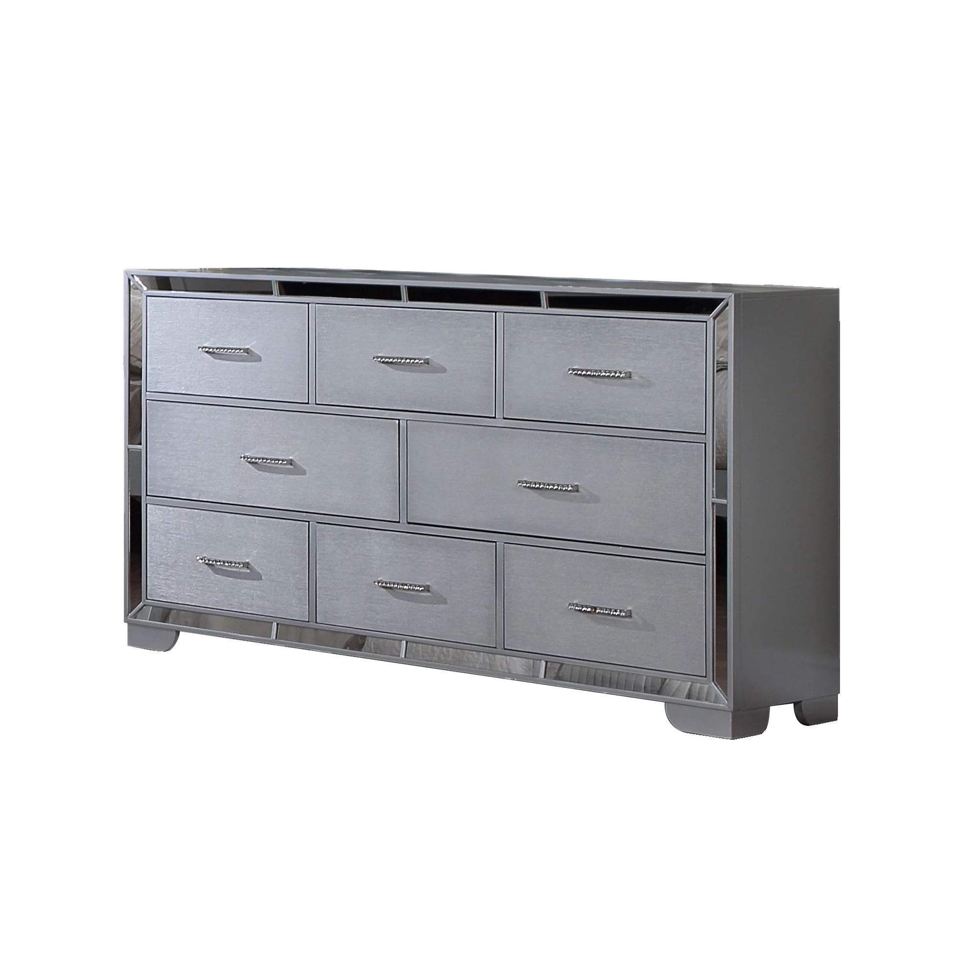 Glam Silver & Mirror Accents 8 Drawers Dresser McFerran B1688 Contemporary