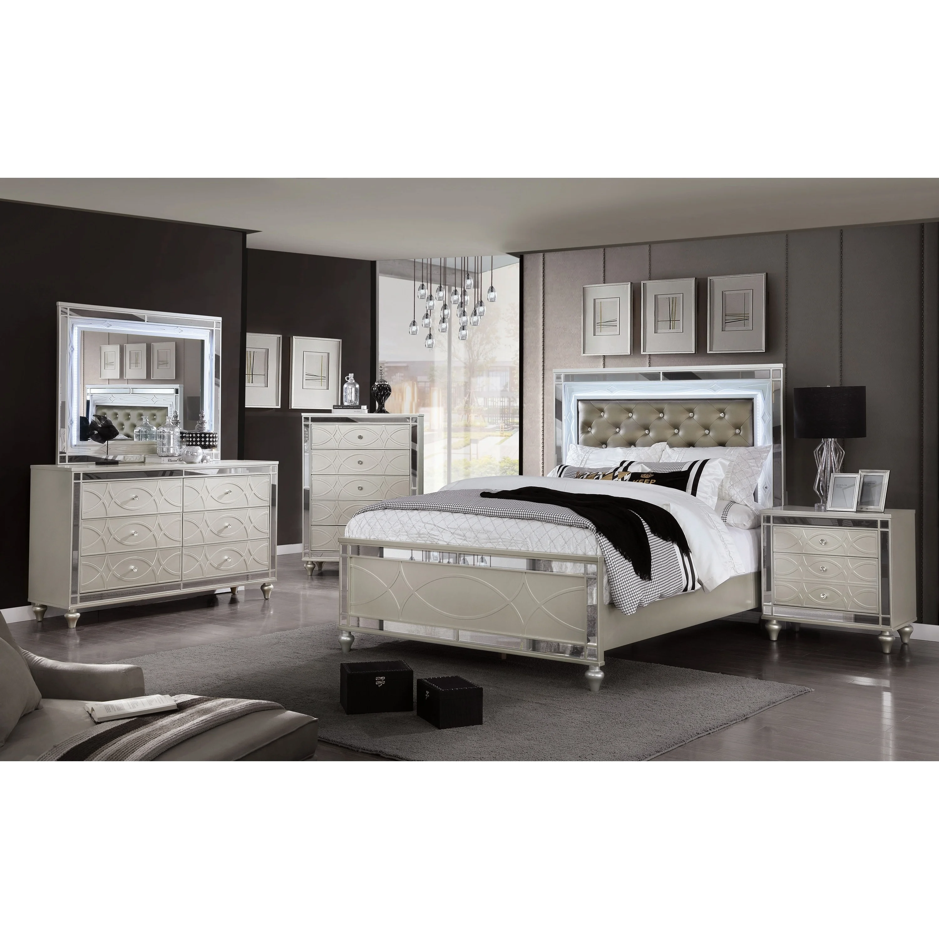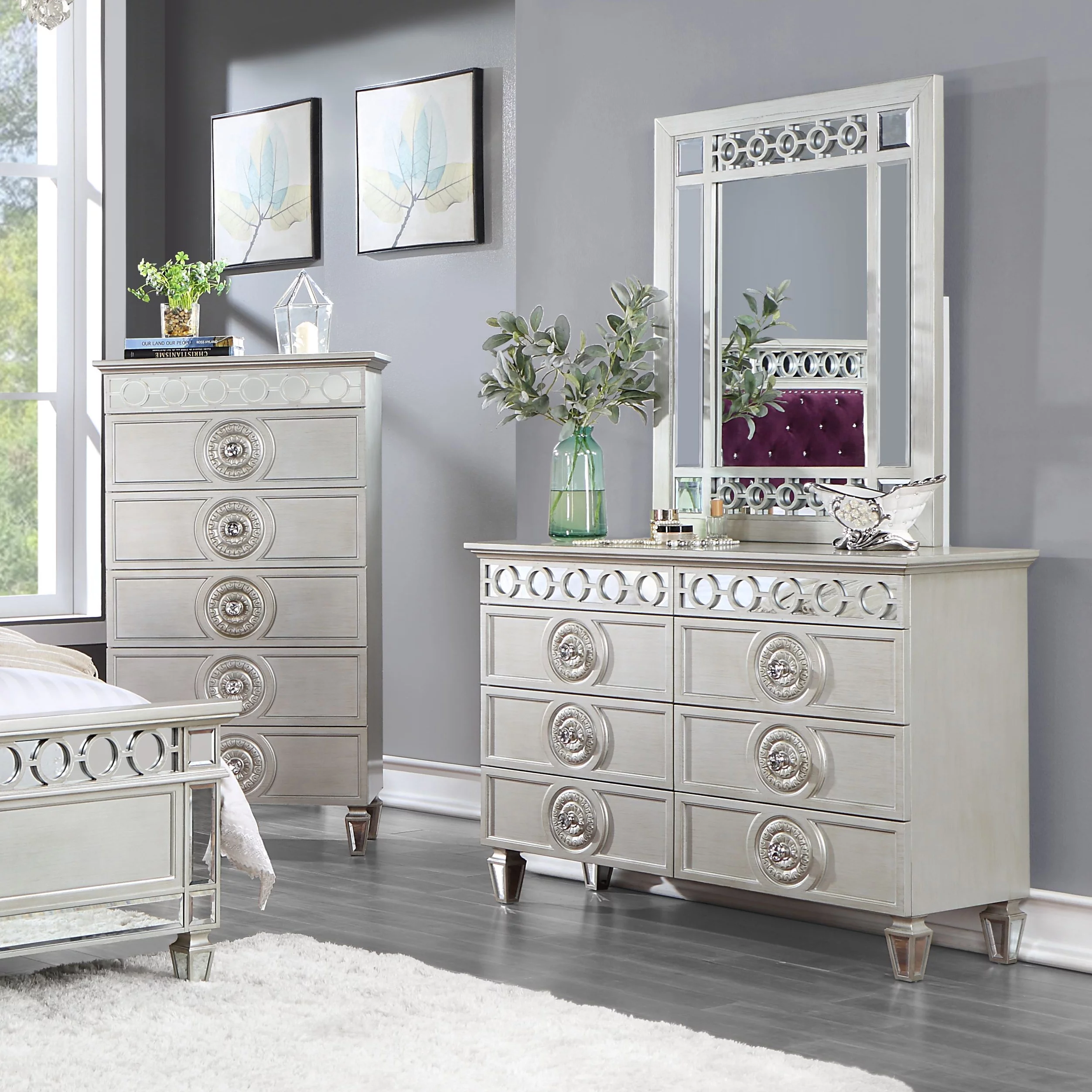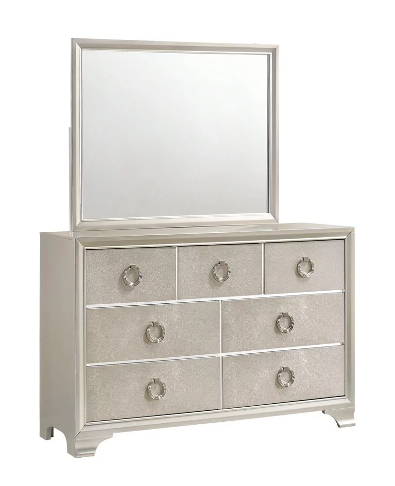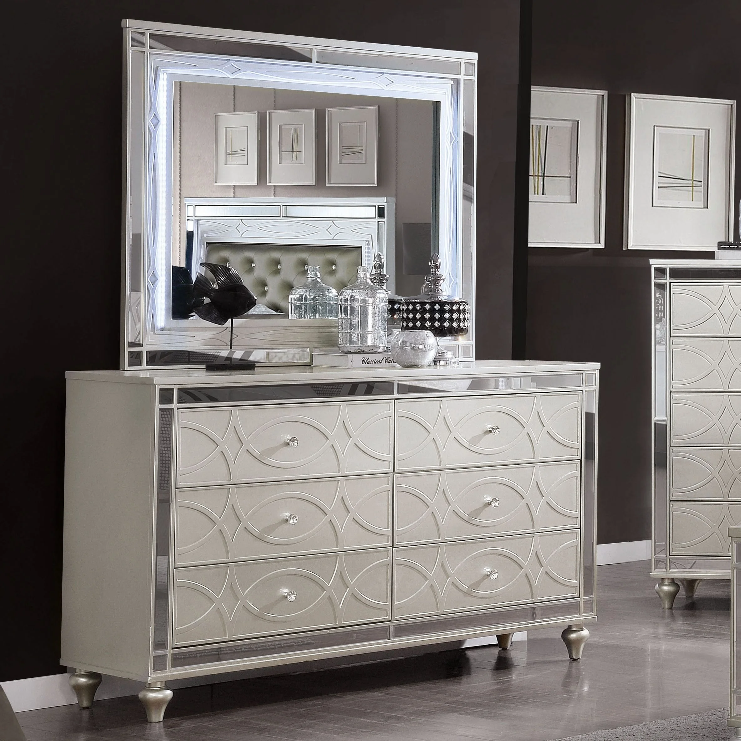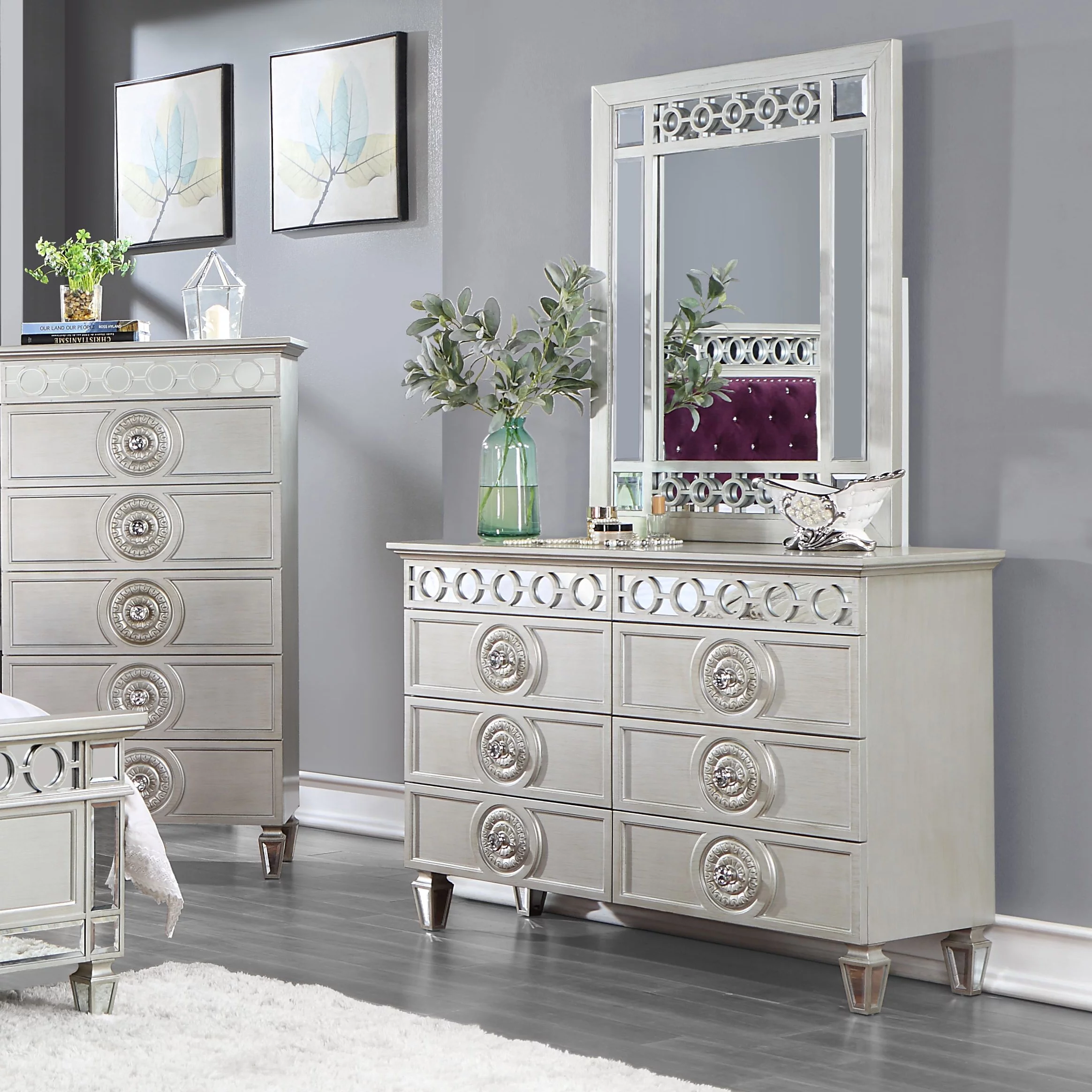 Glam Silver & Mirror Accents 8 Drawers Dresser McFerran B1688 Contemporary