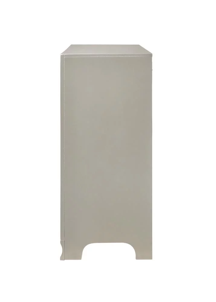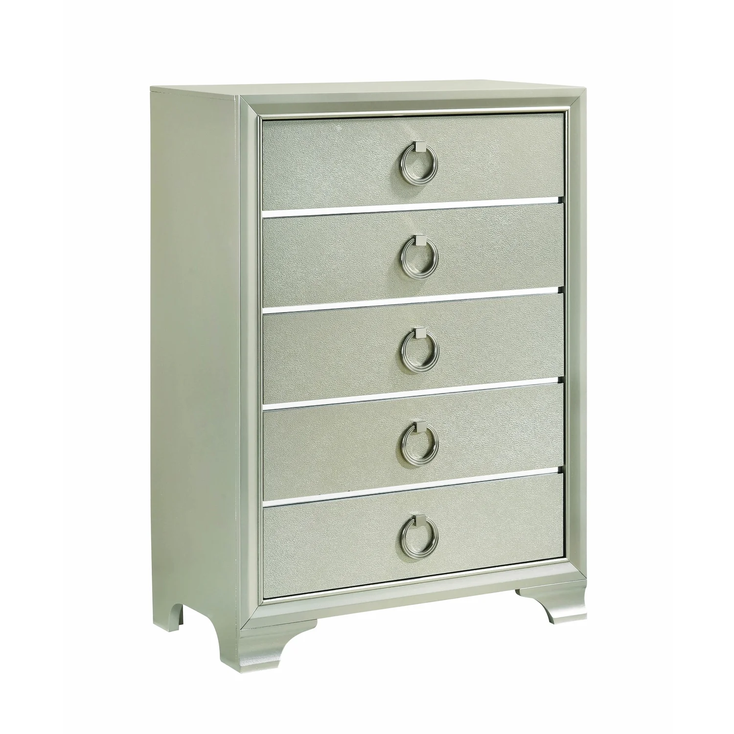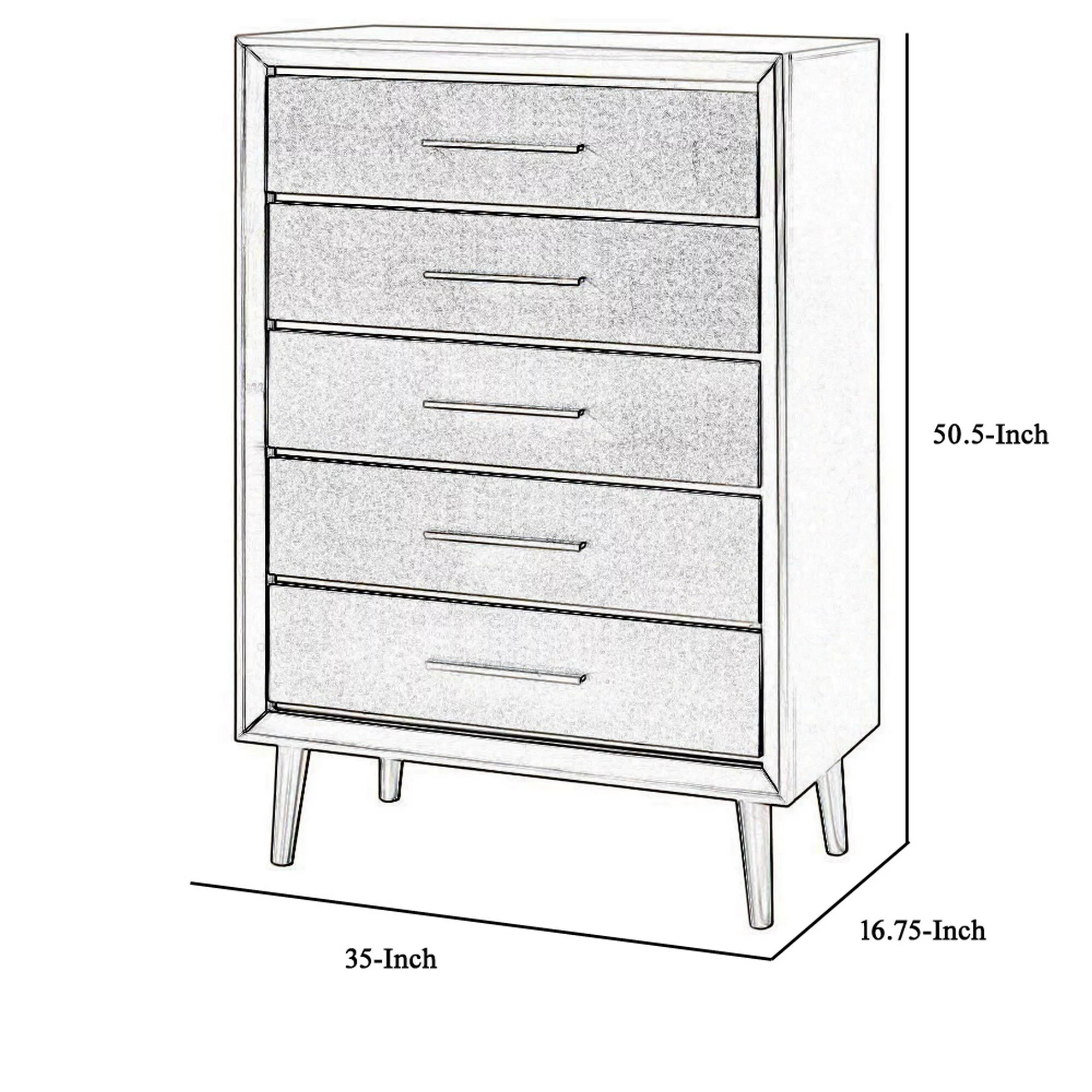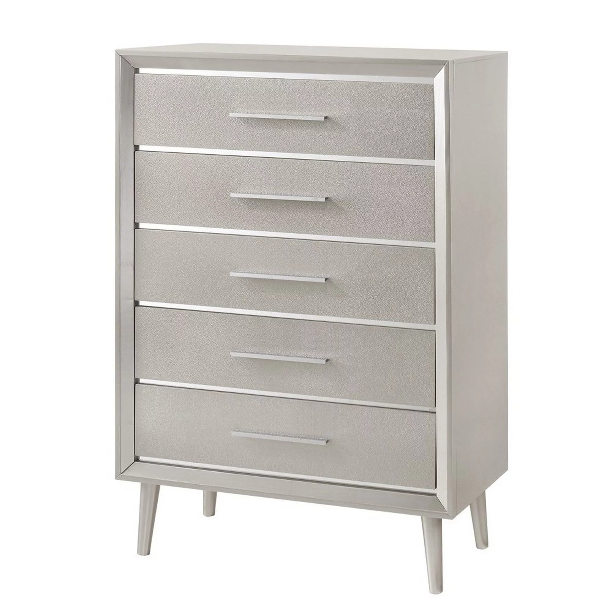 5 Drawer Contemporary Chest with Bar Handles and Splayed Legs, Silver