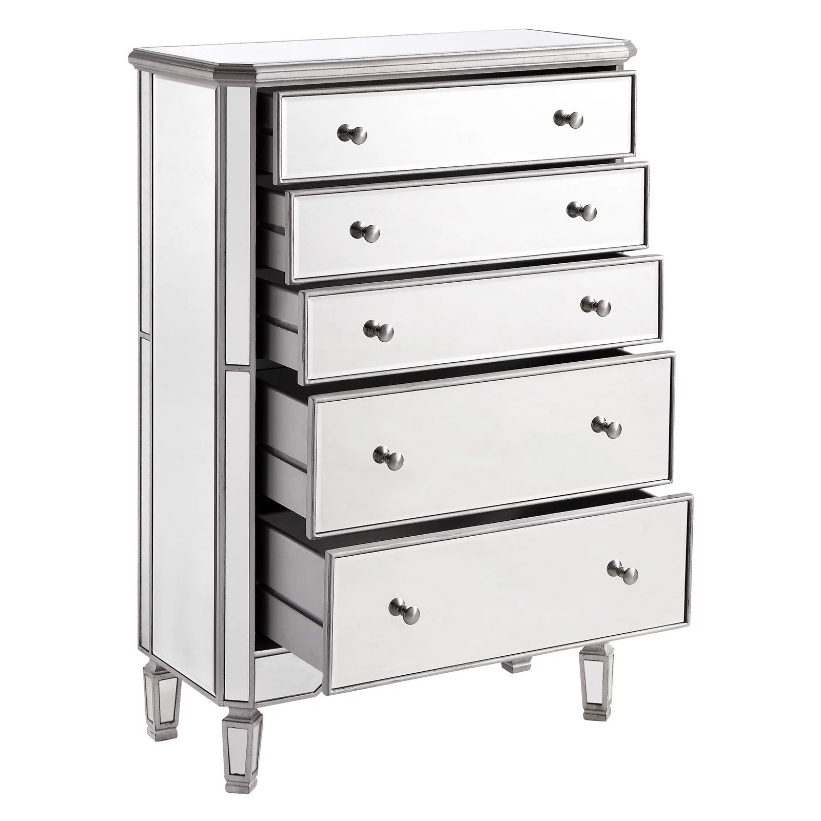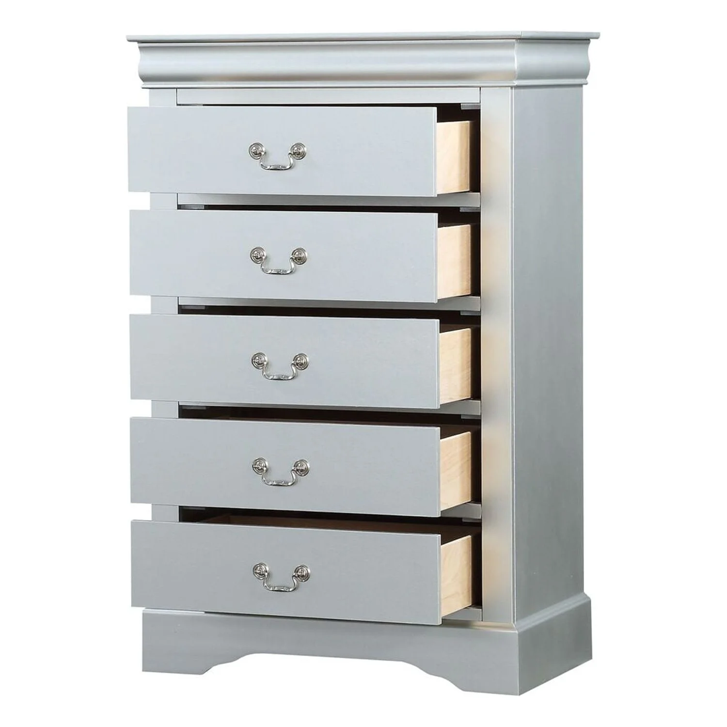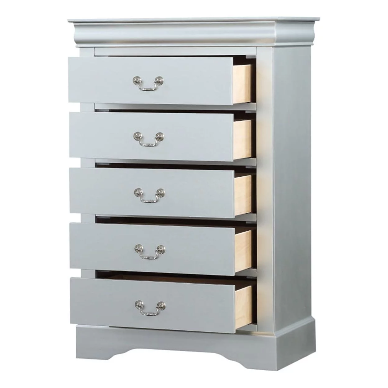 5 Drawer Contemporary Chest with Bar Handles and Splayed Legs, Silver