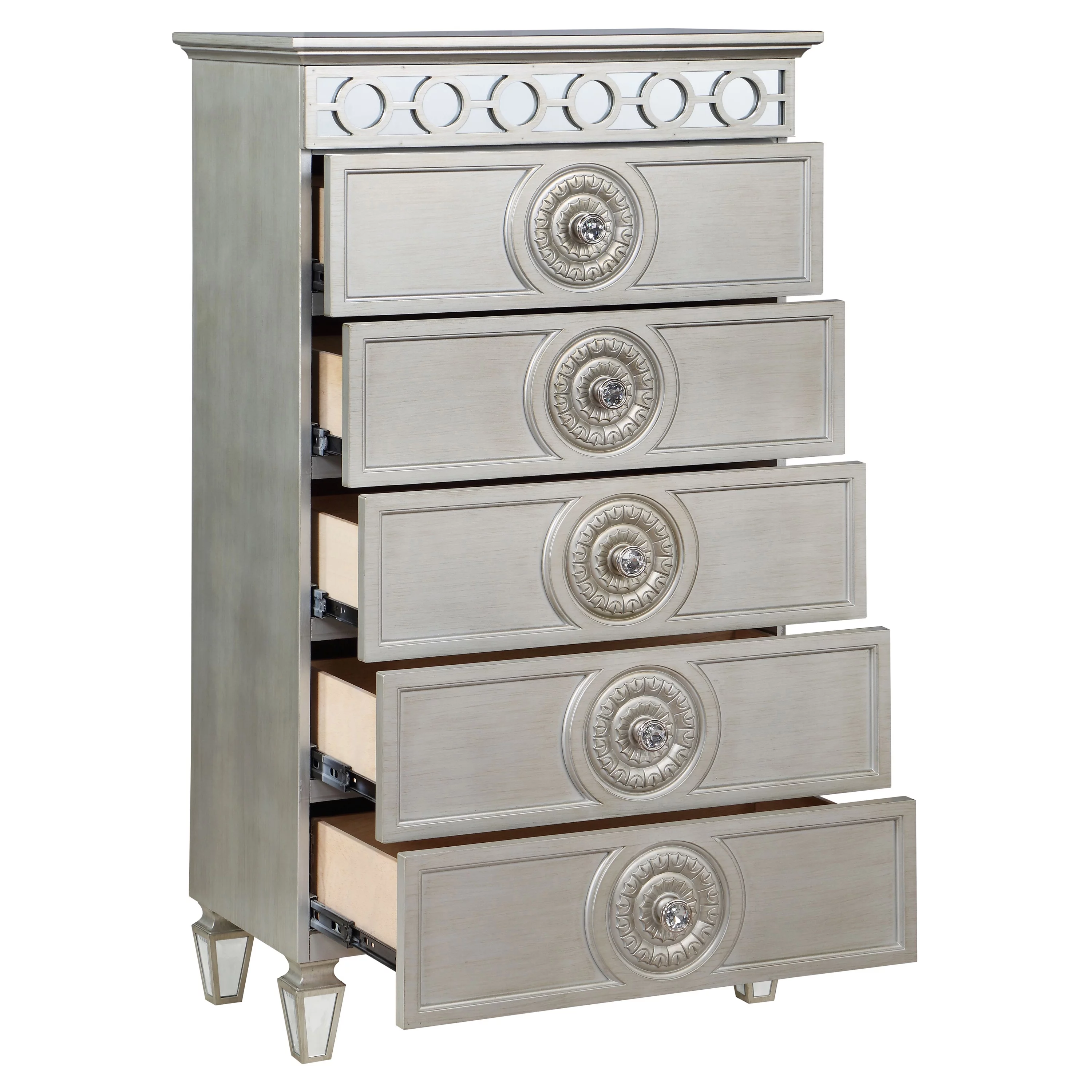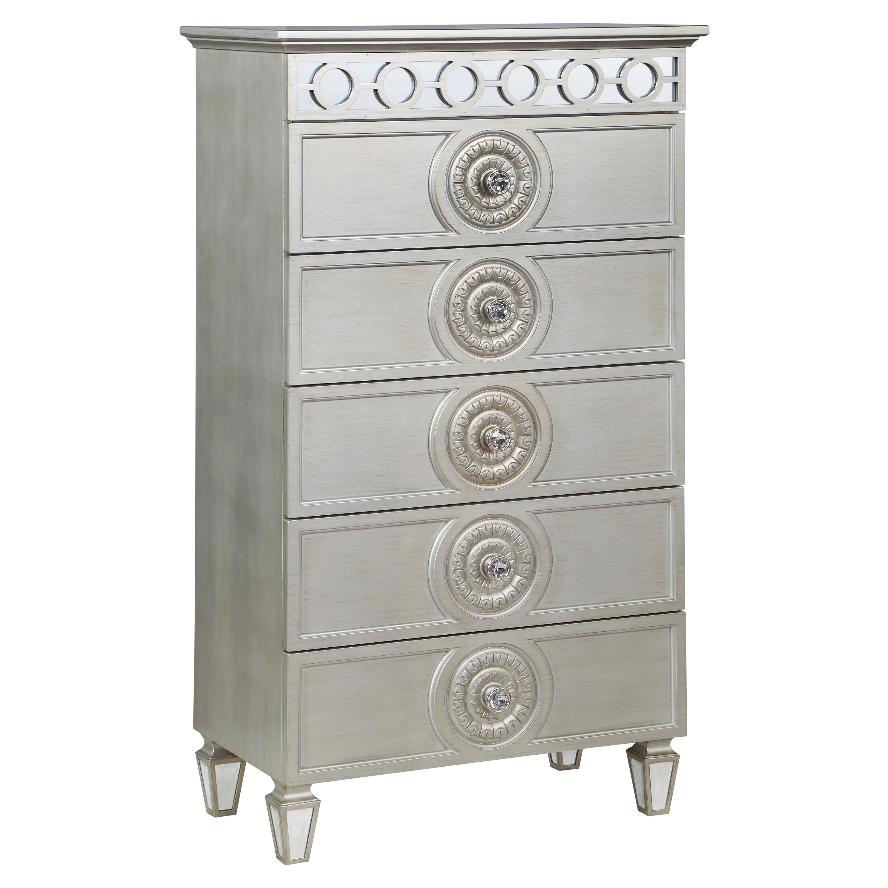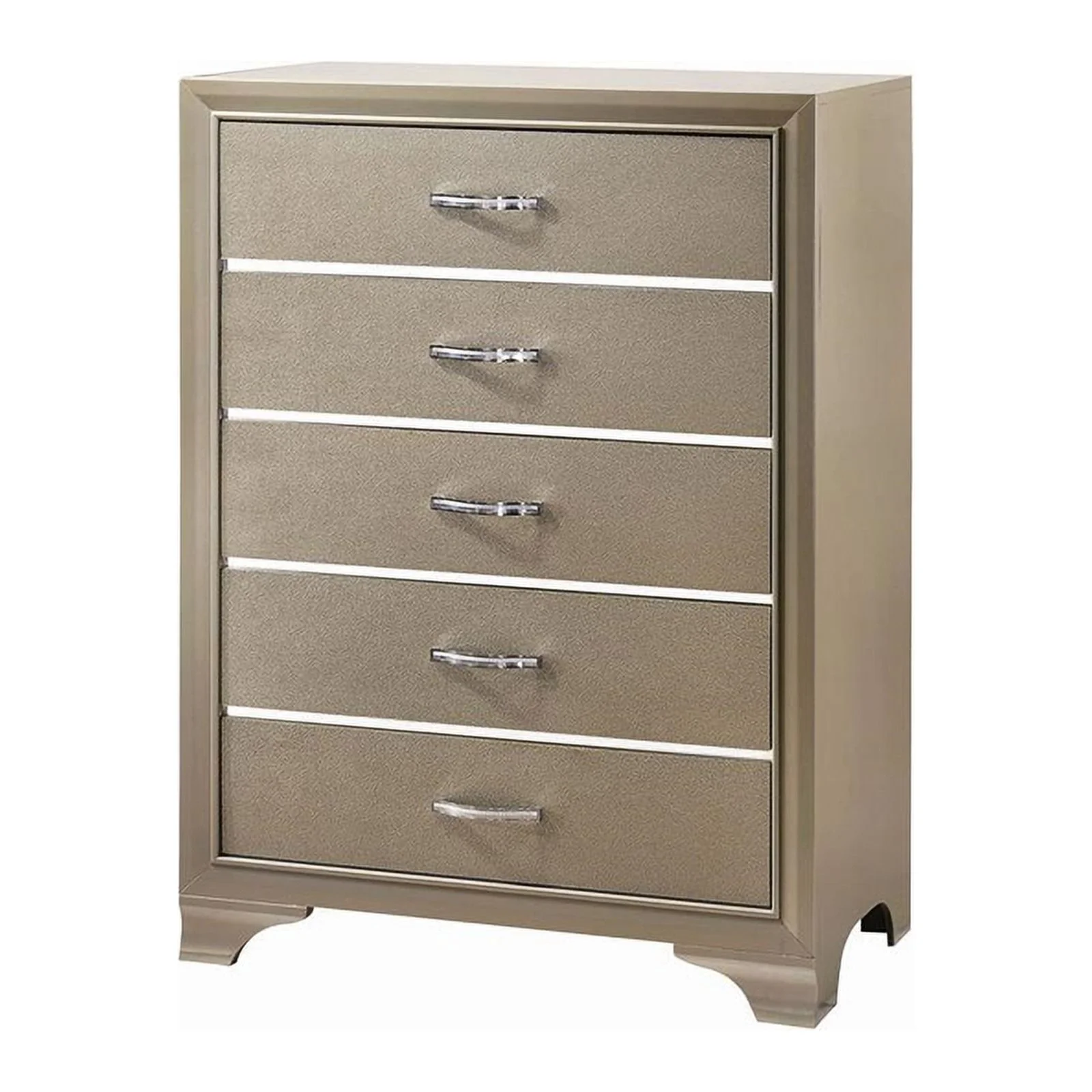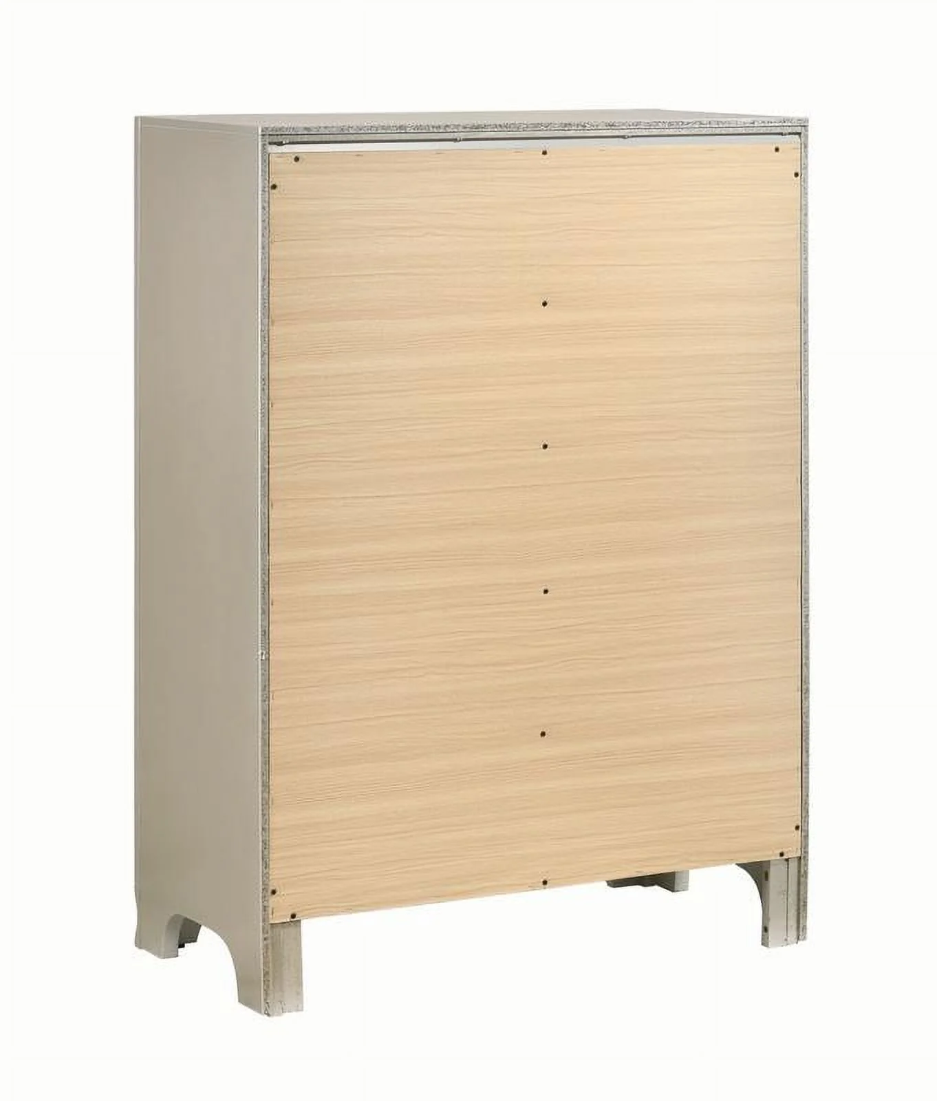5 Drawer Contemporary Chest with Bar Handles and Splayed Legs, Silver