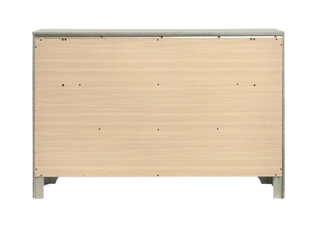 HomeRoots 489224 42 in. Aluminum Three Drawer Standard Dresser, Silver