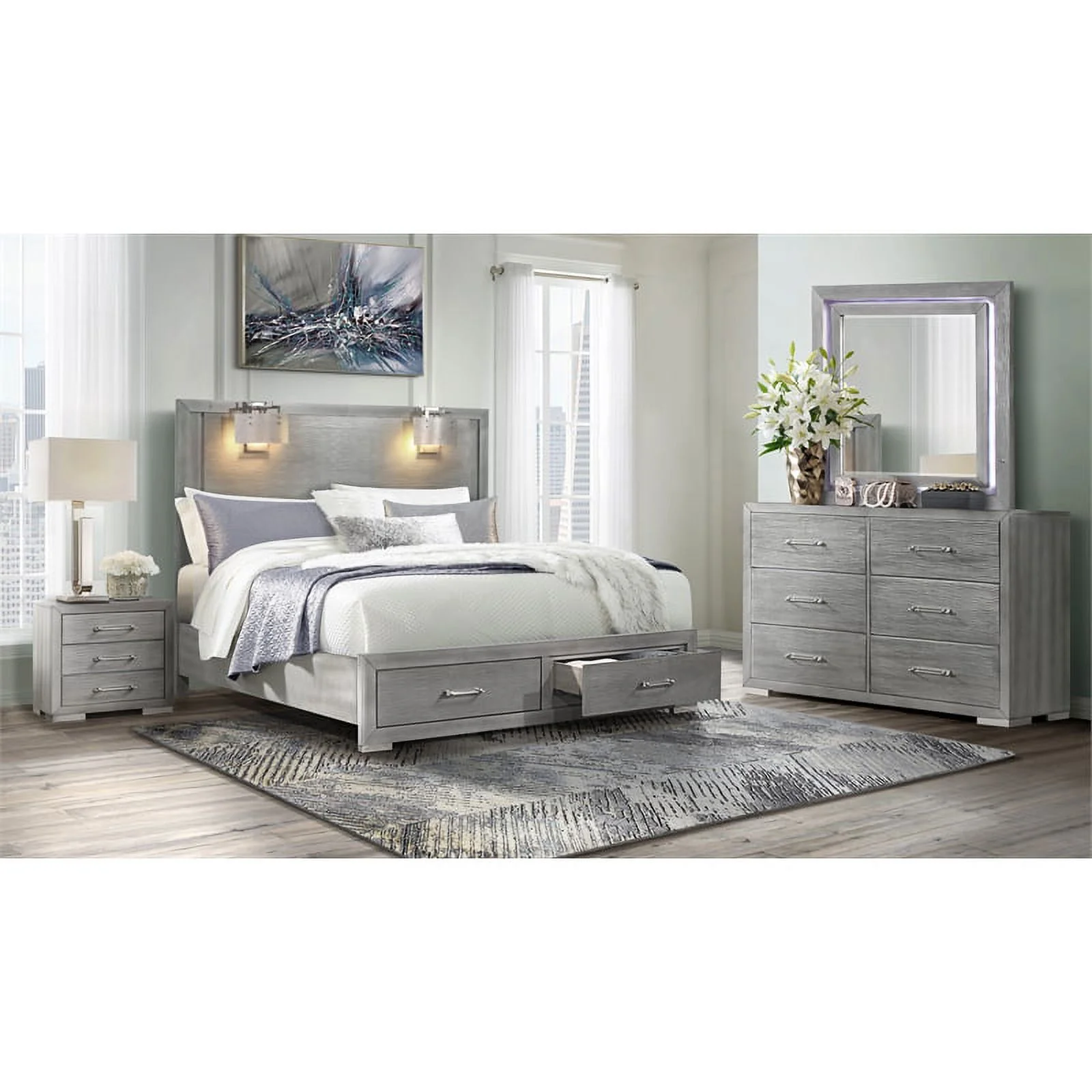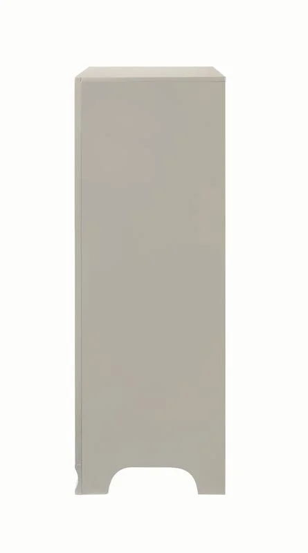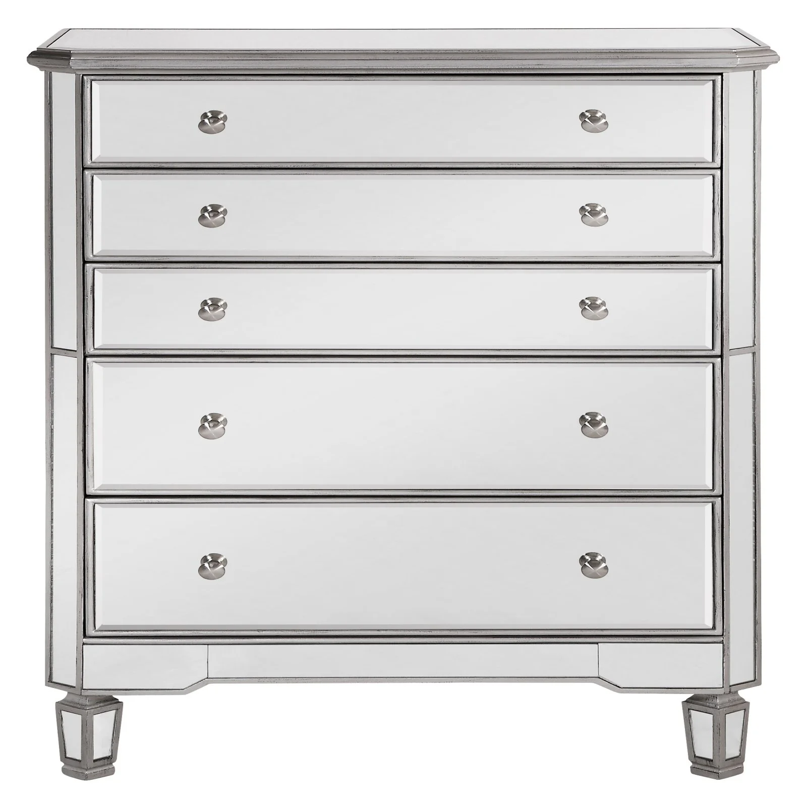 Better Home Products Chest Five Drawer with Pine Legs in Gray and Silver Oak Finish.
