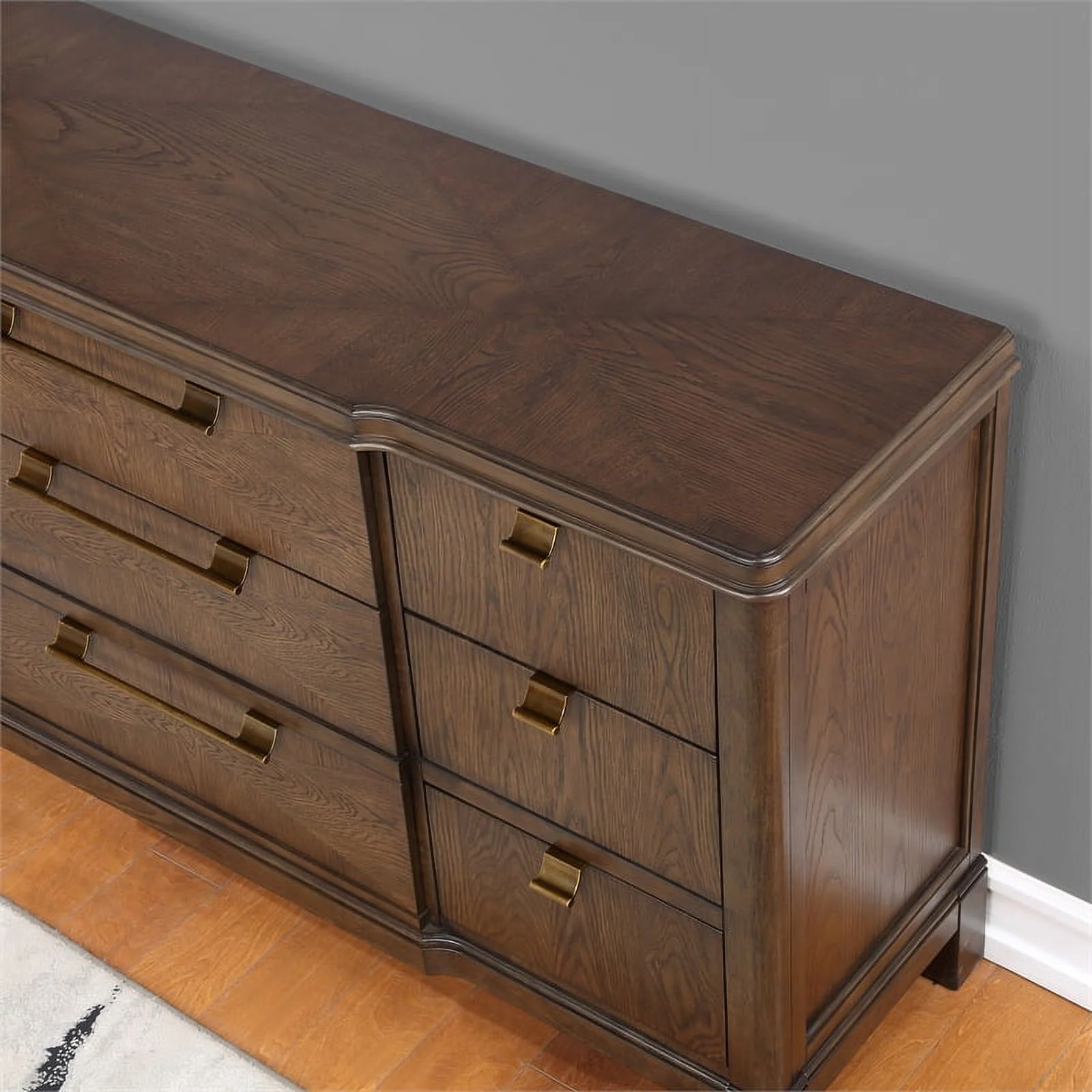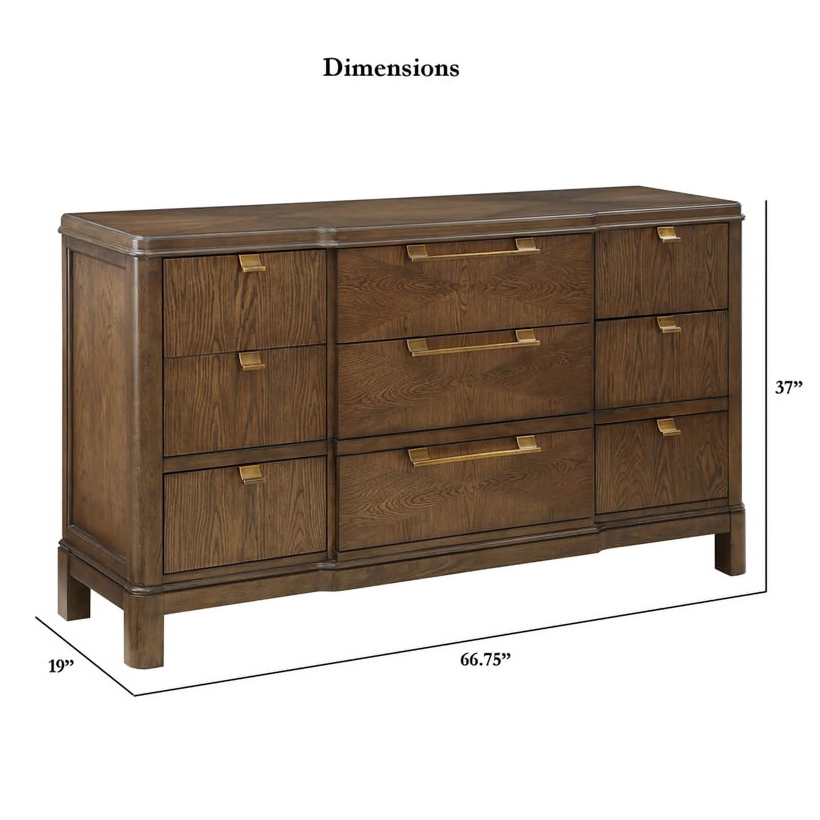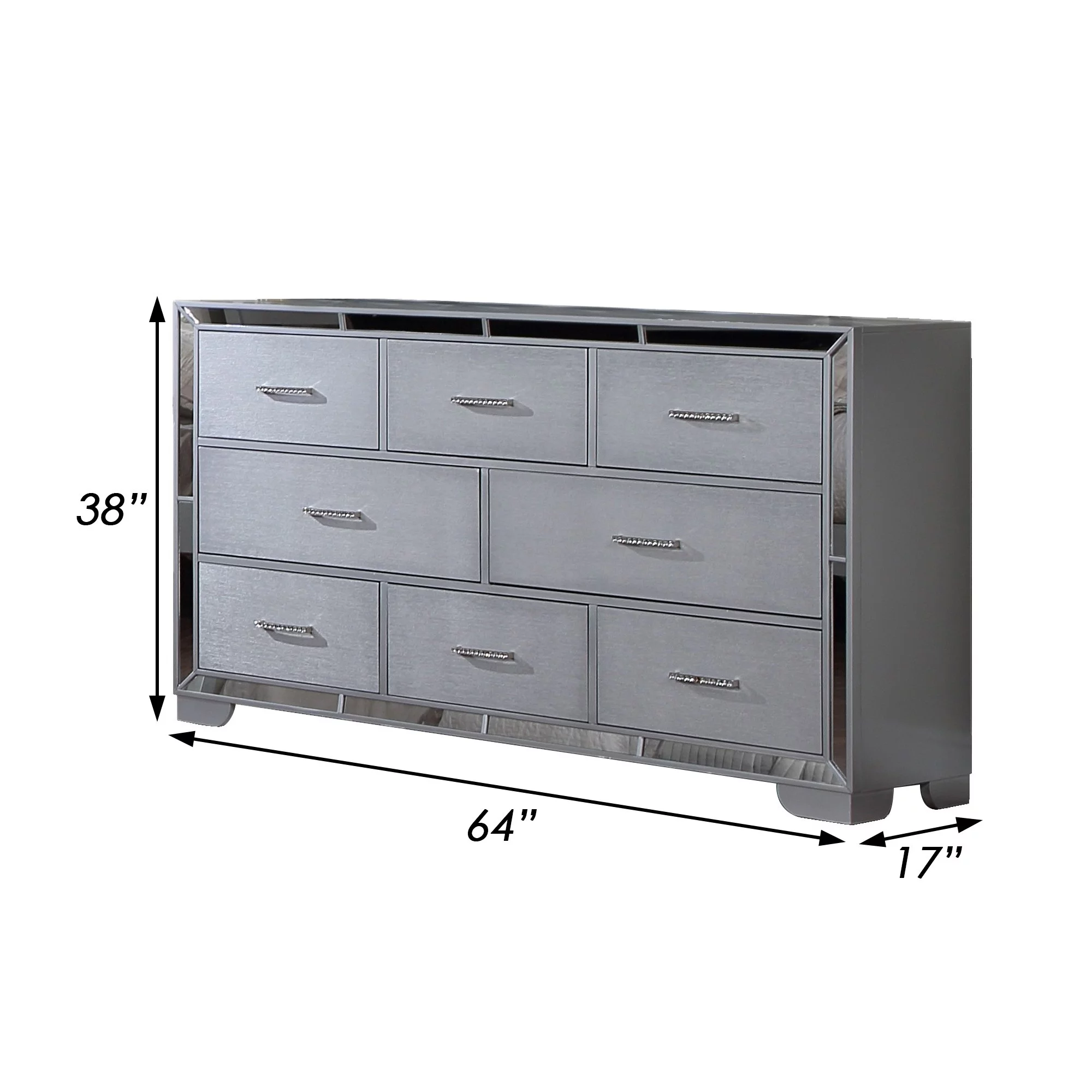 Benjara Inz 71 Inch 9 Drawer Wide Dresser, Elegant Trim Details, Classic Silver