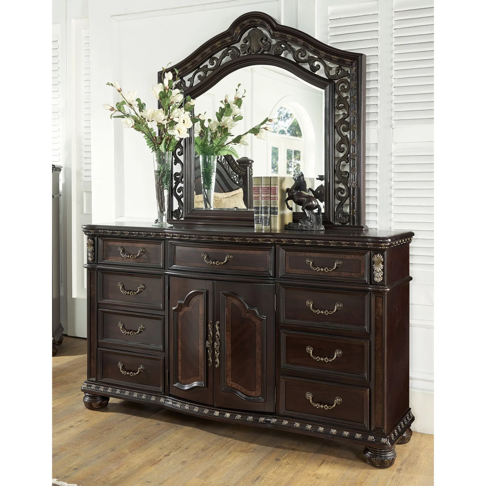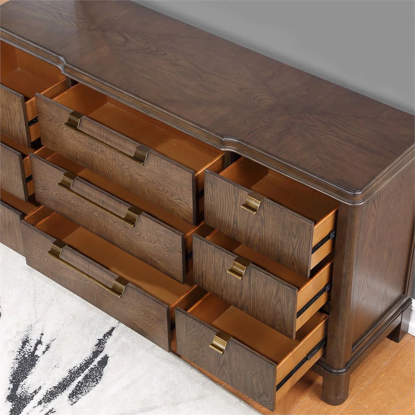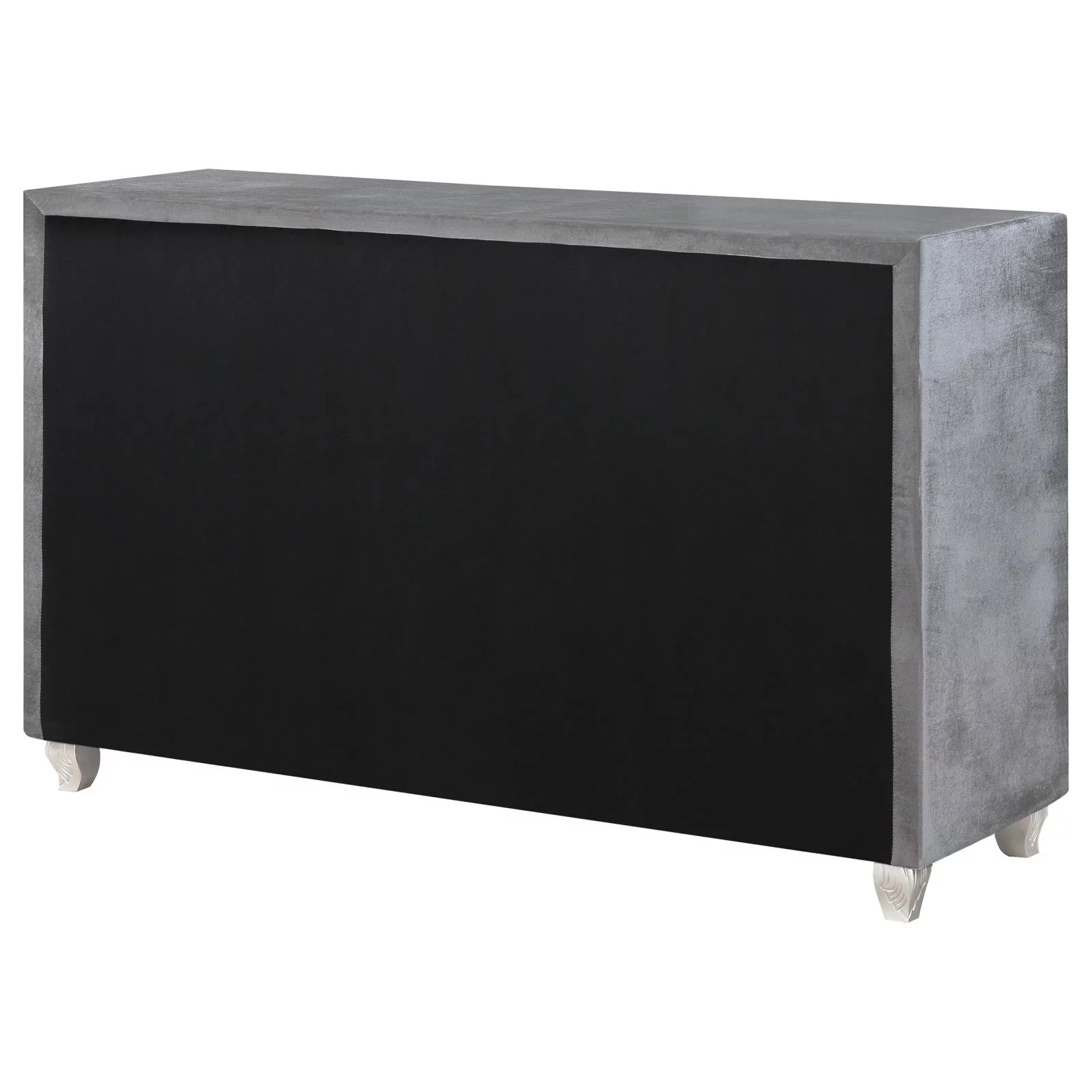 Benjara Inz 71 Inch 9 Drawer Wide Dresser, Elegant Trim Details, Classic Silver