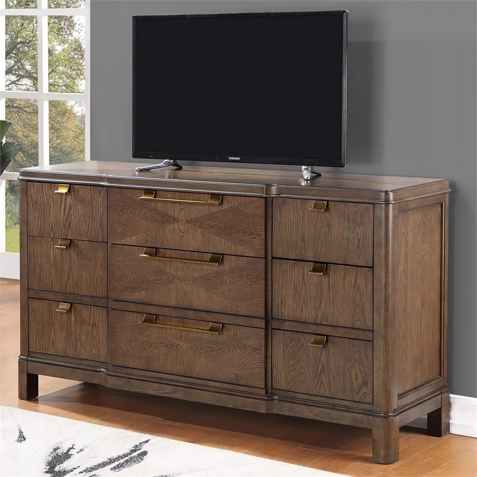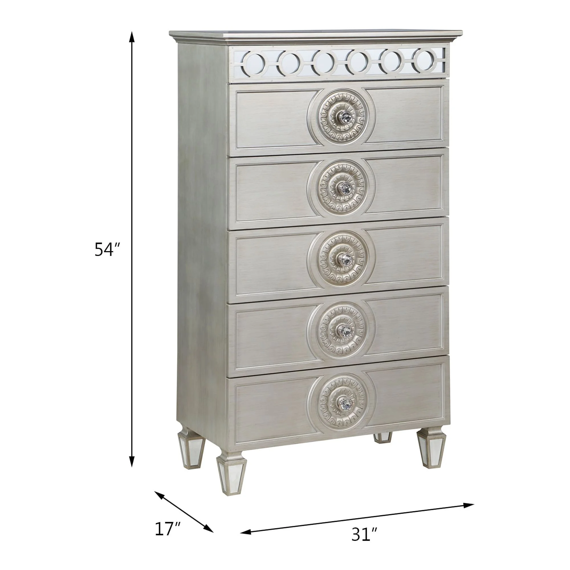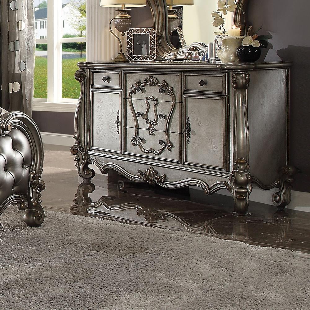 ACME Versailles 5 Drawer Wooden Dresser with 2 Doors in Antique Brown Platinum