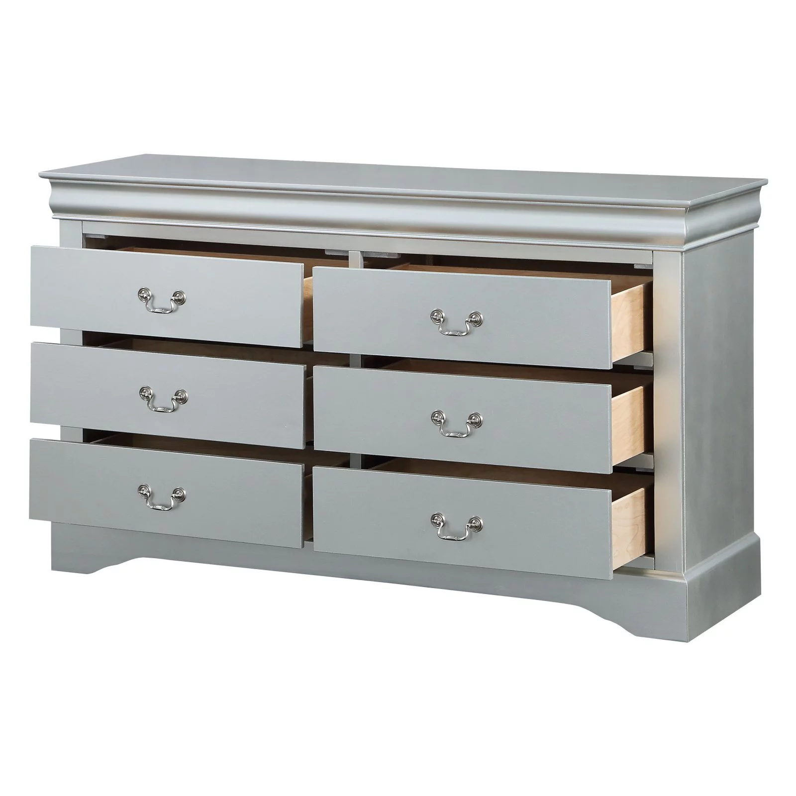Silver Orchid Amann Transitional Silver 56-inch Wide 6-Drawer Wood Dresser by