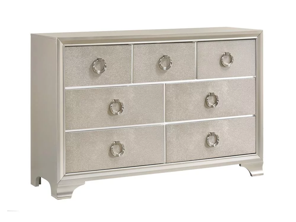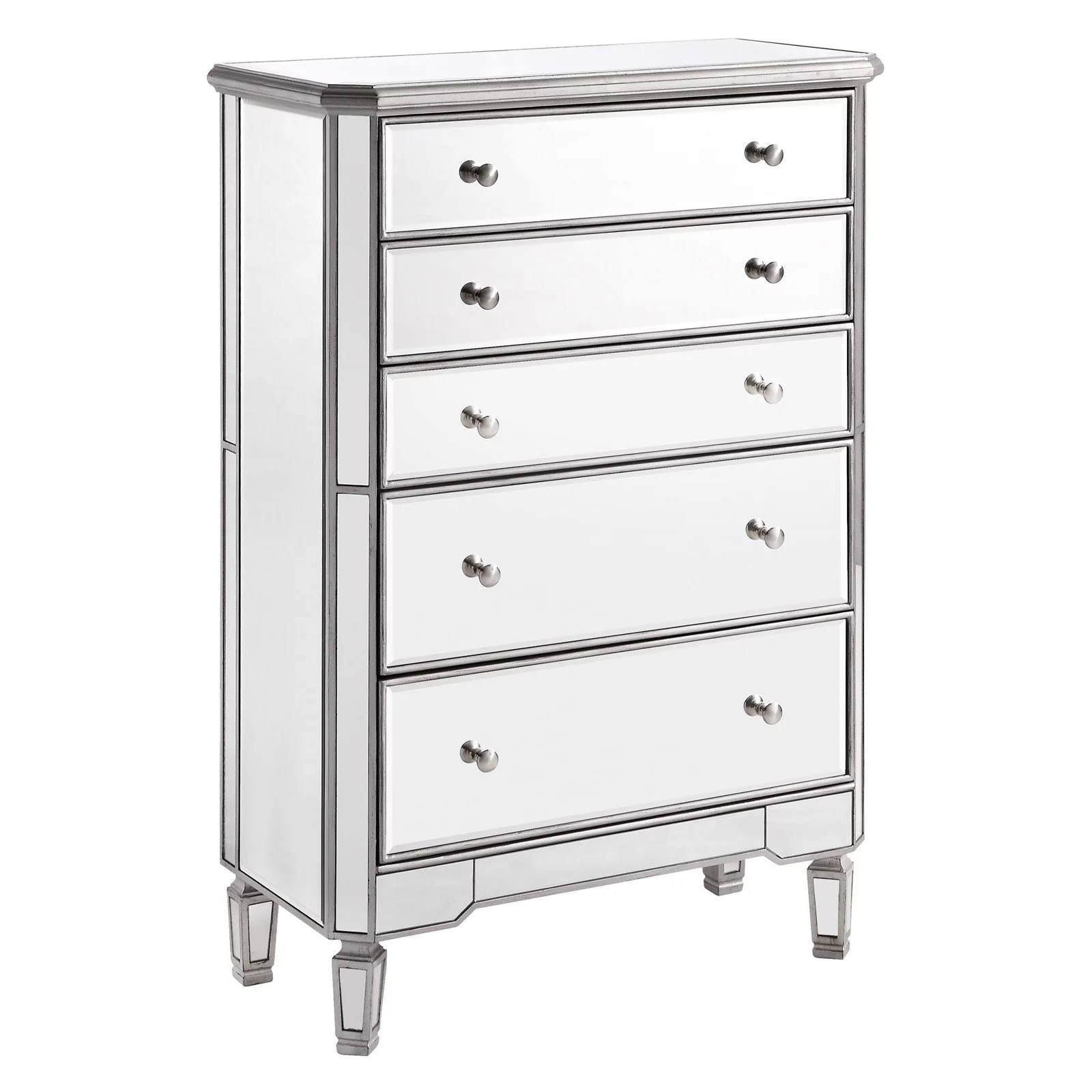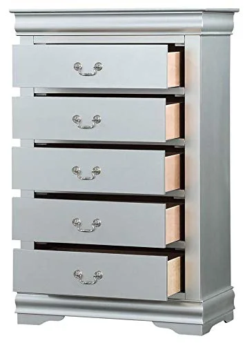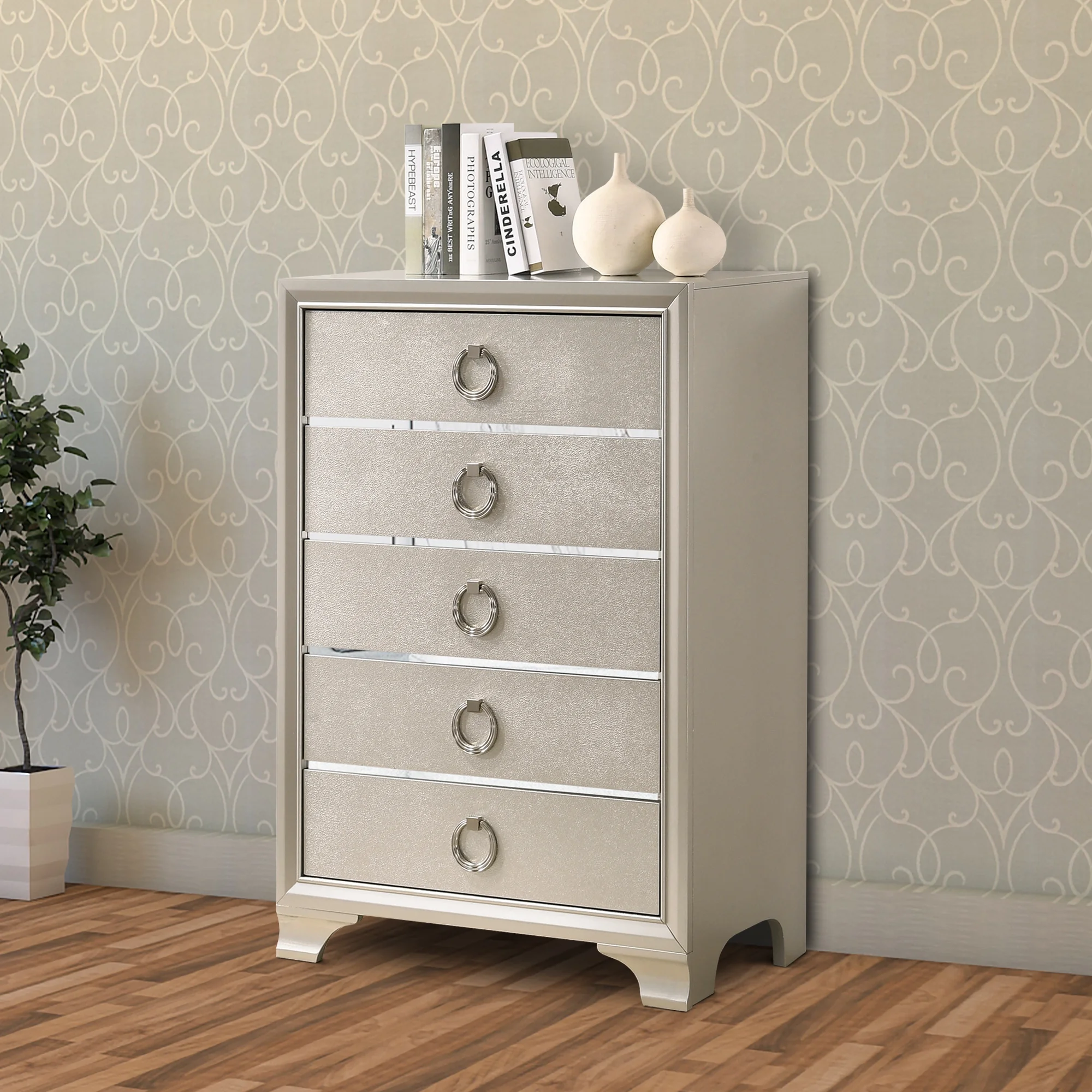 Benjara Five Drawers Wooden Dresser with Oversized Ring Handles, Silver