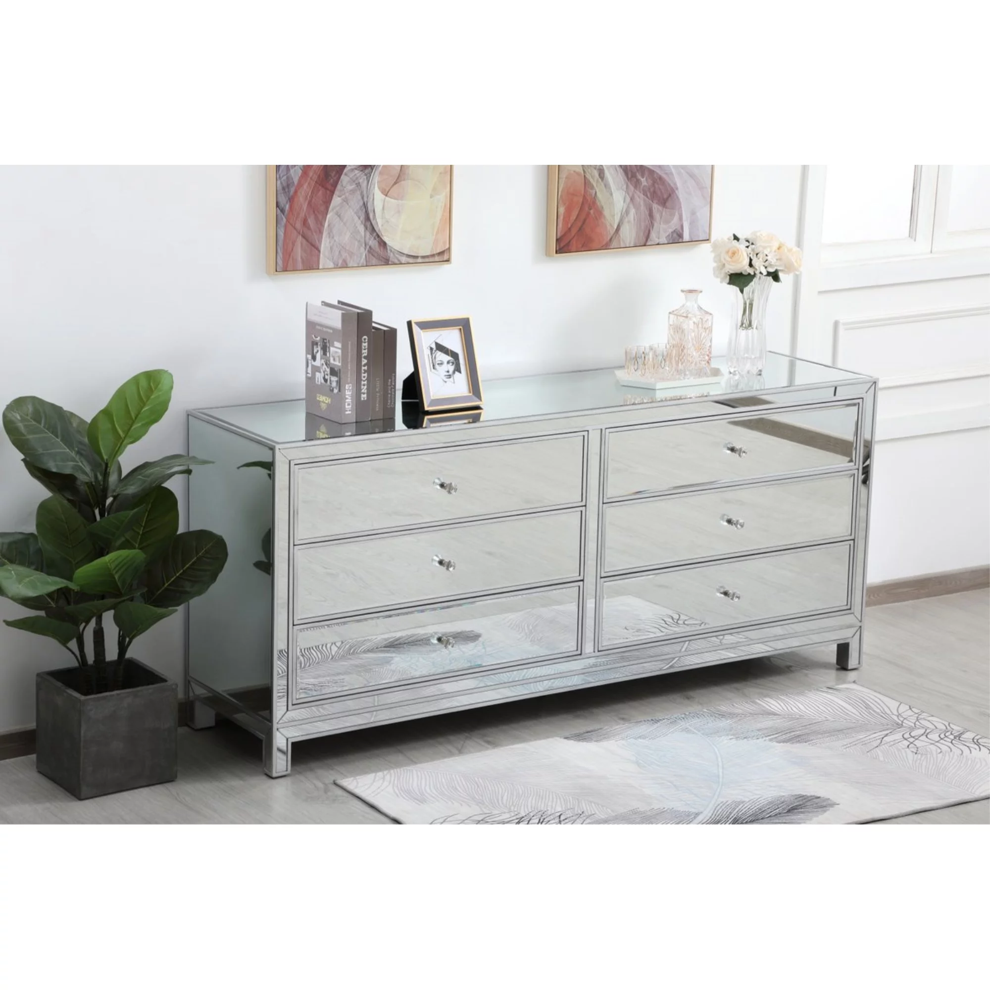 Elegant Decor Reflexion 72" Metal and MDF Mirrored Six-Drawer Dresser in Silver