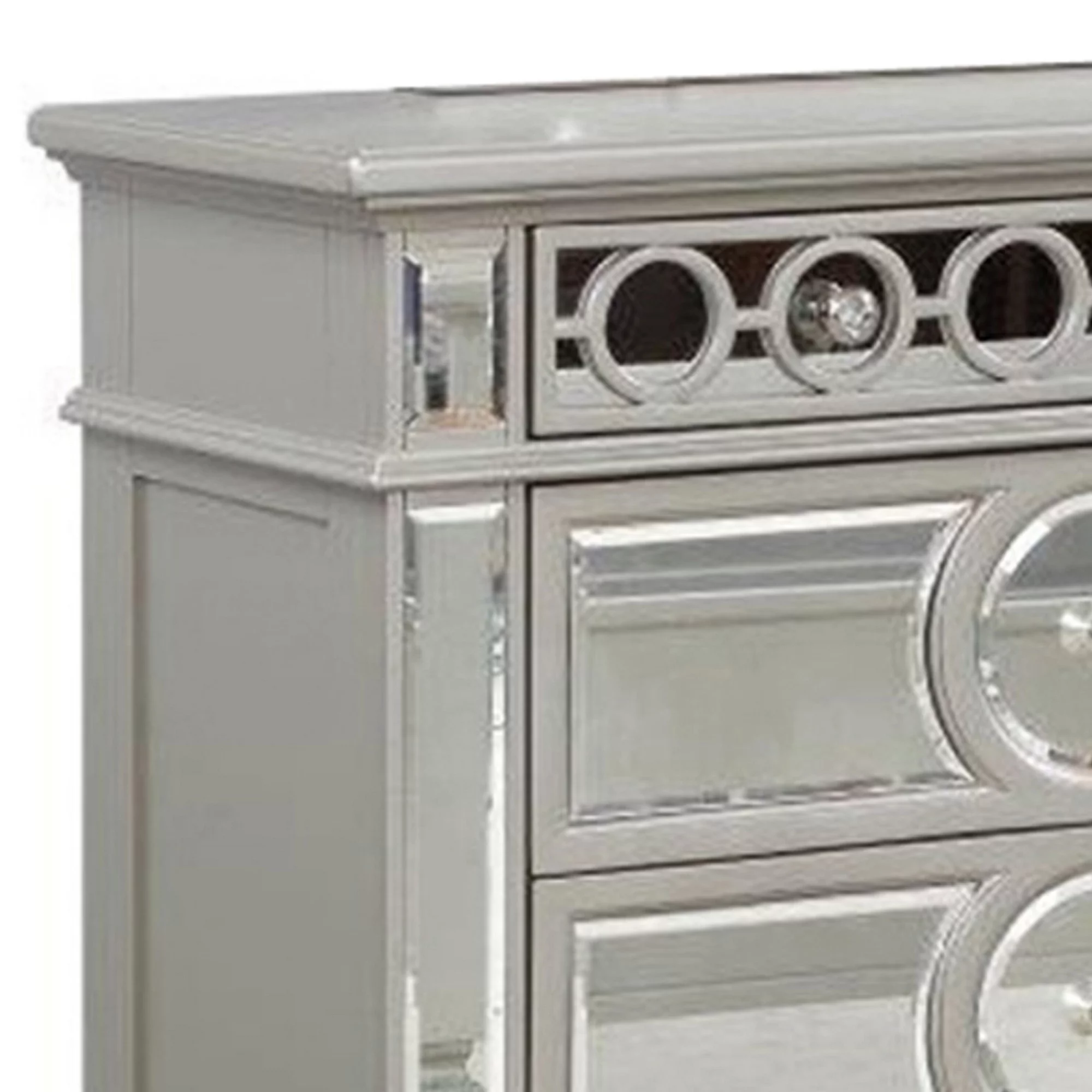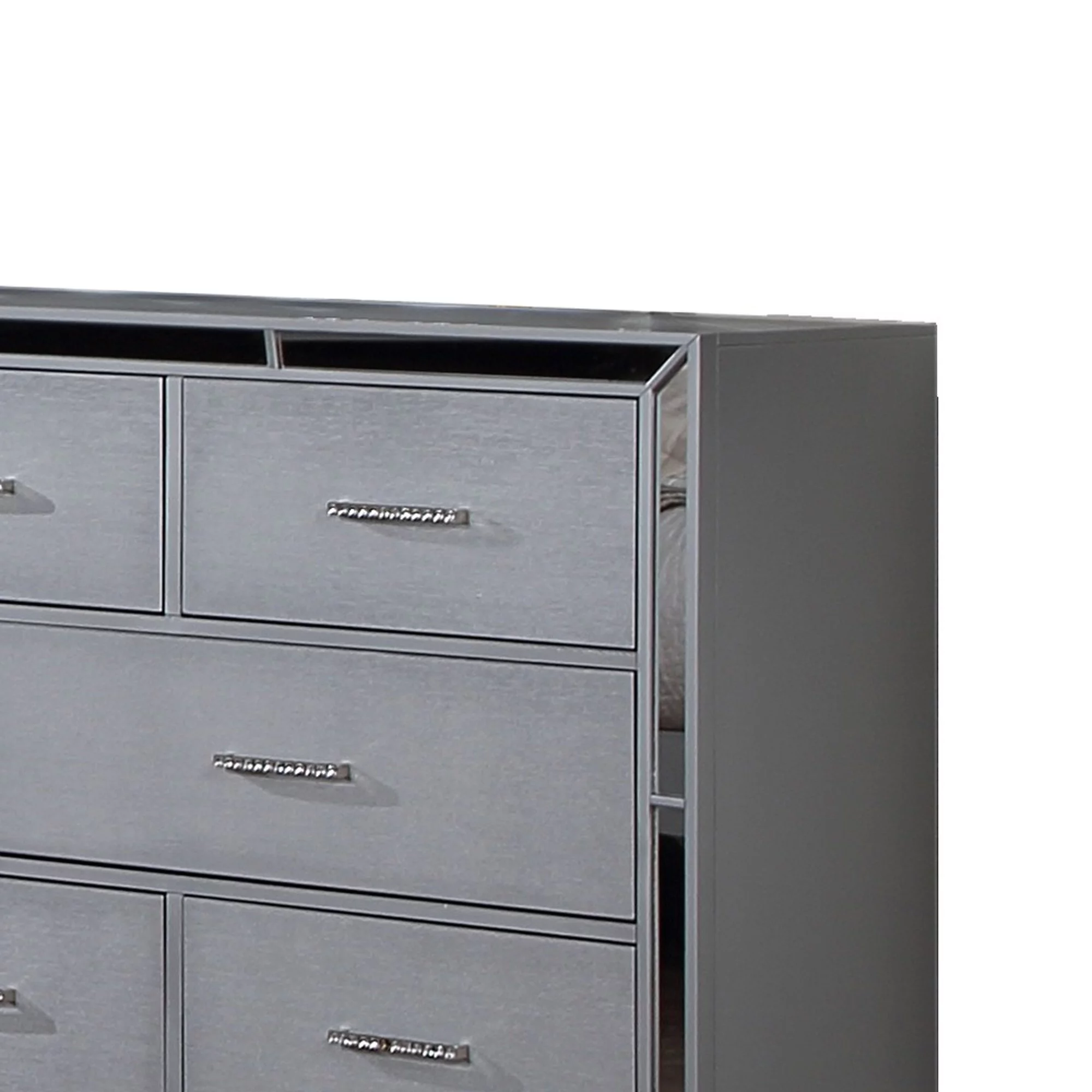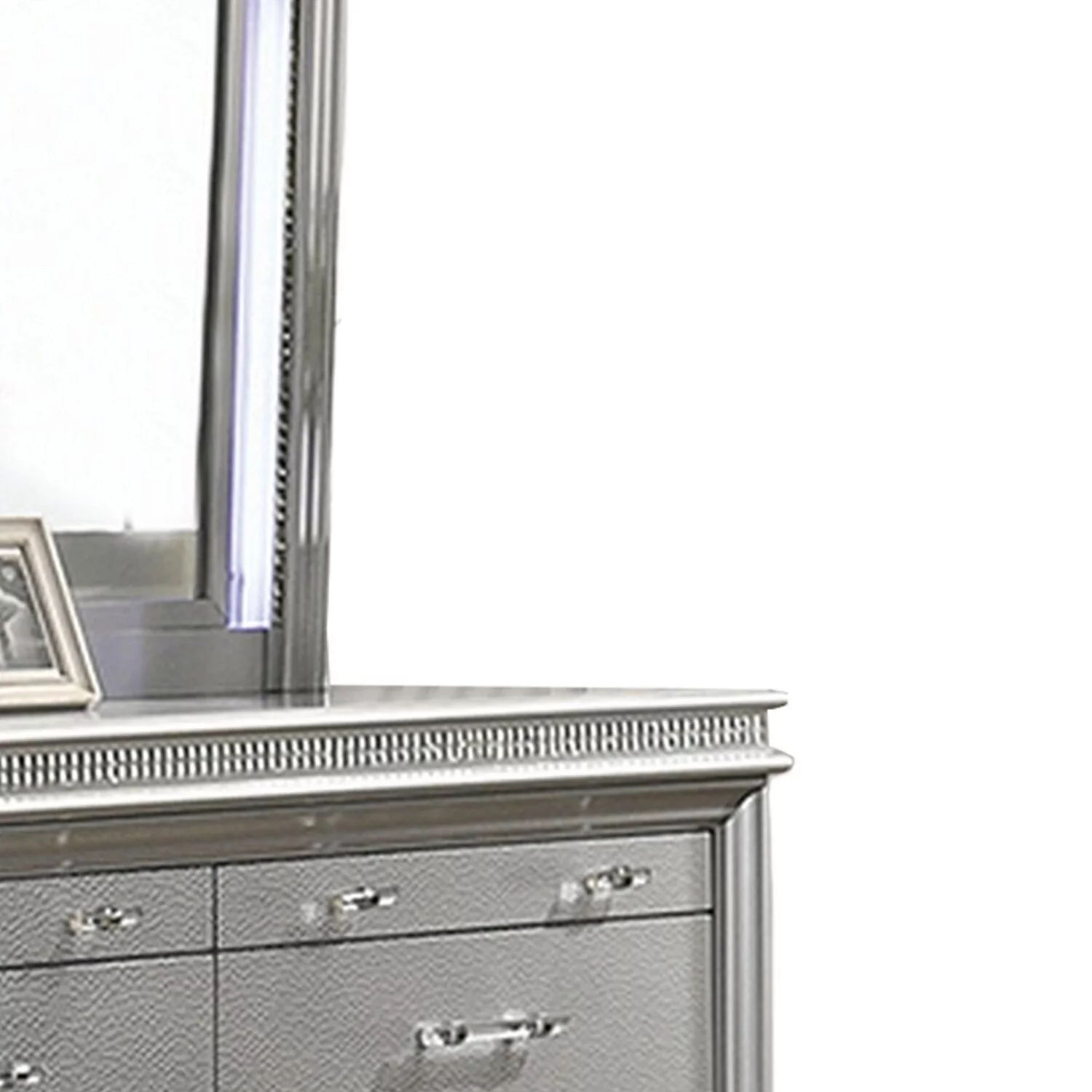 Benjara BM300681 64 in. Jack Dresser with 6 Gliding Drawers & Mirror Panel Inserts, Silver