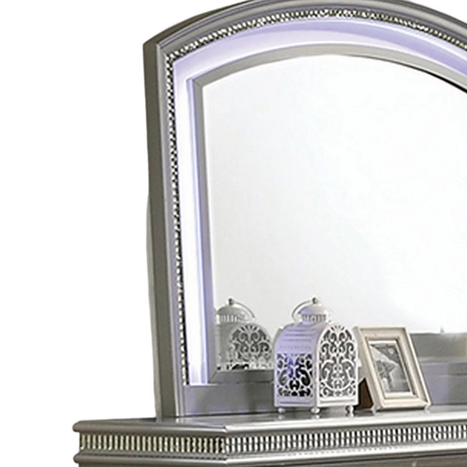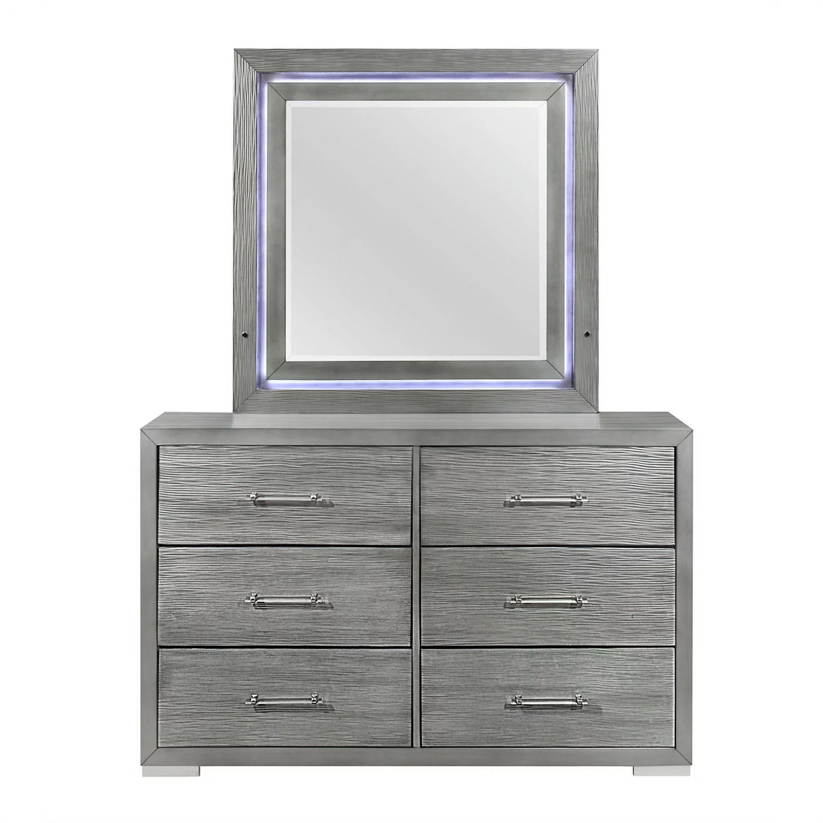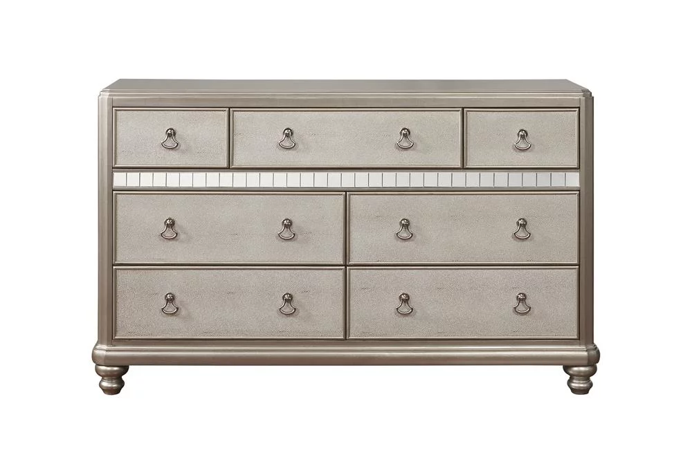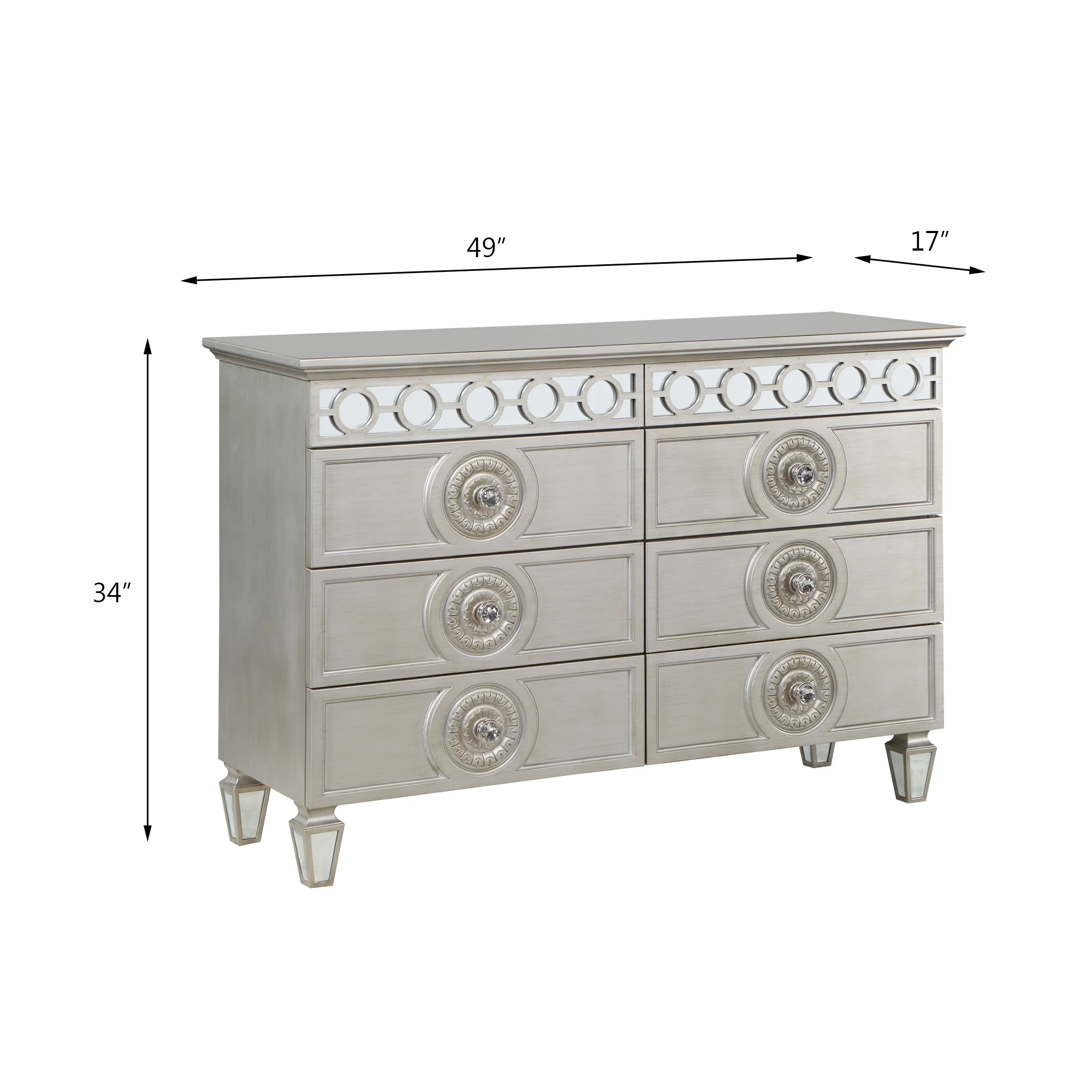 Benjara BM300681 64 in. Jack Dresser with 6 Gliding Drawers & Mirror Panel Inserts, Silver