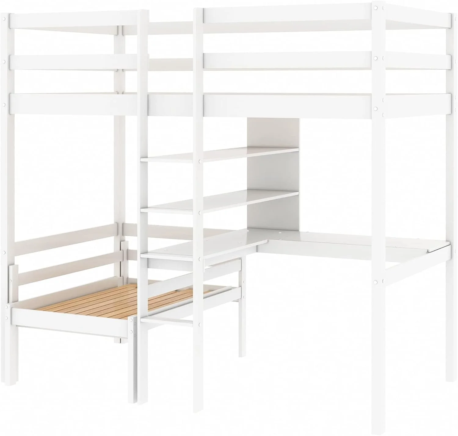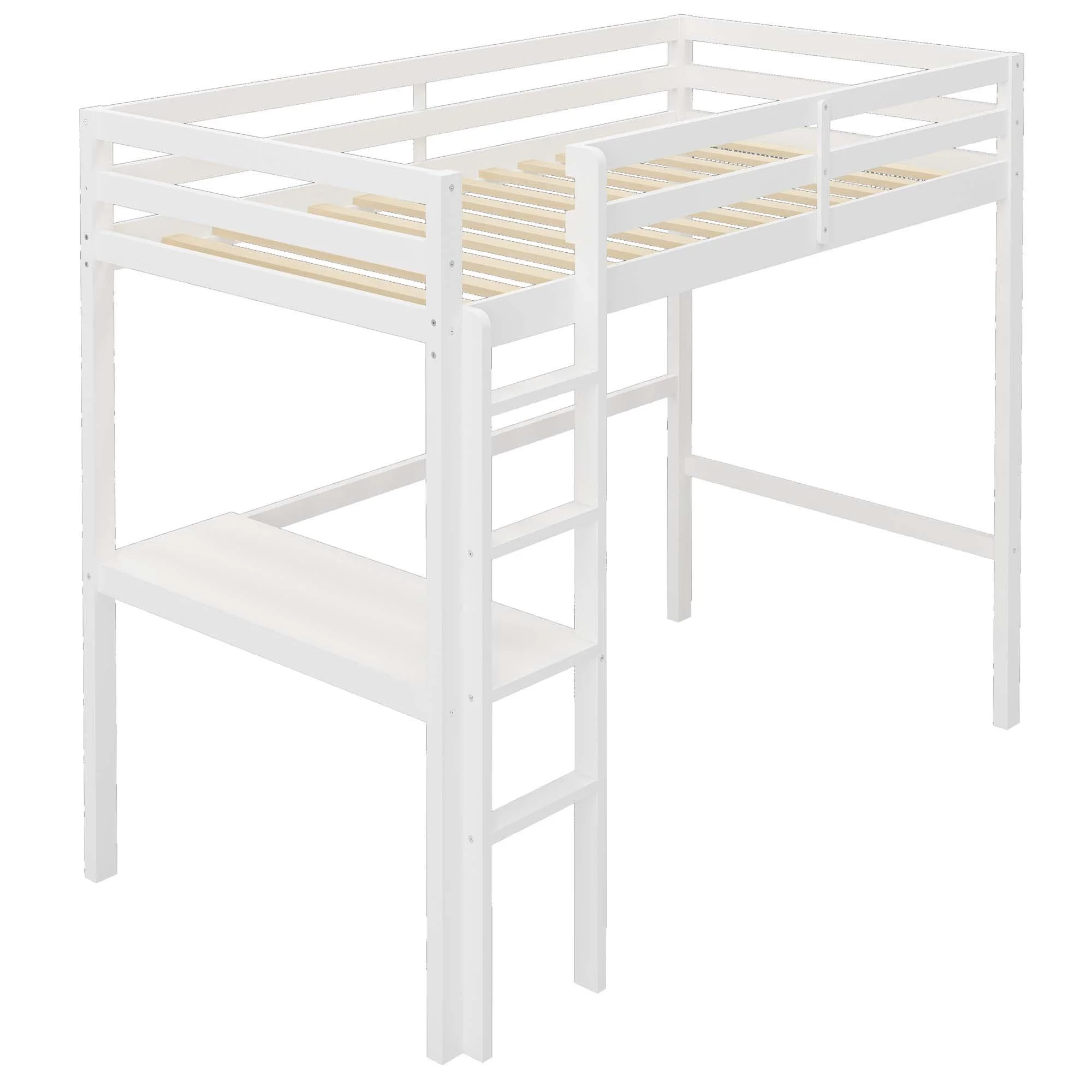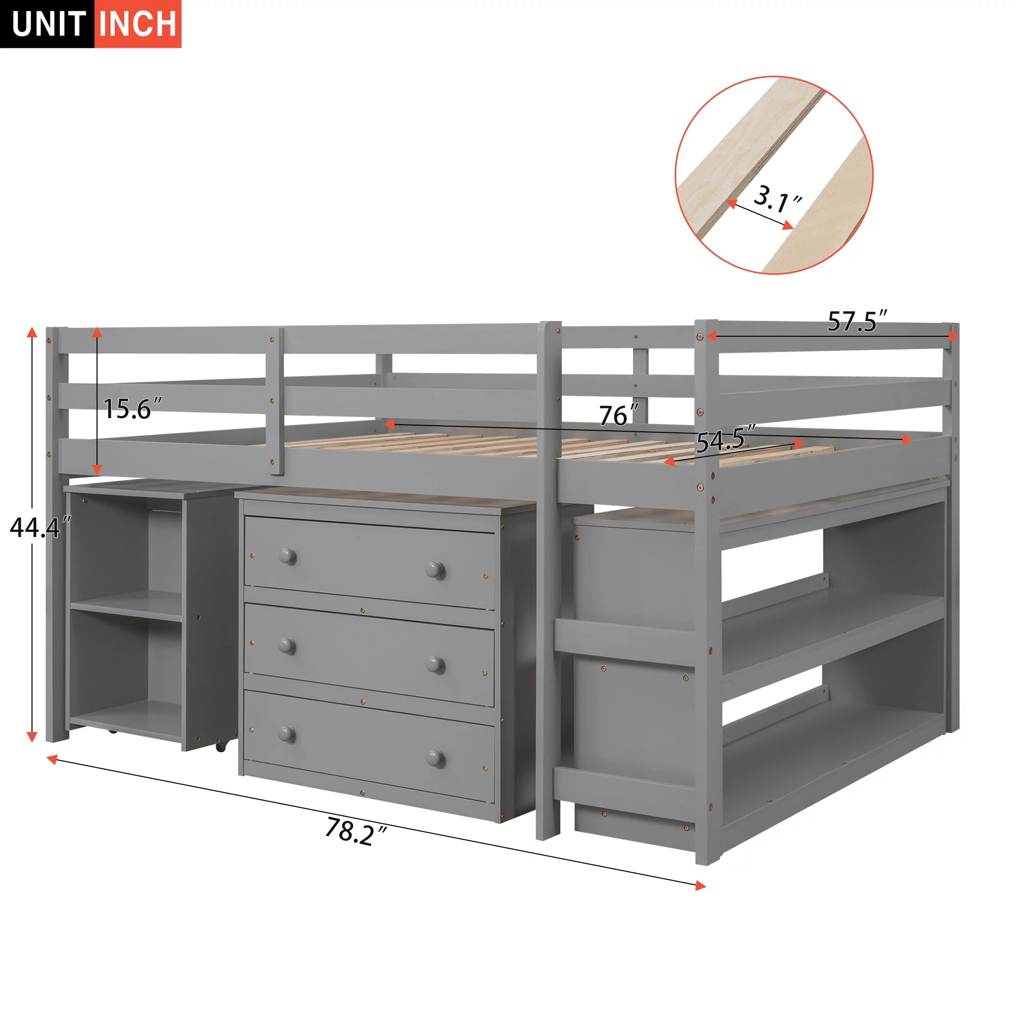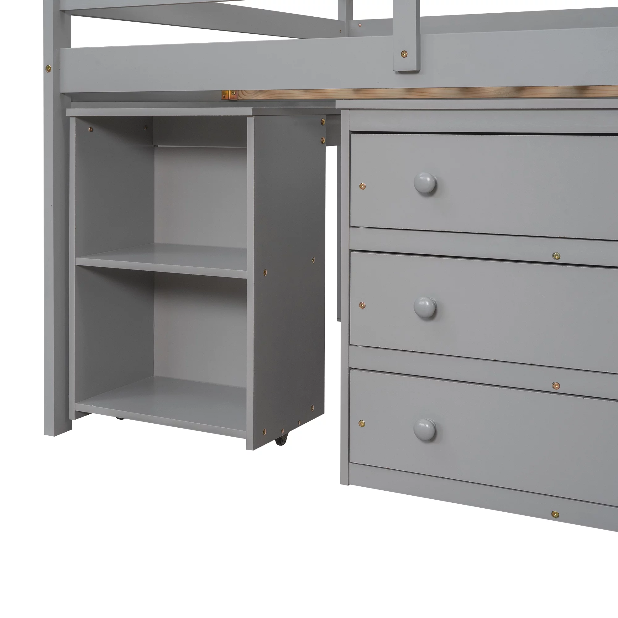 CHURANTY Solid Wood Twin Low Loft Bed with Desk and Storage Drawers Cabinet Rolling Portable Desk