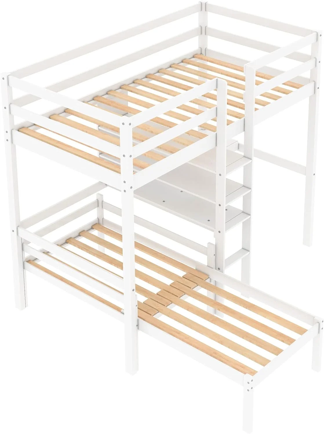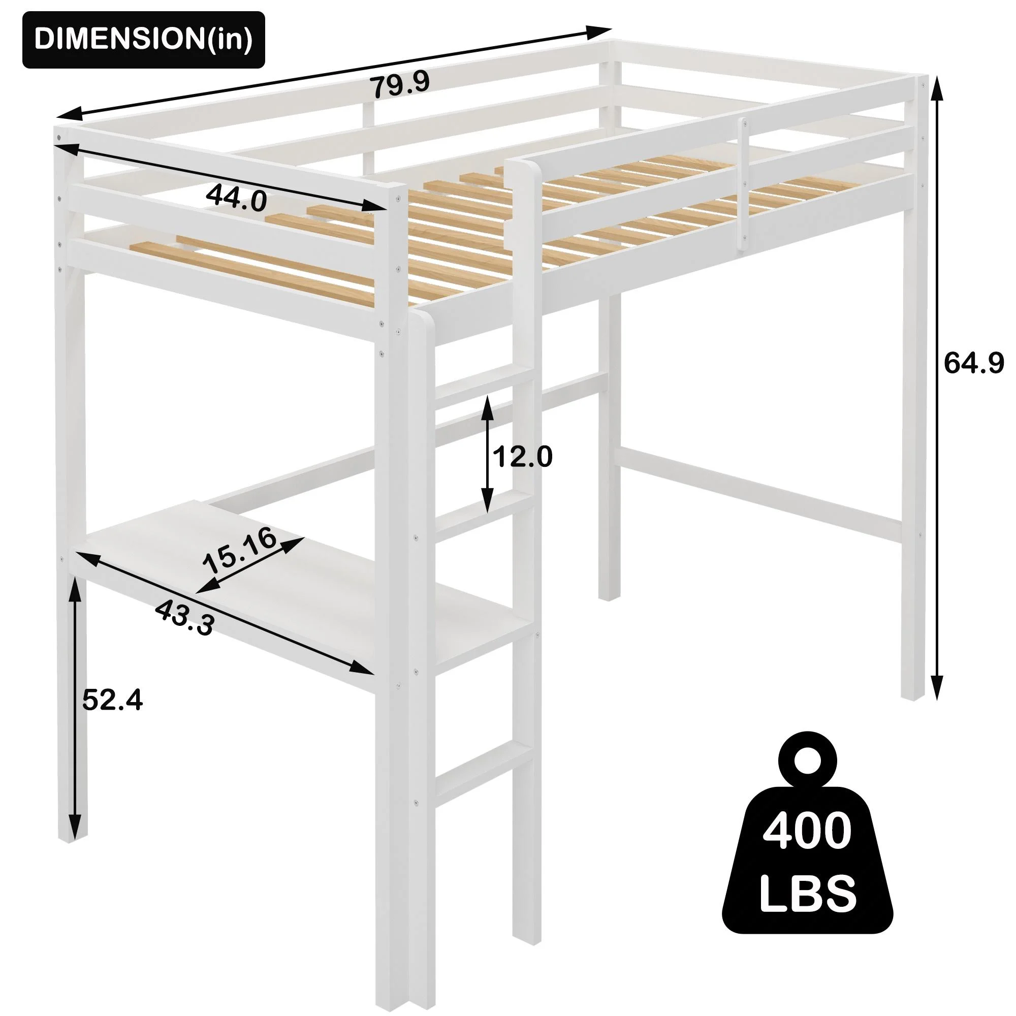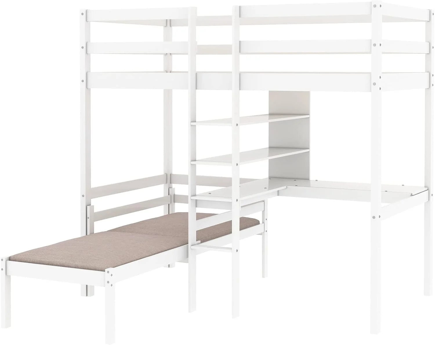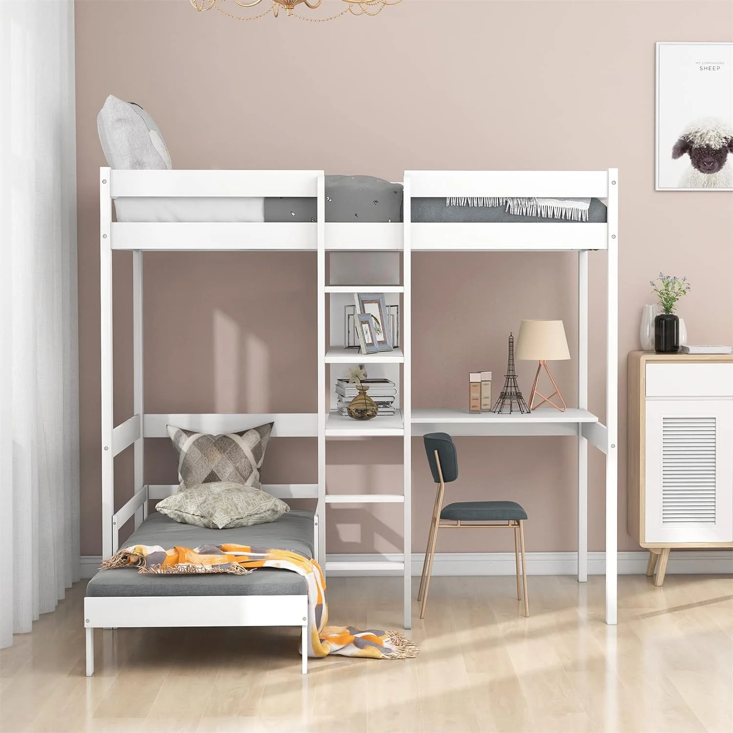 CHURANTY Solid Wood Twin Low Loft Bed with Desk and Storage Drawers Cabinet Rolling Portable Desk