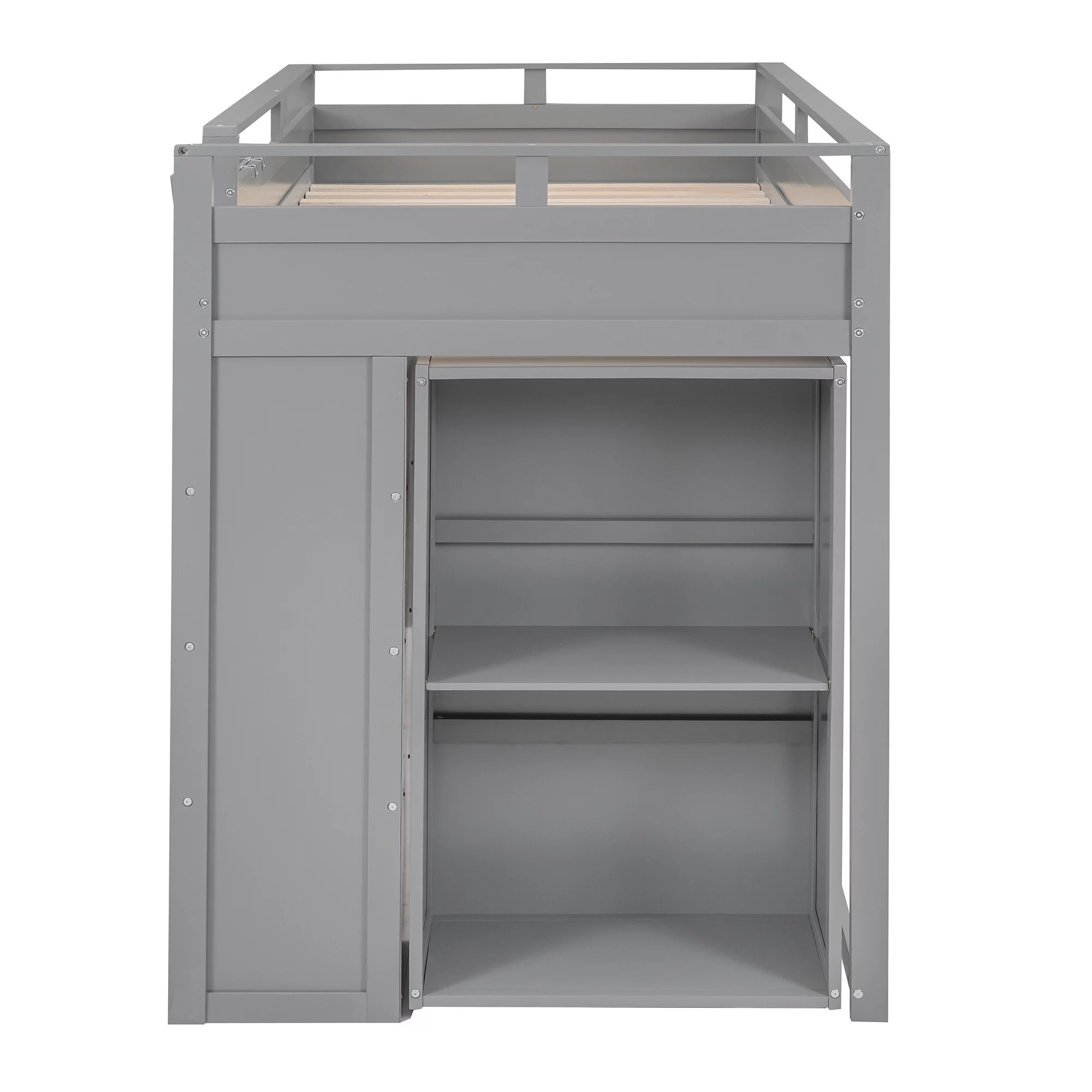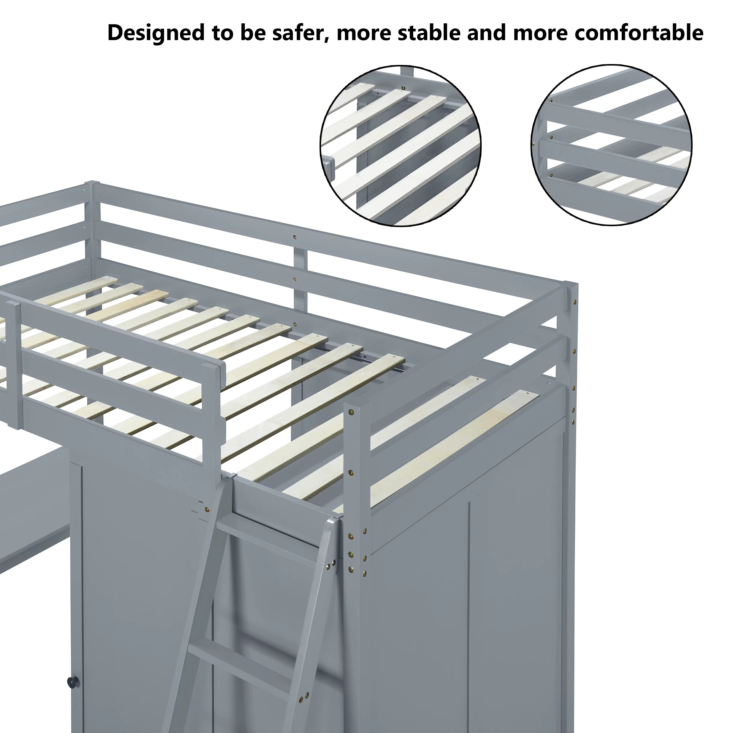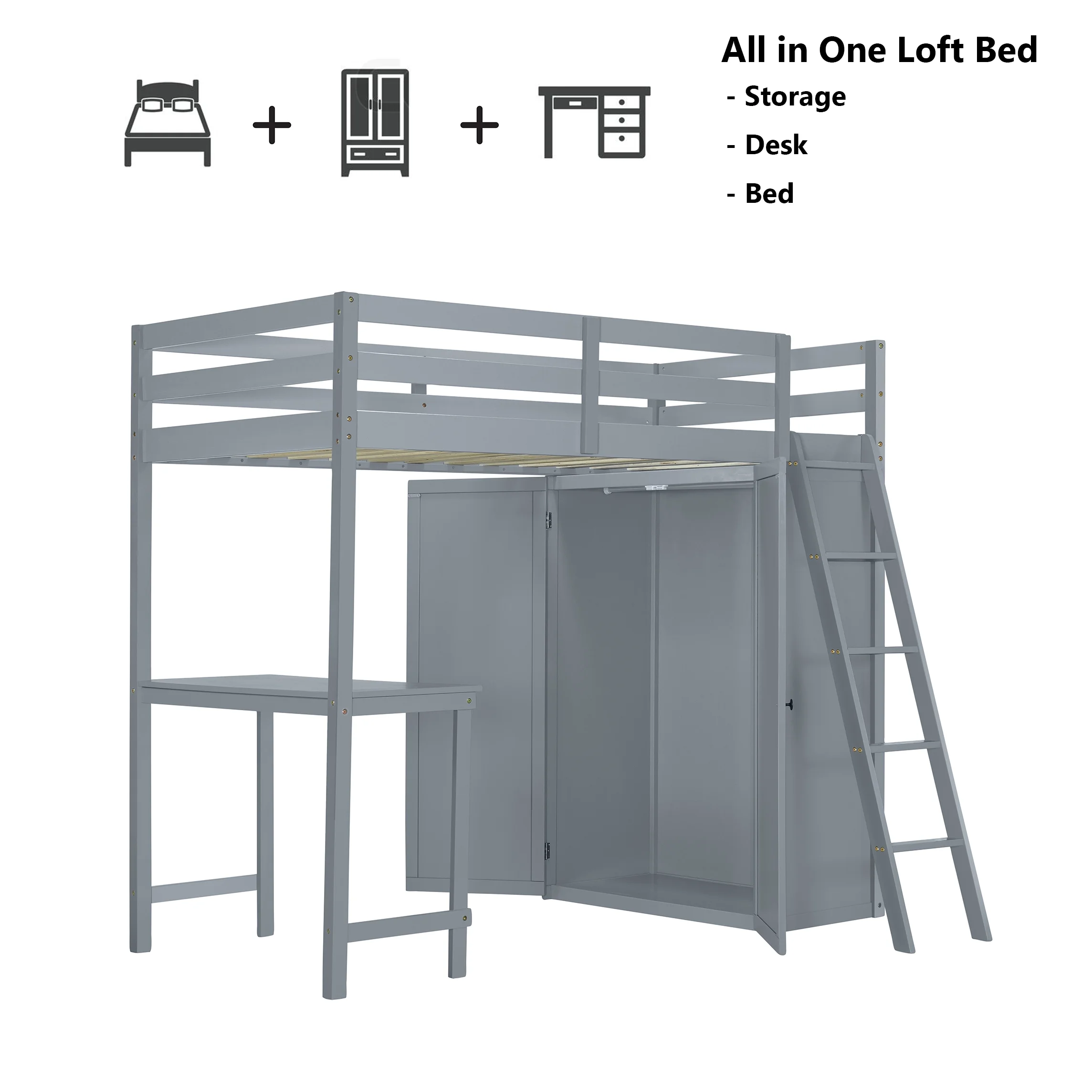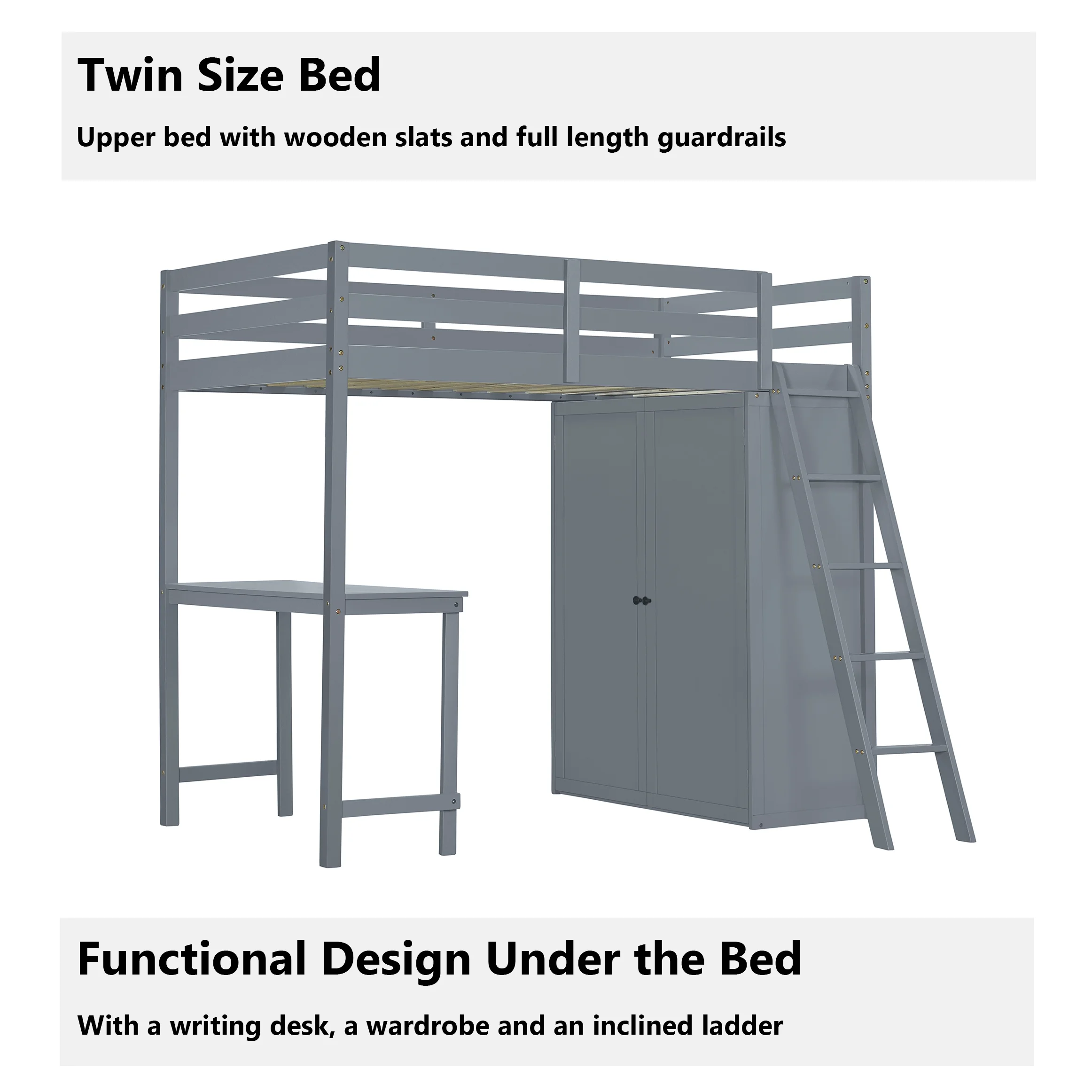 Churanty Twin Size Loft Bed with Wardrobe and Desk for Kids, Wood High Twin Loft Bed Frame with Shelves,Gray