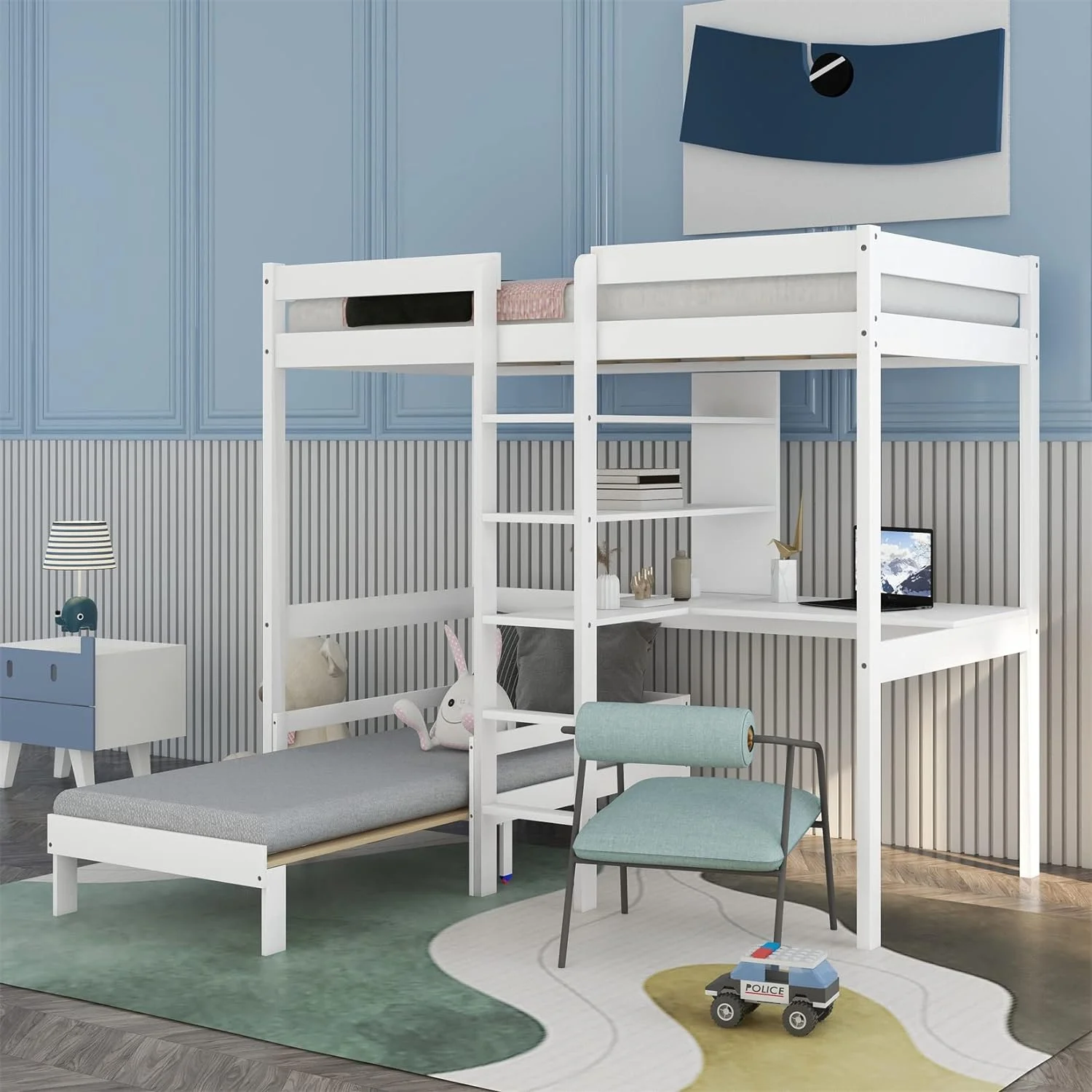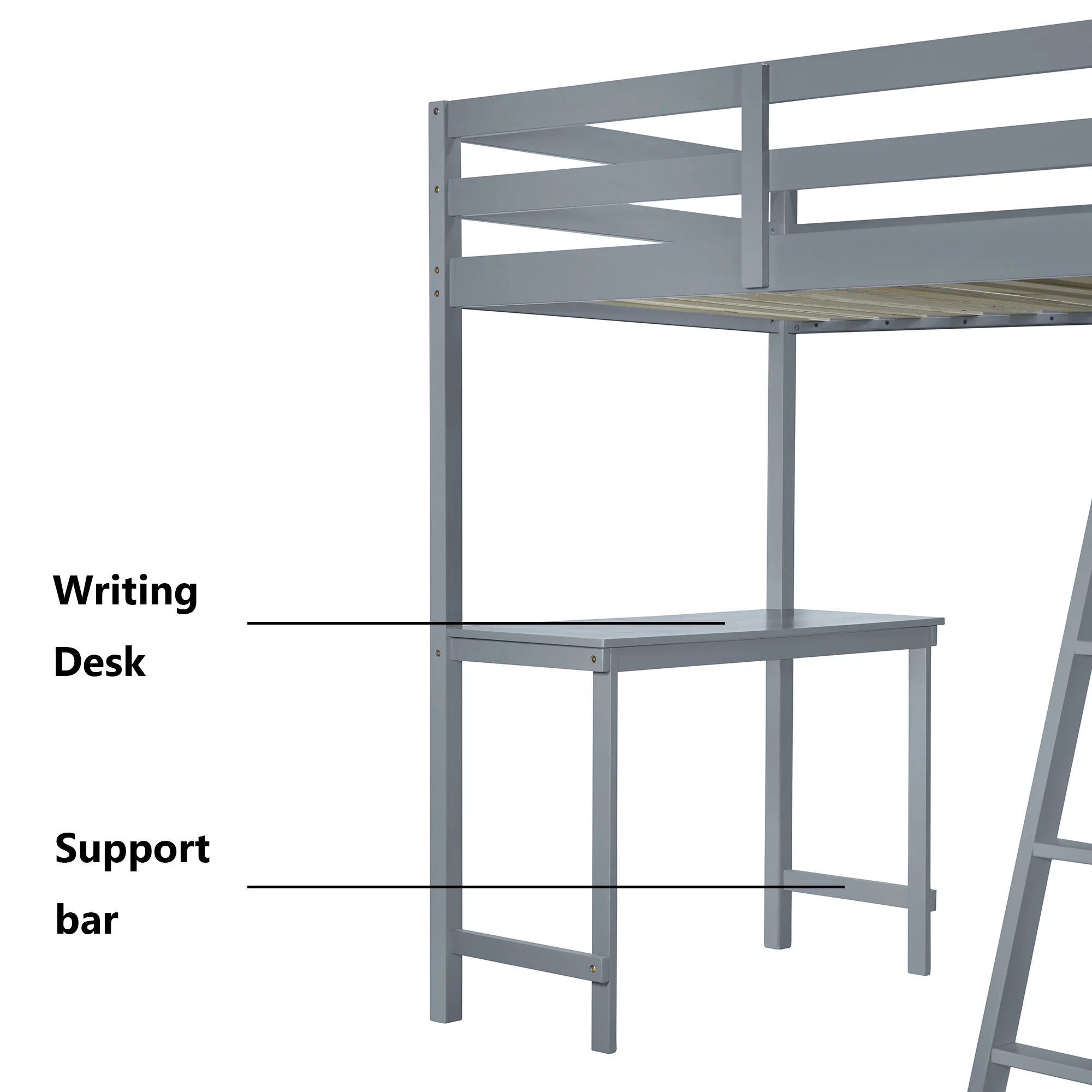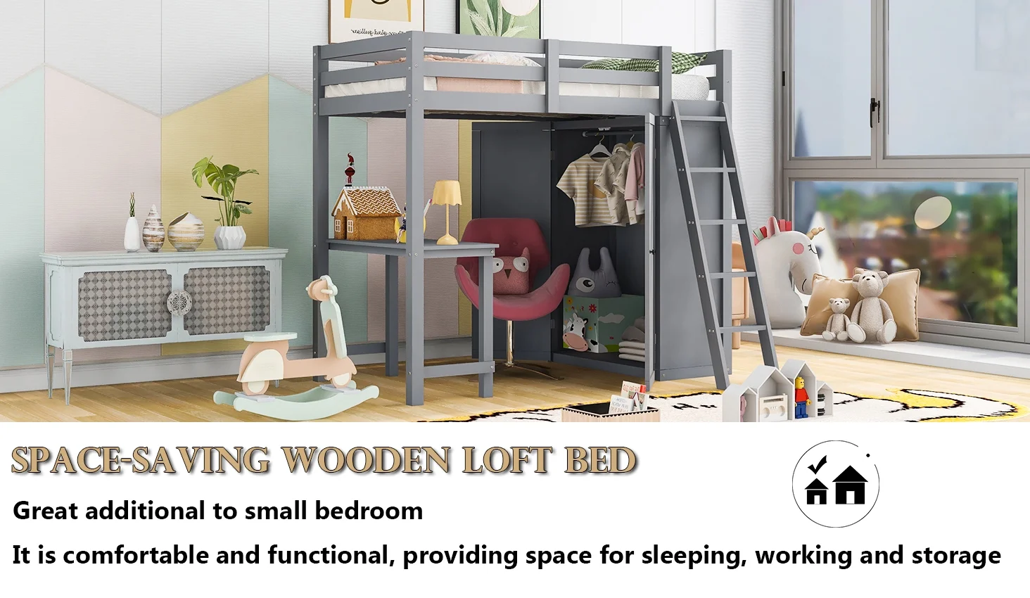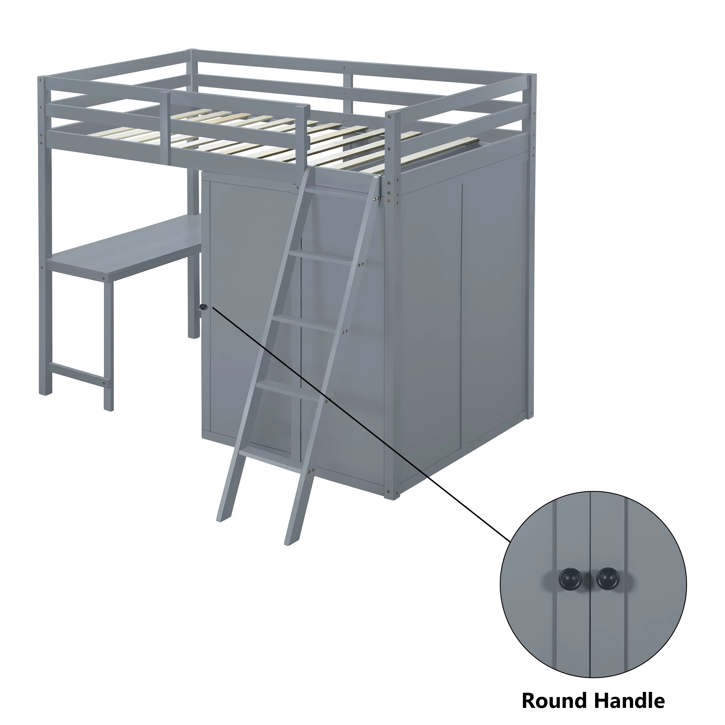Churanty Twin Size Loft Bed with Wardrobe and Desk for Kids, Wood High Twin Loft Bed Frame with Shelves,Gray