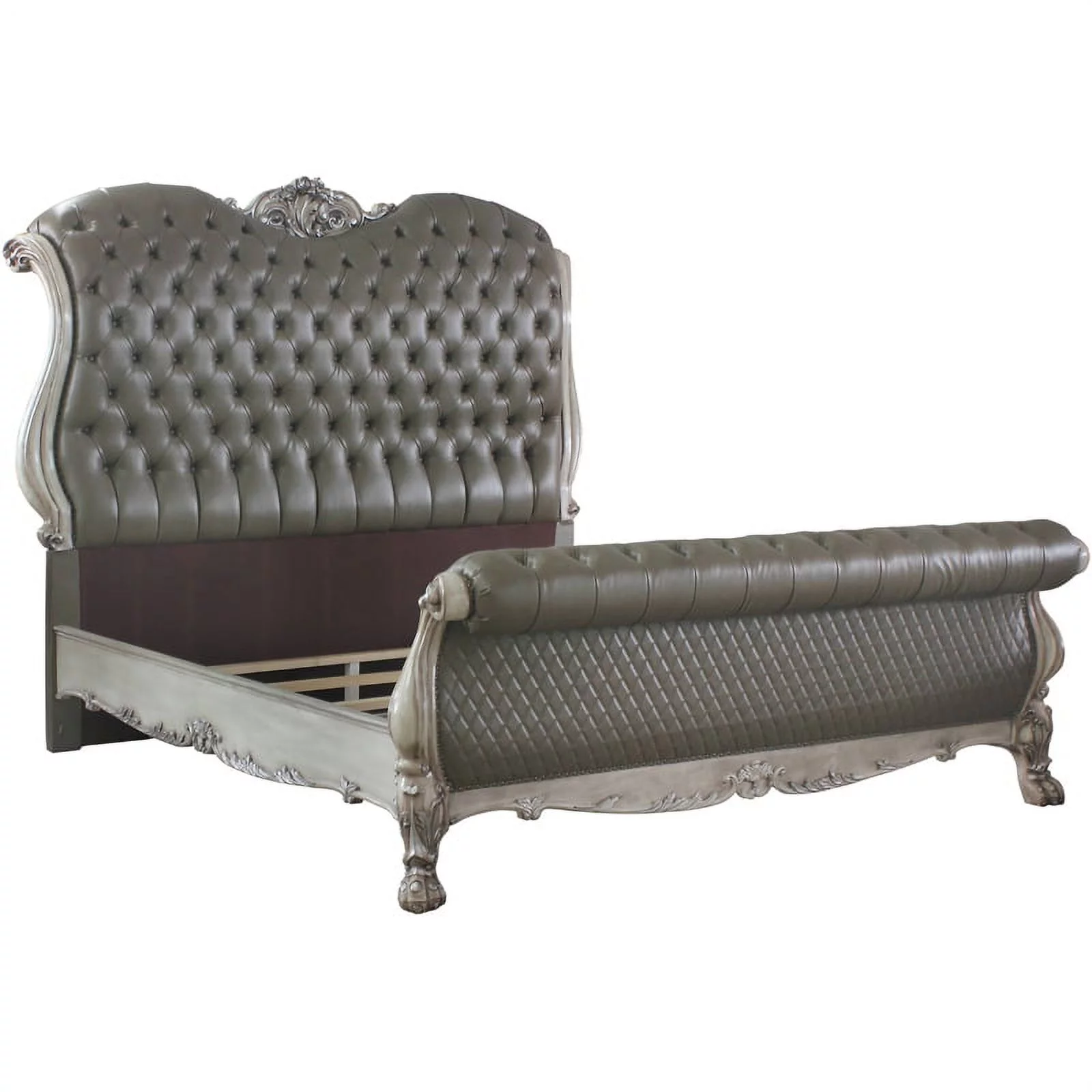 Bowery Hill Contemporary Eastern King Bed in Vintage Bone White & PU