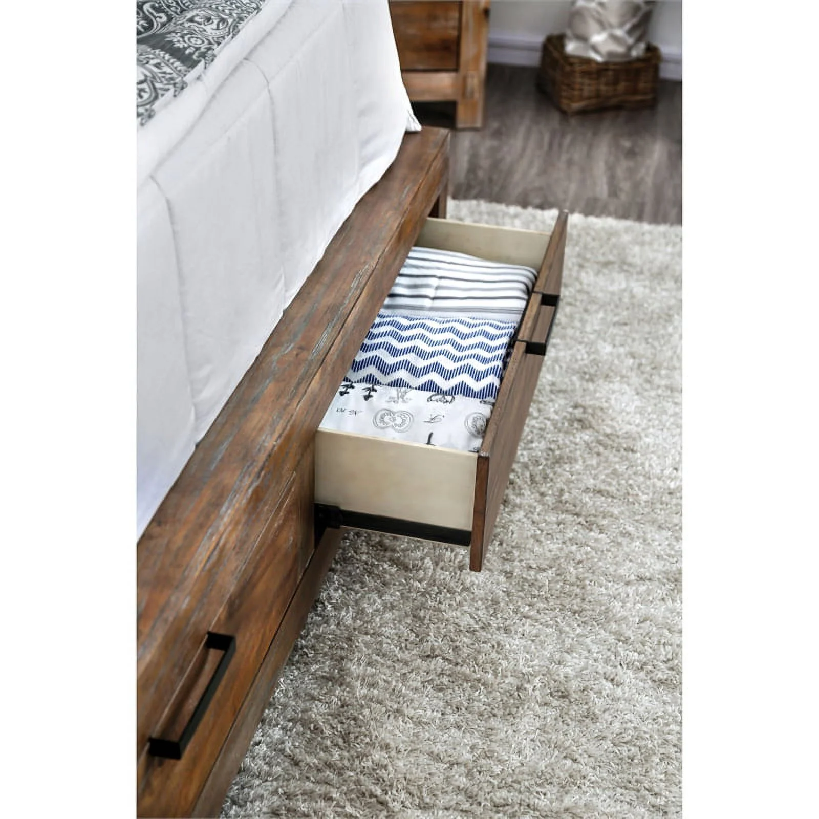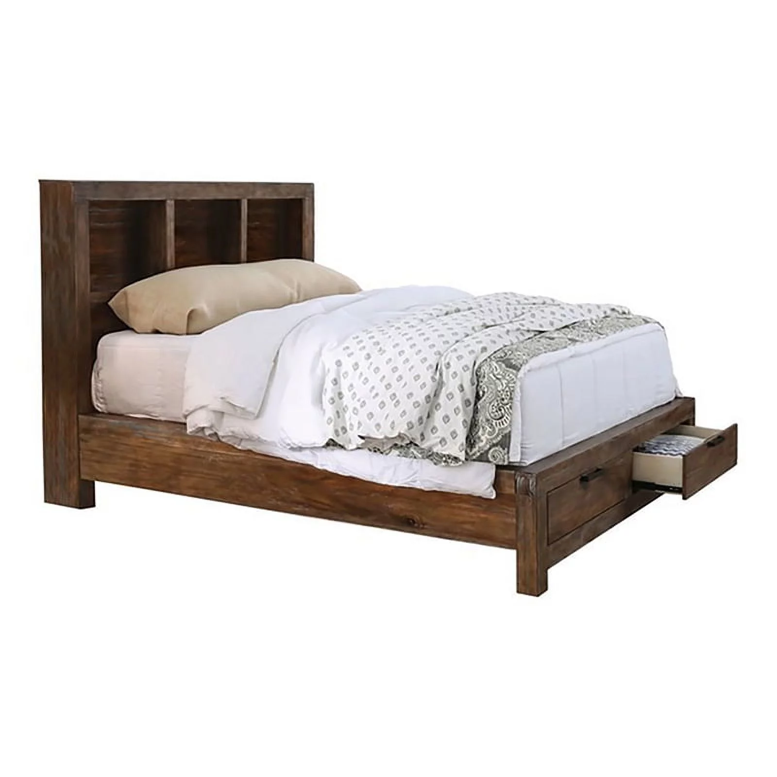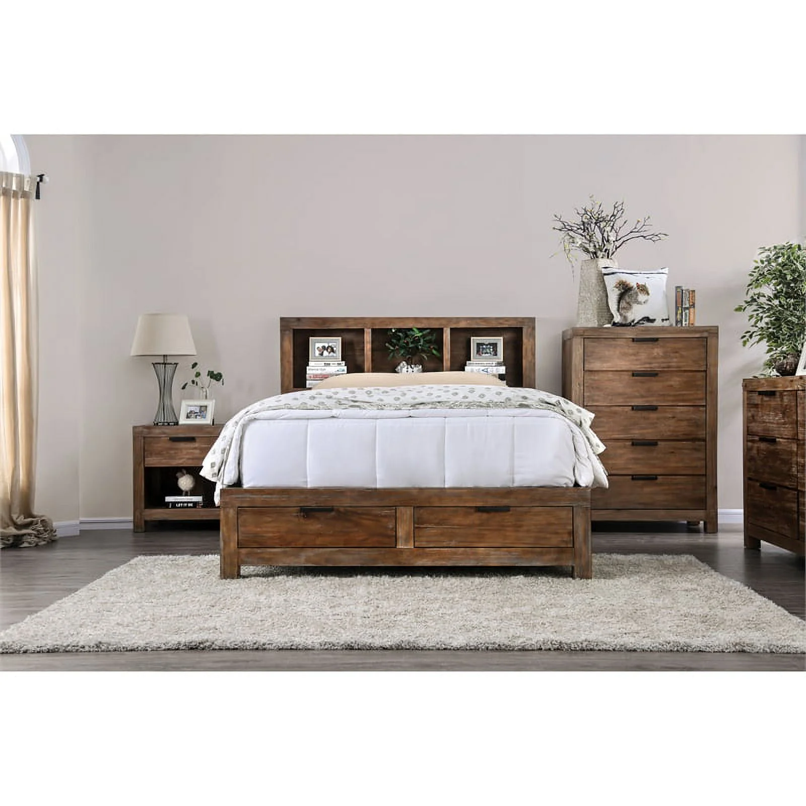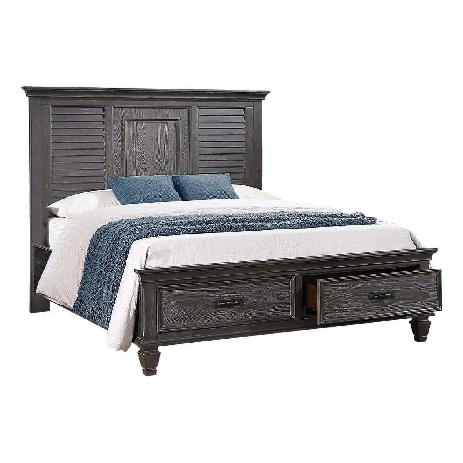 Bowery Hill Farmhouse Wood King Storage Bed in Weathered Light Oak