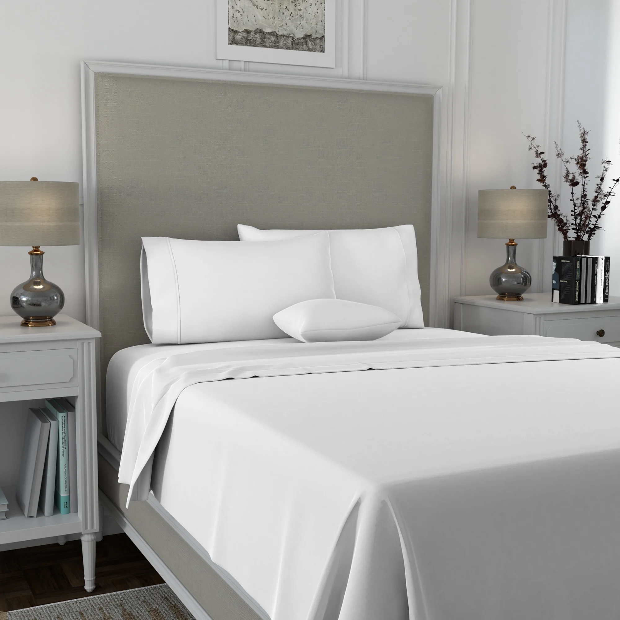 Aireolux 600 Thread Count 100% Cotton Ultra Soft Sateen Sheet Set, King, White