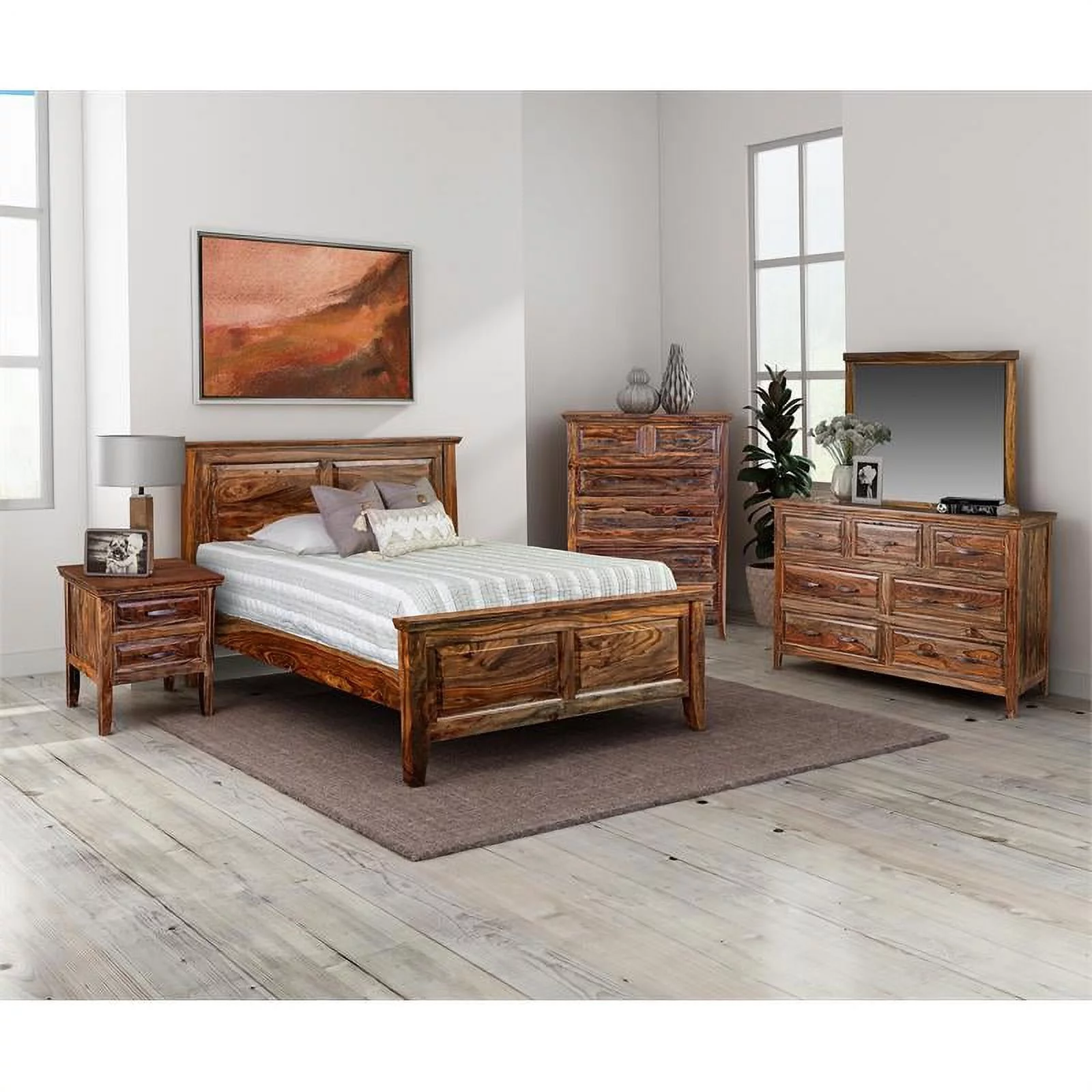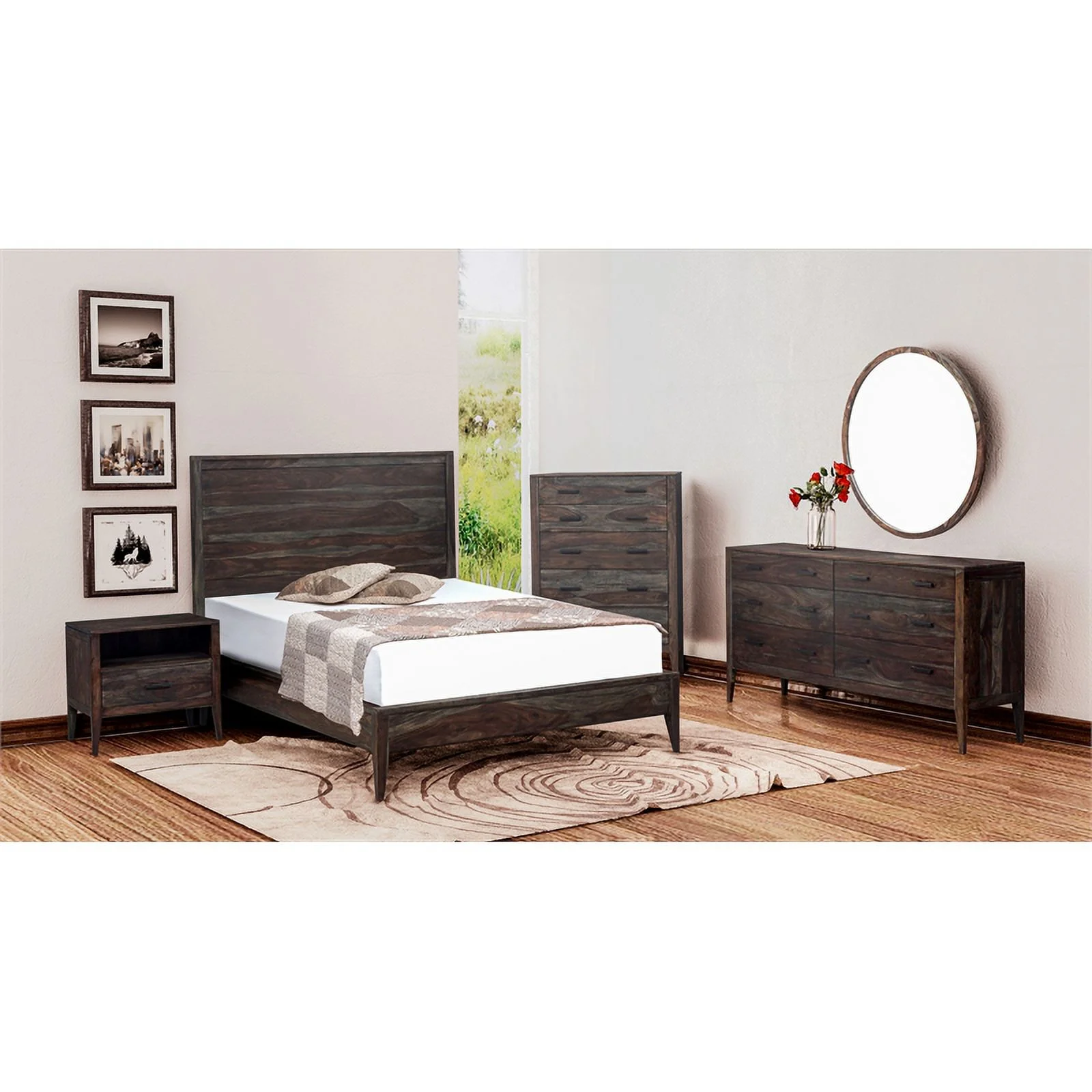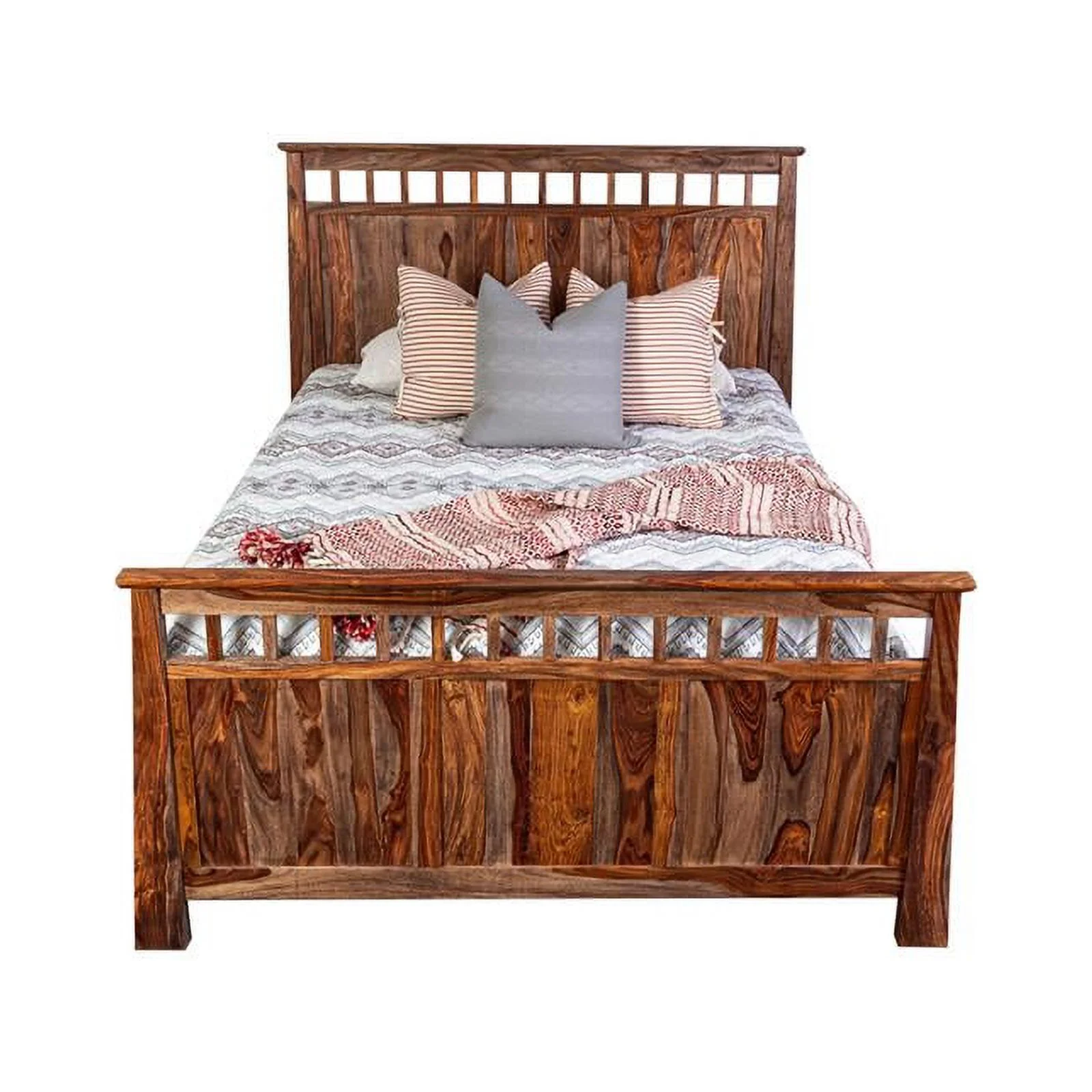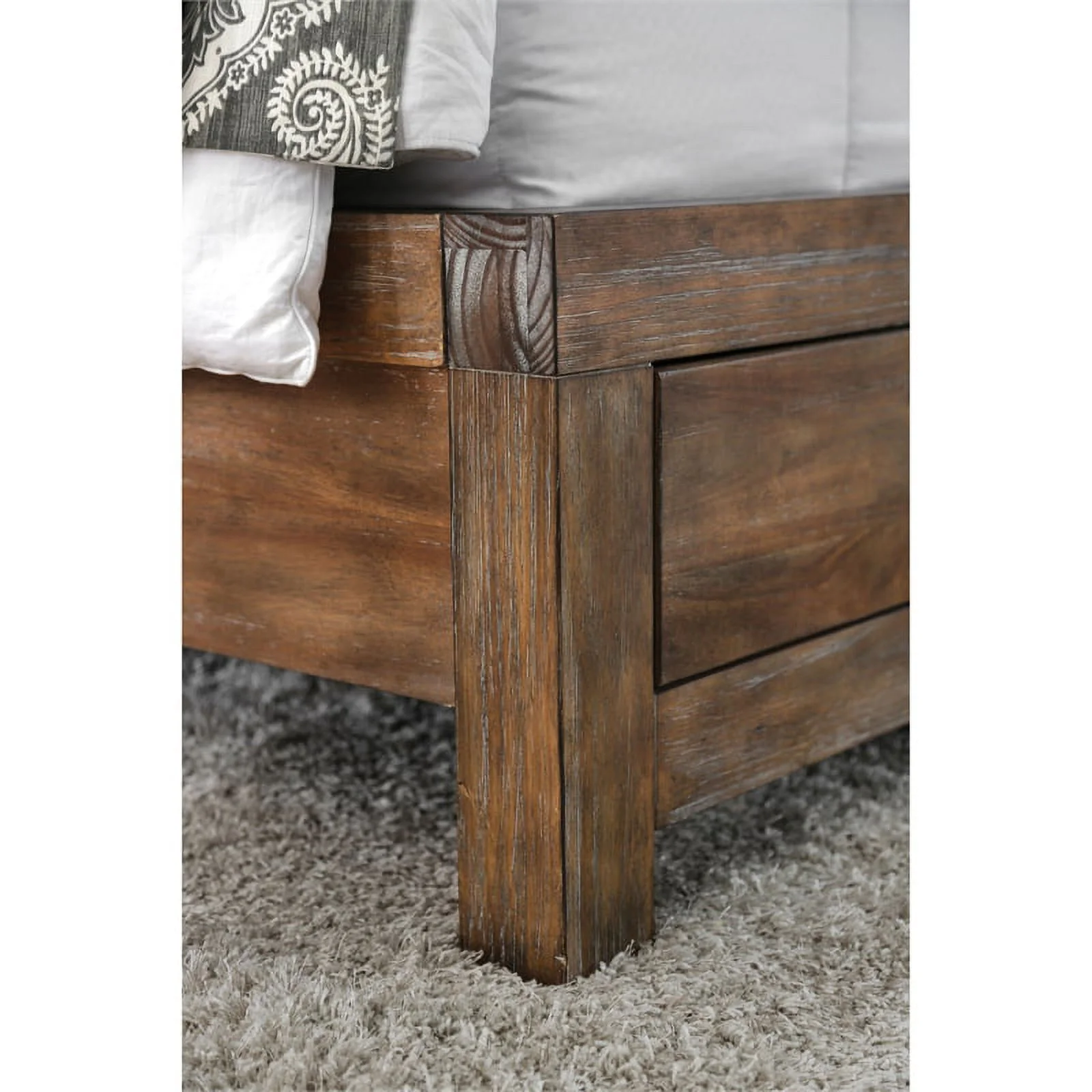 Bowery Hill Farmhouse Wood King Size Platform Bed in Ash Walnut Brown