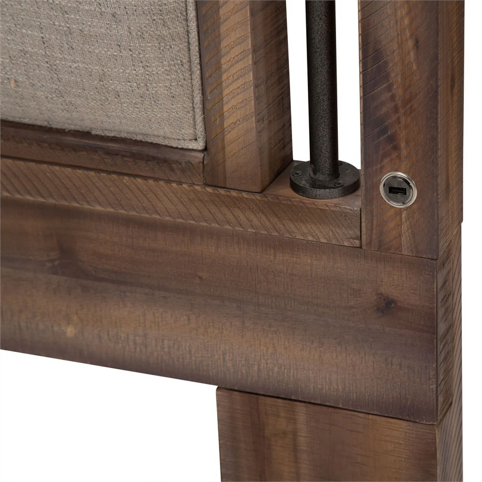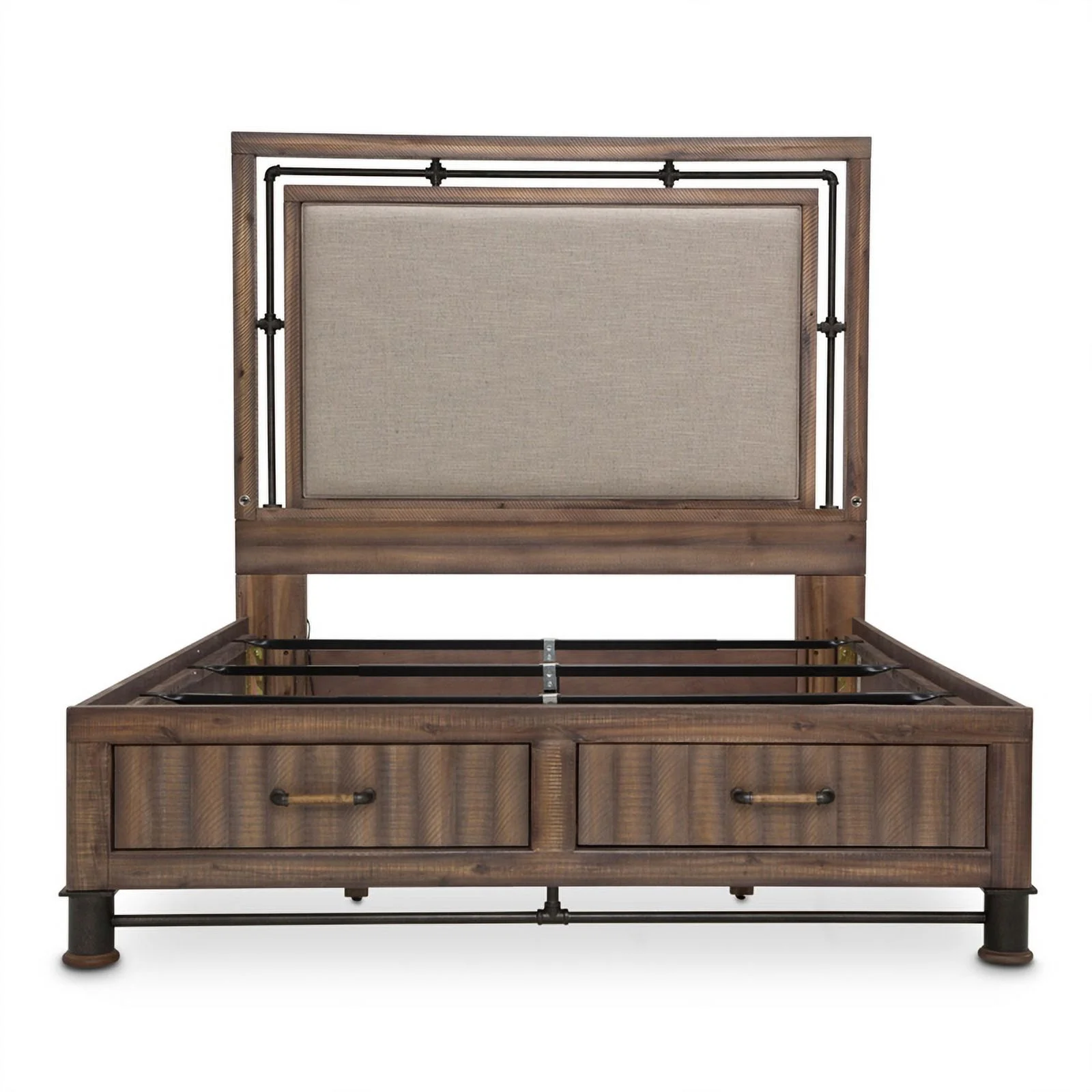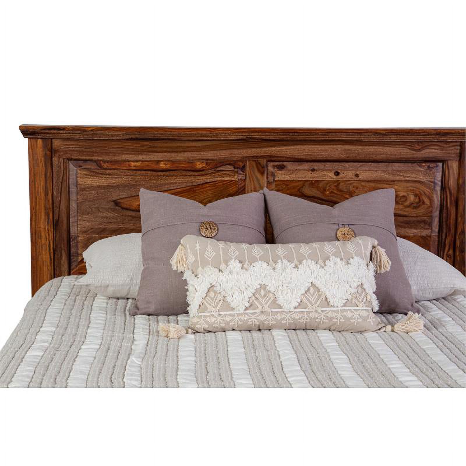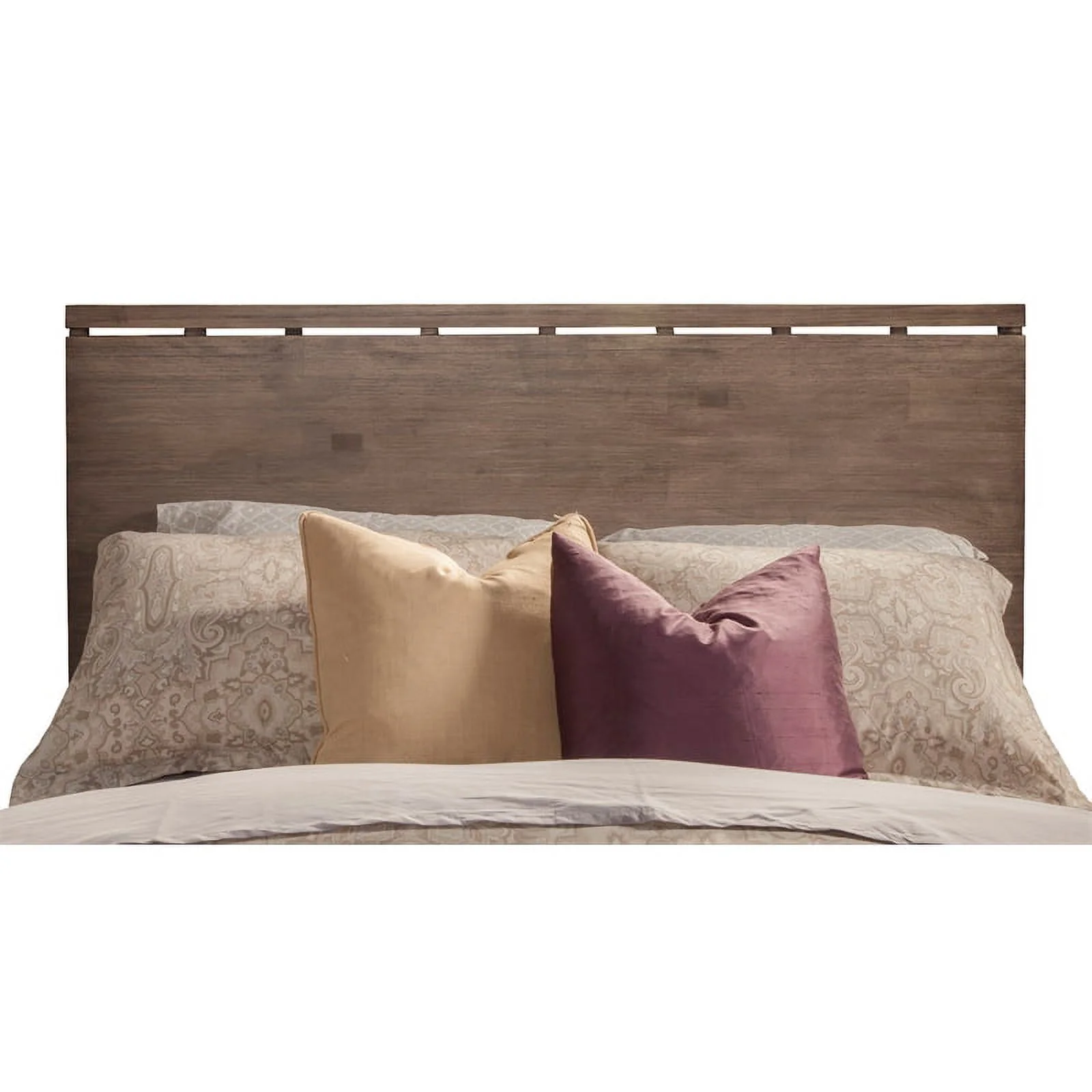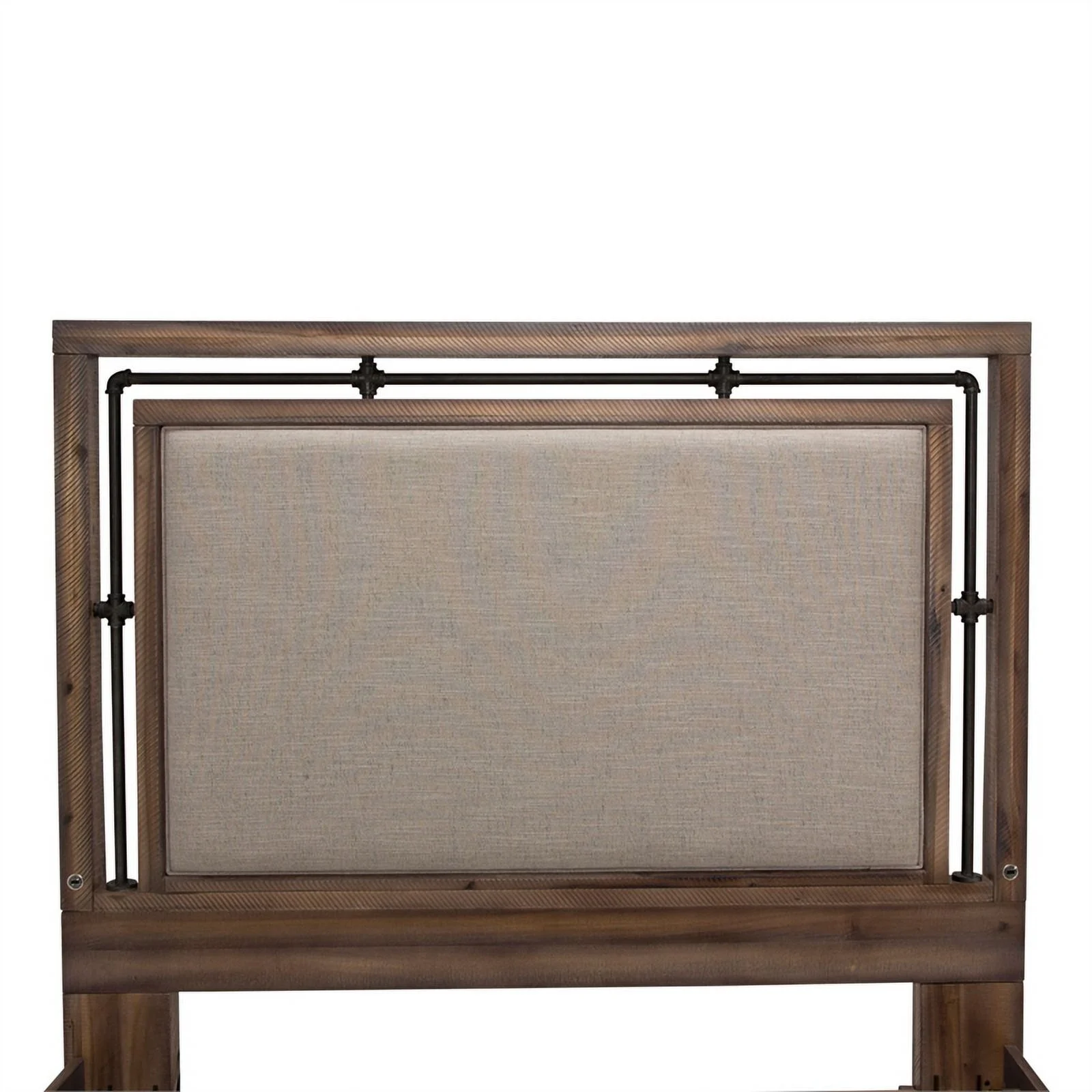 Pemberly Row Farmhouse Wood Panel Eastern King Bed in Brown and Light Taupe
