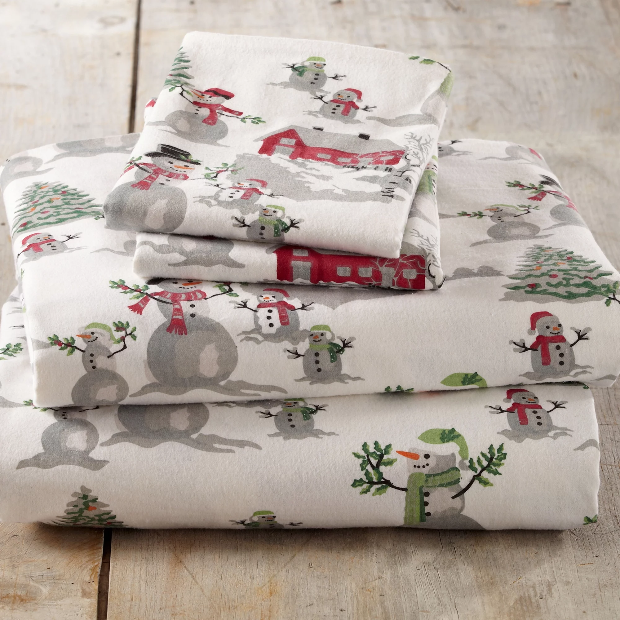Great Bay Home Turkish Cotton Printed Flannel Sheet Set (King, Winter Wonderland)
