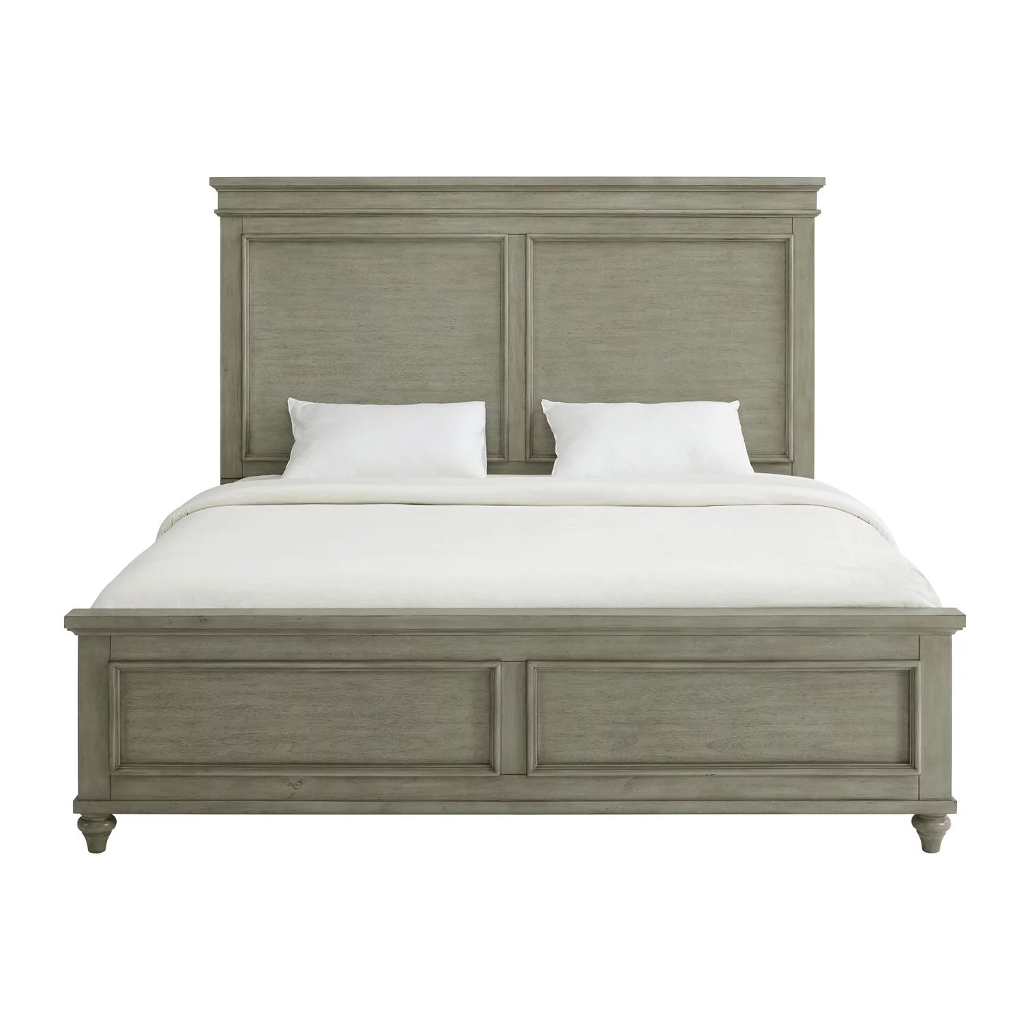 Pemberly Row Farmhouse Wood Eastern King Panel Bed in Weathered Sage