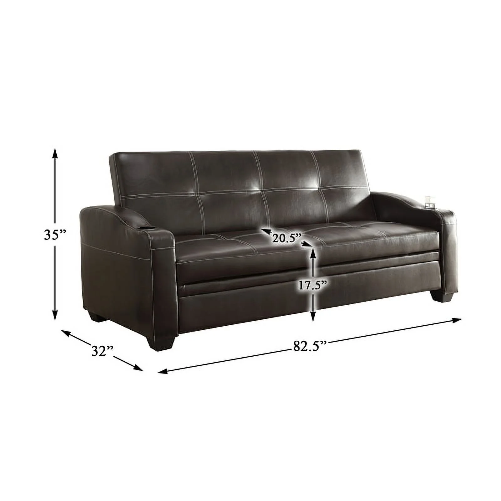Lexicon Caffery Contemporary Faux Leather Click-Clack Sleeper Sofa in Brown