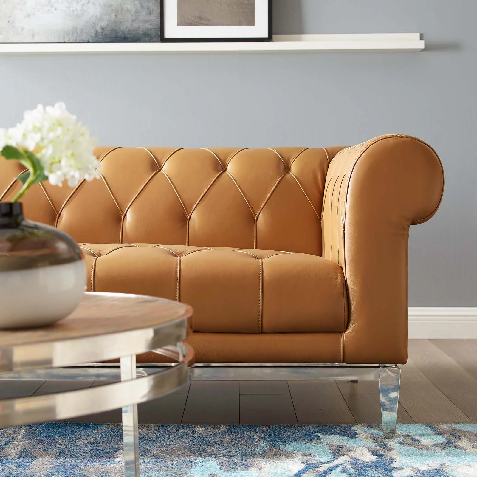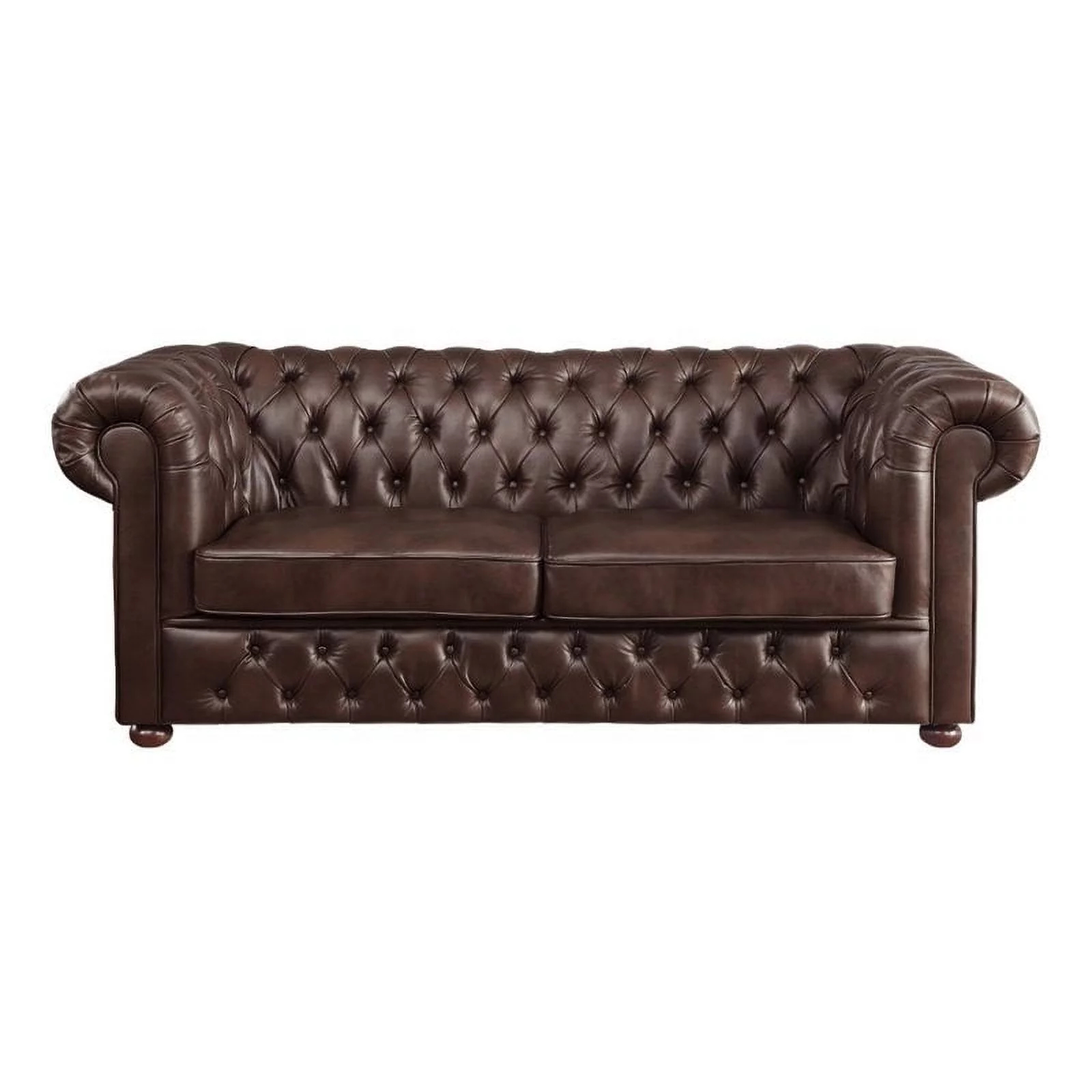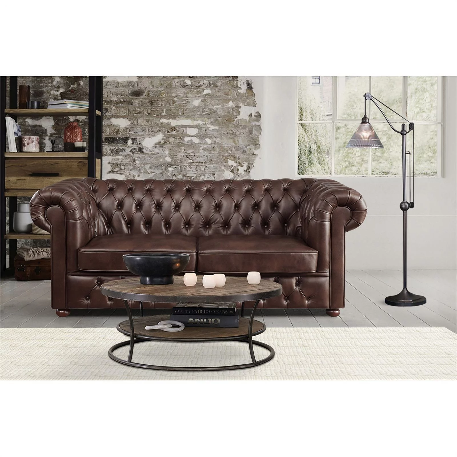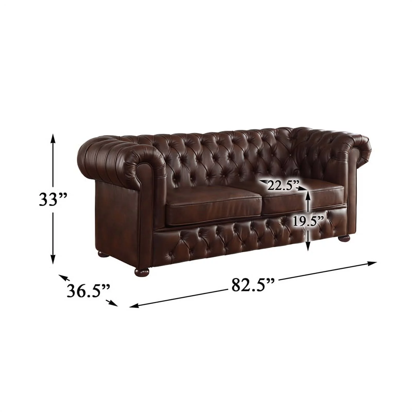 Lexicon Tiverton Breathable Faux Leather Chesterfield Sofa in Brown