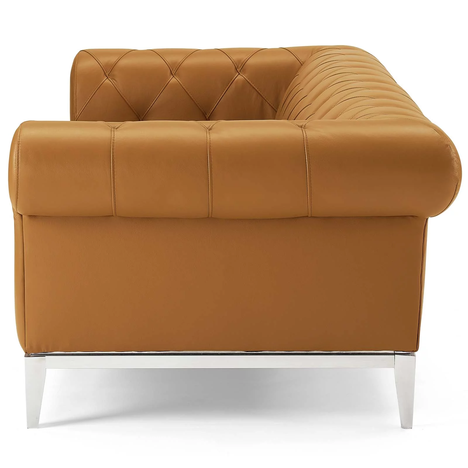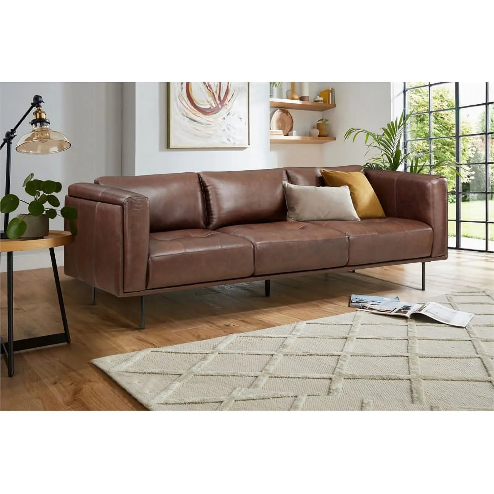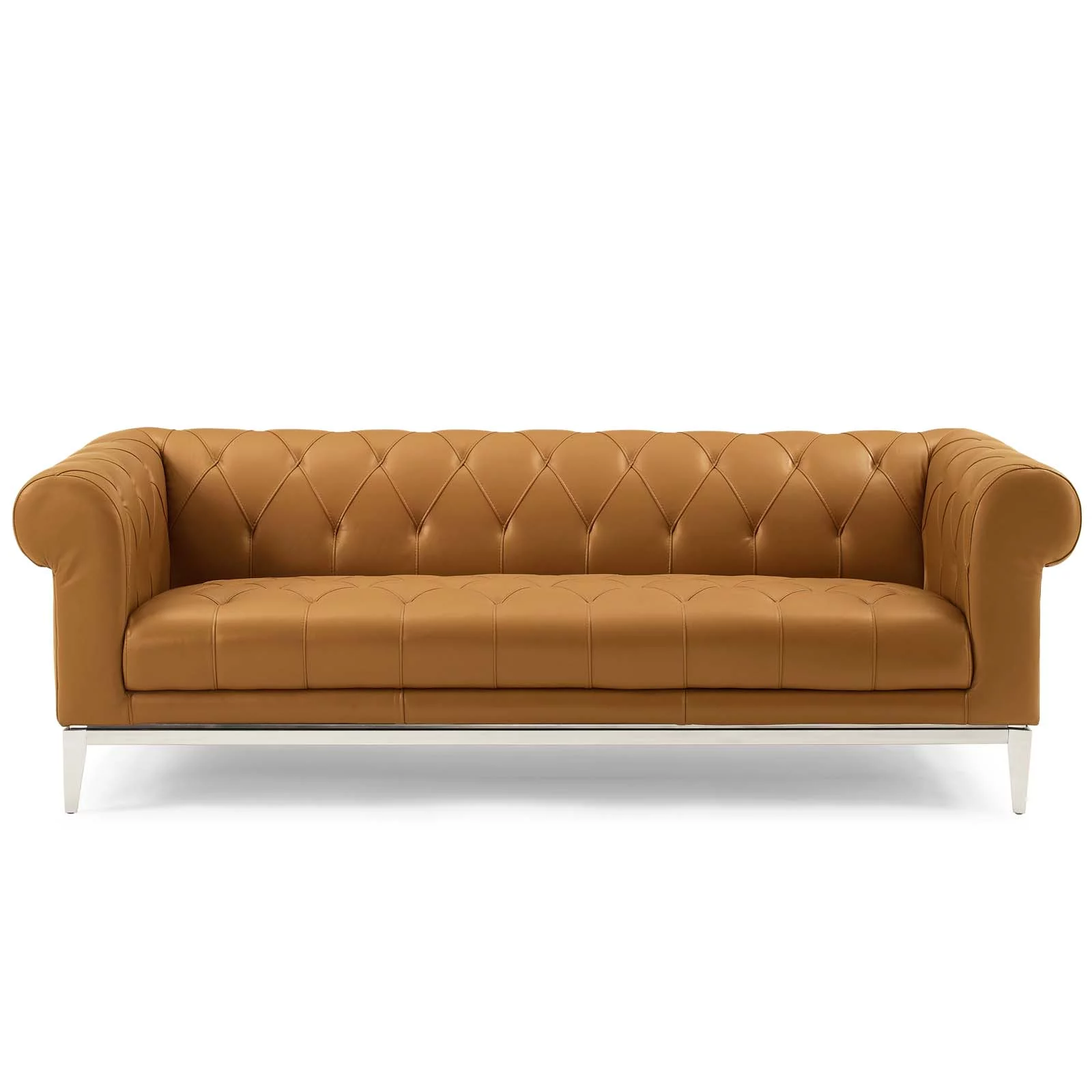 Contemporary Modern Urban Designer Living Room Lounge Club Lobby Sofa, Leather, Tan Brown