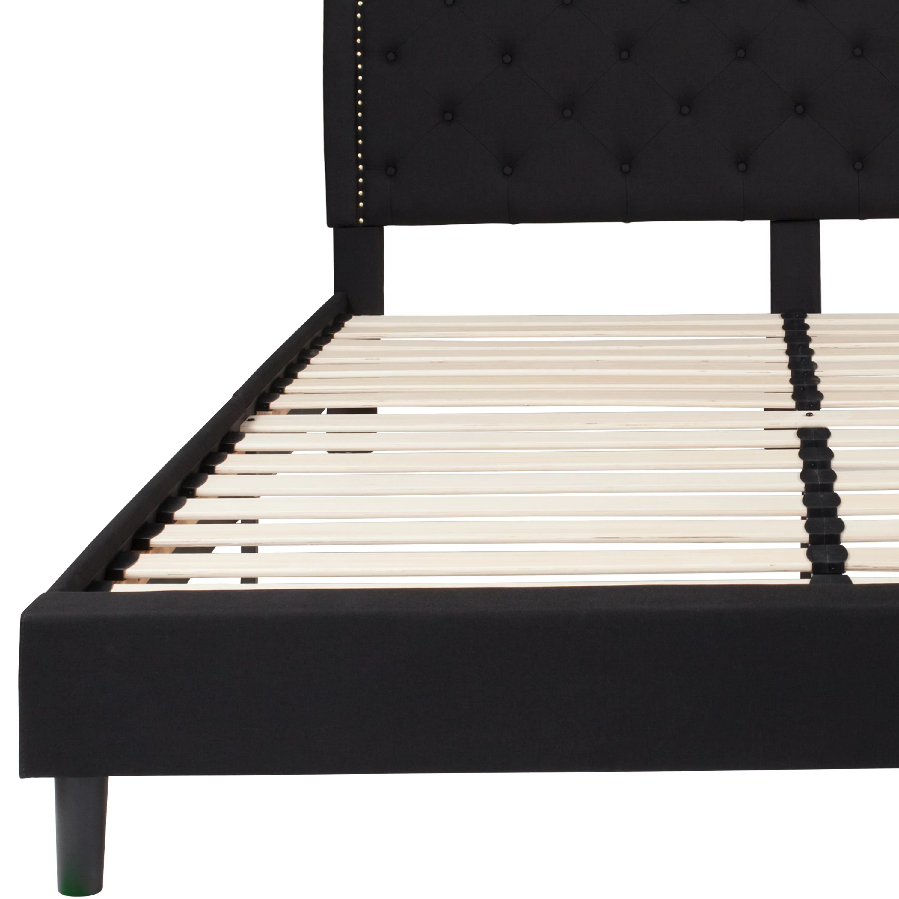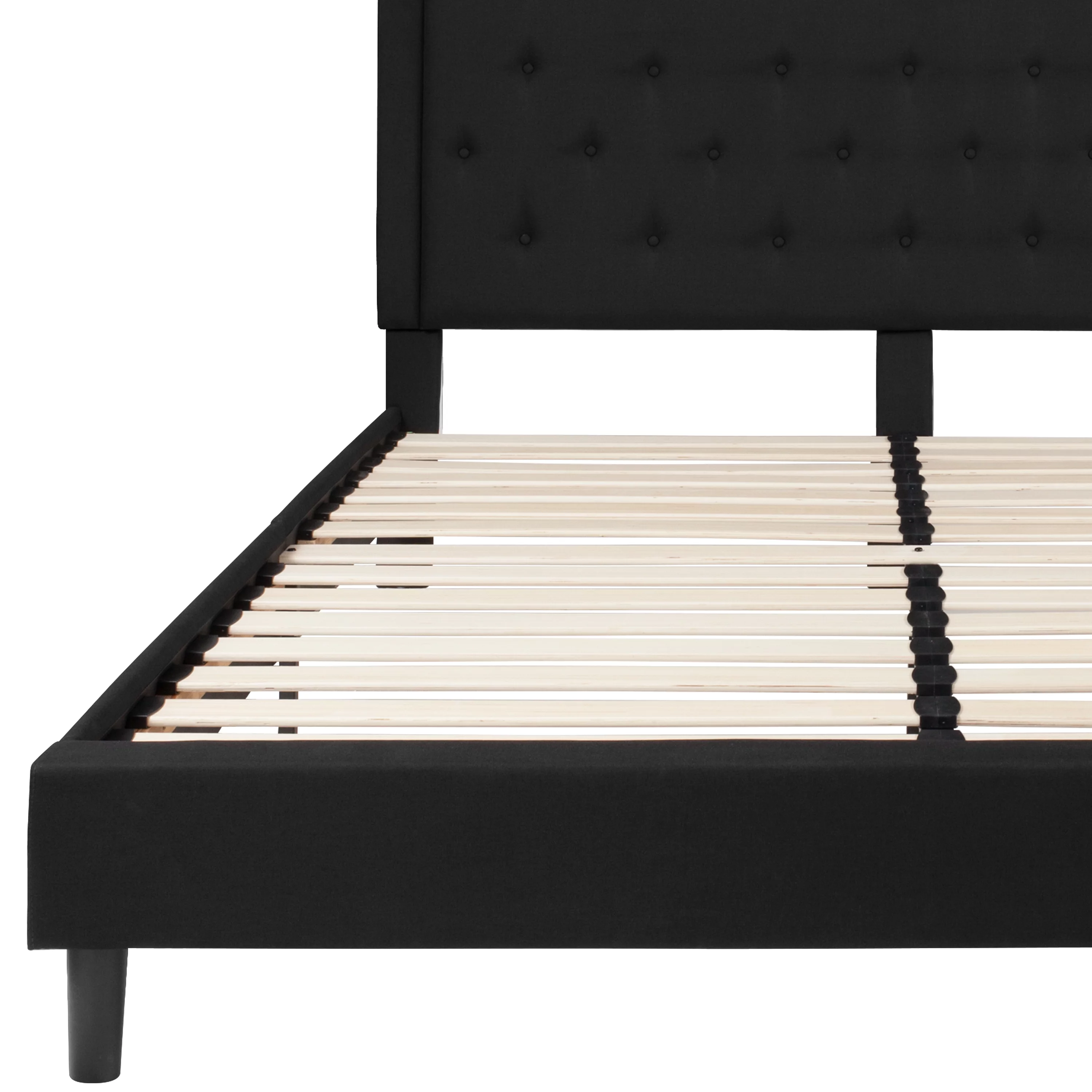 Flash Furniture Roxbury King Size Tufted Upholstered Platform Bed in Black Fabric
